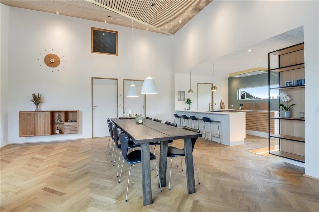 Bag det klassiske ydre gemmer der sig en stilfuld og moderne indretning, der straks får dig til at føle dig godt tilpas. Huset byder på et lyst og åbent opholdsrum, hvor stue og køkken går op i en højere enhed. Her er der højt til loftet, smukke materialevalg og plads til både ro og fællesskab. Skråvægge og store vinduespartier tilfører rummet karakter og masser af naturligt lys, og uanset om I nyder morgenmaden eller en aften foran fjernsynet, er der udsigt til klitlandskabet udenfor. Efter en lang dag ved stranden kan du lade skuldrene sænke sig i det indendørs spabad eller nyde varmen i saunaen. For børn og barnlige sjæle er hemsen et hyggeligt frirum, perfekt til leg eller en stille stund med en god bog.