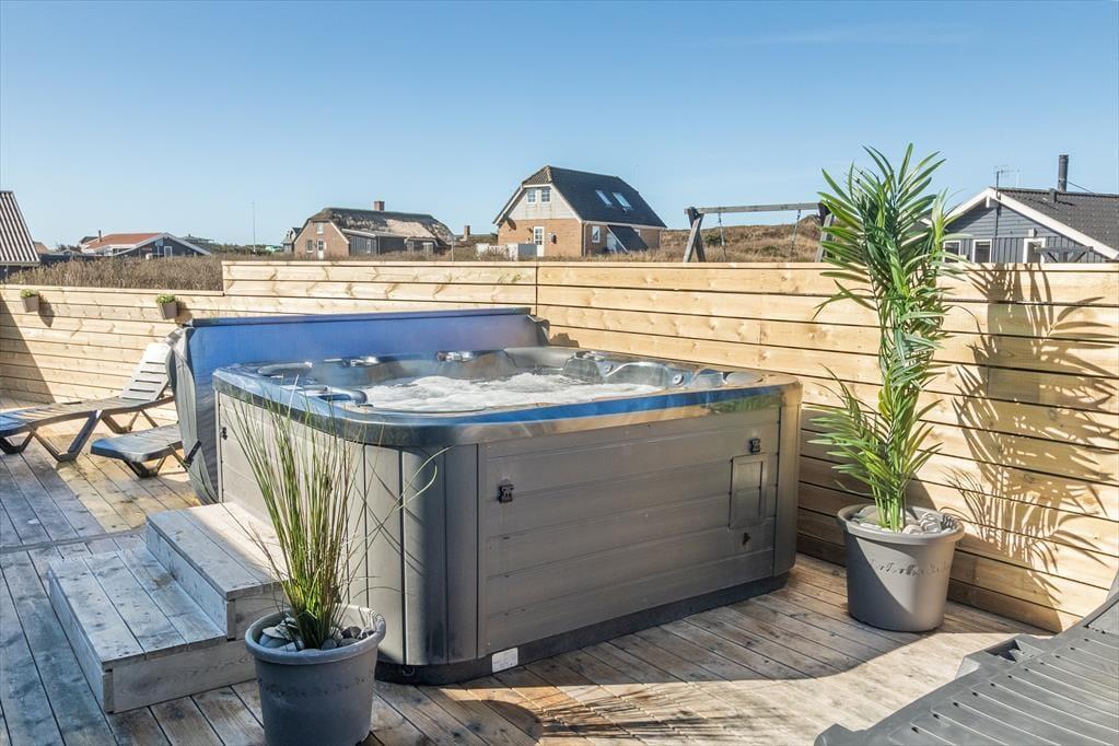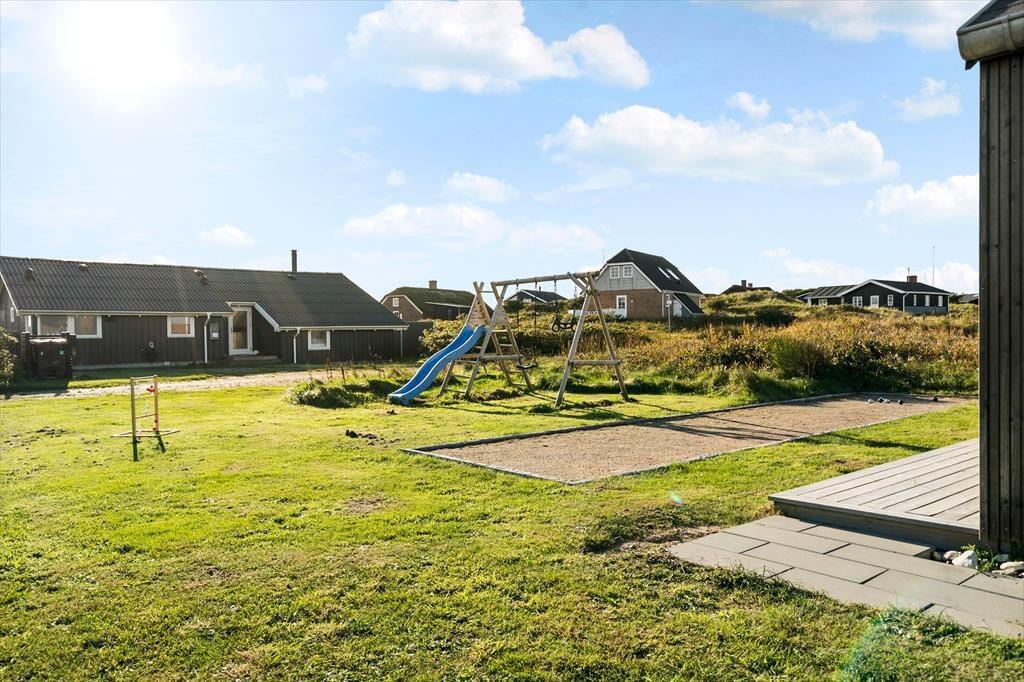 Udelivet er i højsædet på Knaresbrovej 13, hvor en udendørs spa står klar til at forkæle dig – måske under åben himmel og stjerneklar vestjysk nat. Der er flere gode terrasser omkring huset, så du altid kan finde læ eller sol alt efter, hvad du foretrækker. Haven byder på aktiviteter for hele familien, og det store petanque-område indbyder til sjove konkurrencer med både børn og voksne. På de varme sommerdage kan du tænde op i grillen og nyde aftensmaden i det fri – og på de mere kølige dage er det stadig en fornøjelse at sidde udenfor med et tæppe omkring skuldrene og mærke den friske luft og roen i området. Alt i alt et sommerhus, hvor rammerne for kvalitetstid er helt i top.