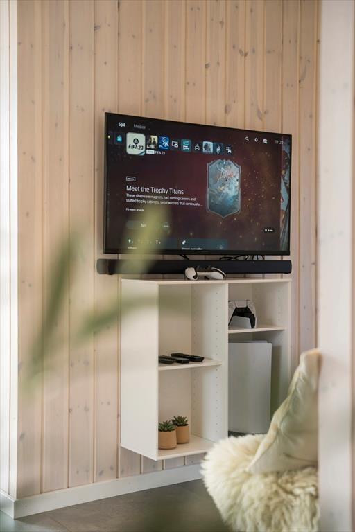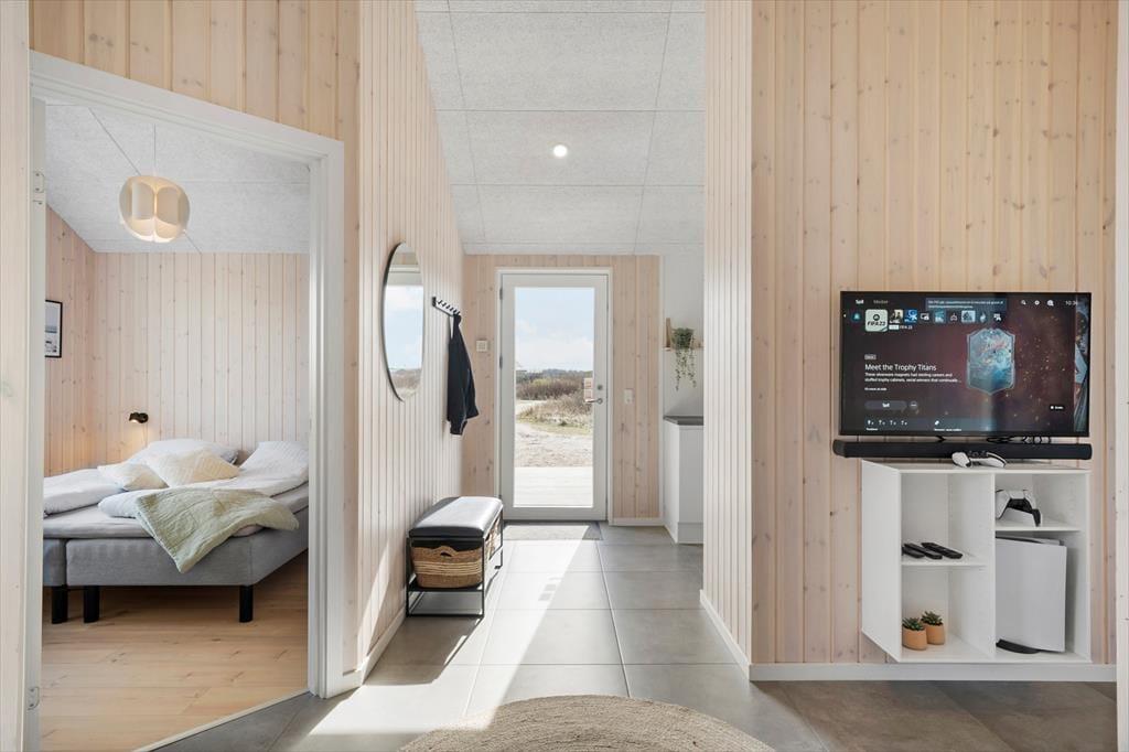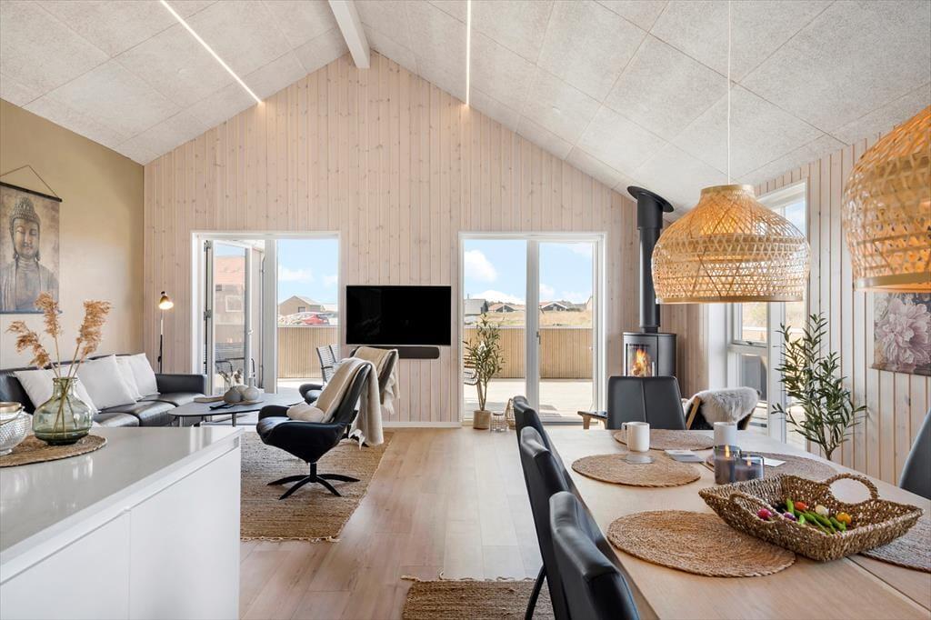 Allerede når du træder ind i sommerhuset, mødes du af en skøn kombination af stil og varme. Det åbne opholdsrum med loft til kip giver luft og rummelighed, mens brændeovnen spreder hygge på de køligere dage. Indretningen er præget af moderne komfort og sans for detaljen, og her er masser af plads til både fællesskab og fordybelse. Efter en tur ved Vesterhavet kan du slappe af i husets sauna – eller måske i det hyggelige gaming-hjørne, hvor både børn og barnlige sjæle kan fordybe sig i digitale eventyr. Huset er skabt med tanke på, at alle i familien skal føle sig hjemme.