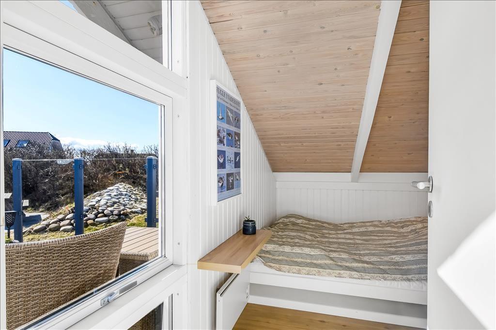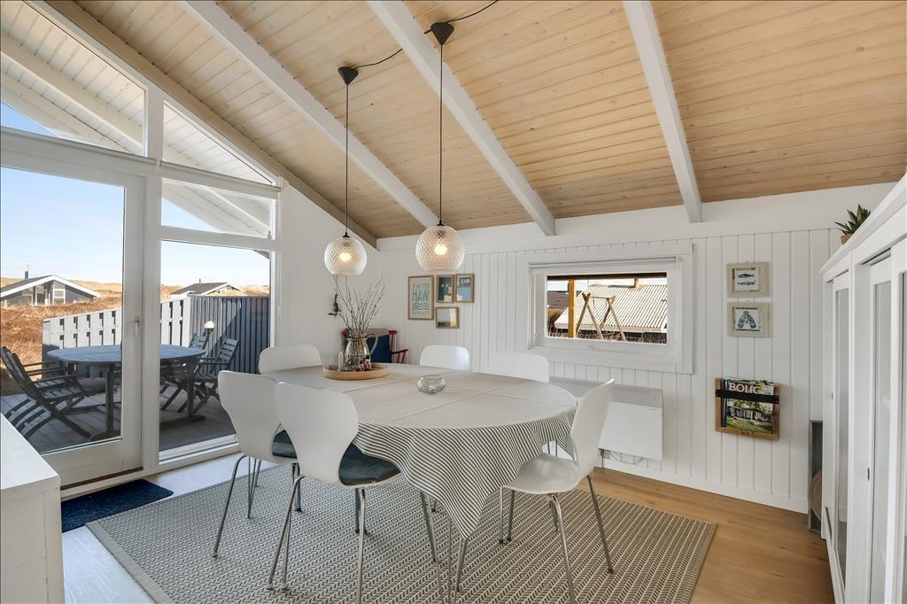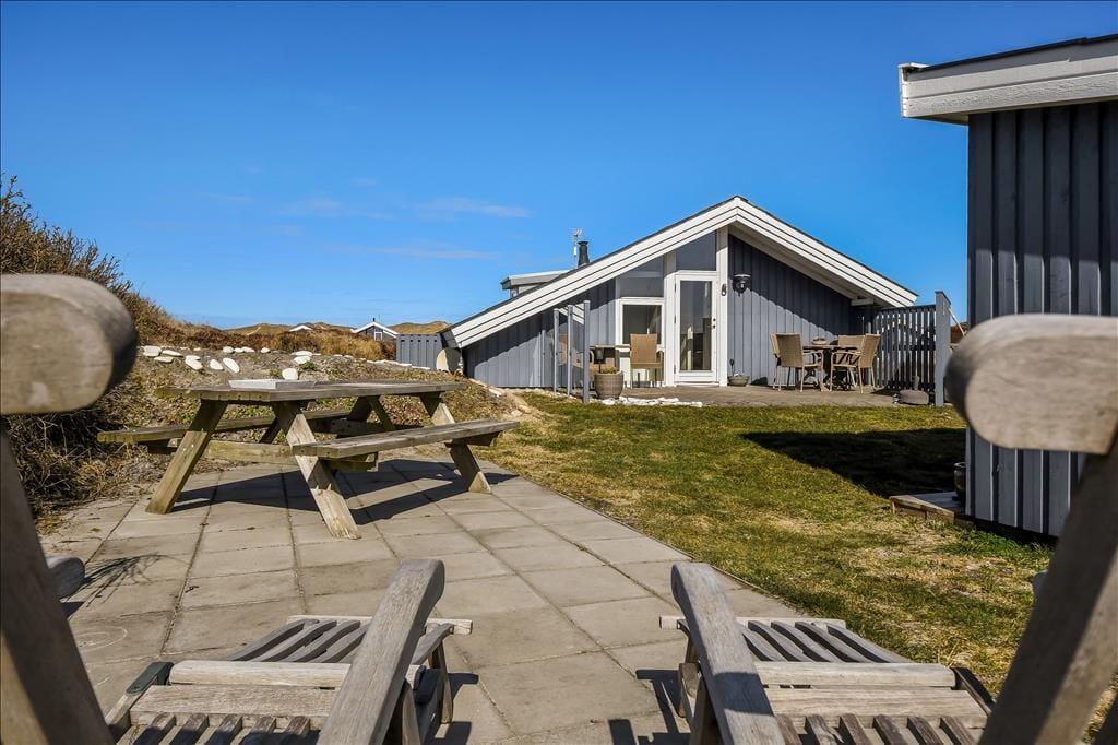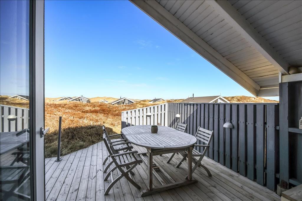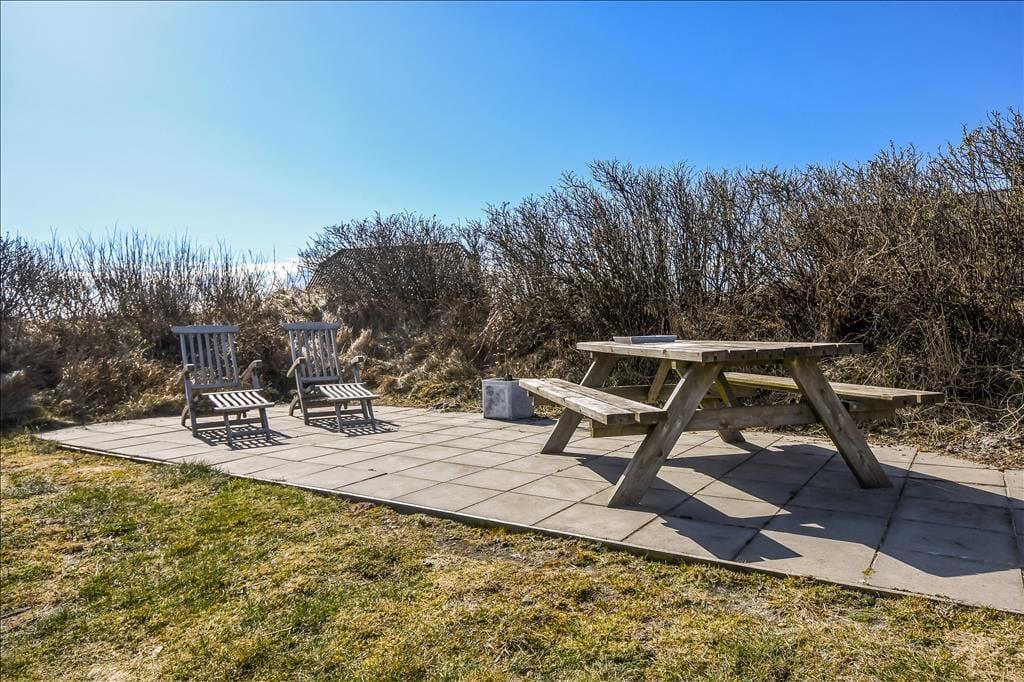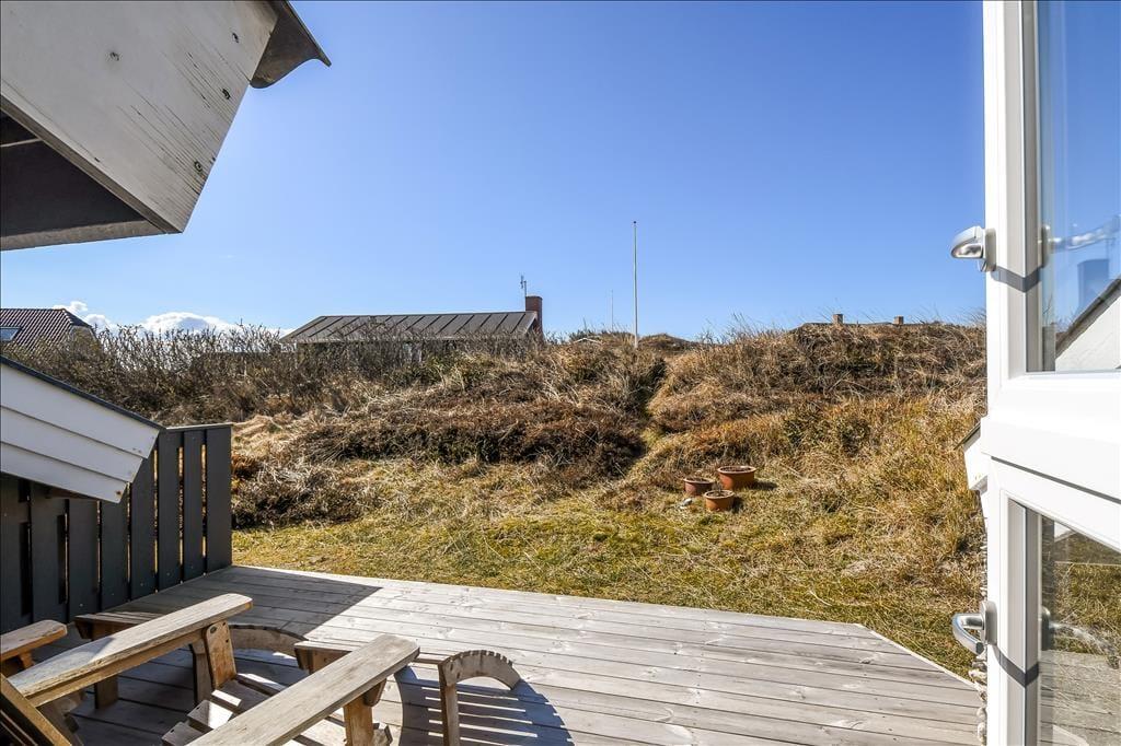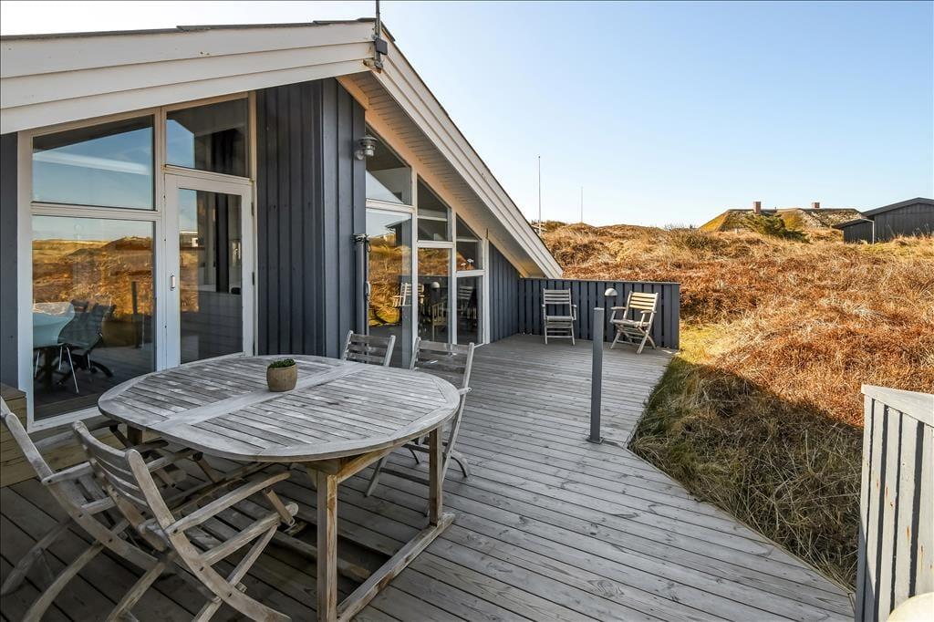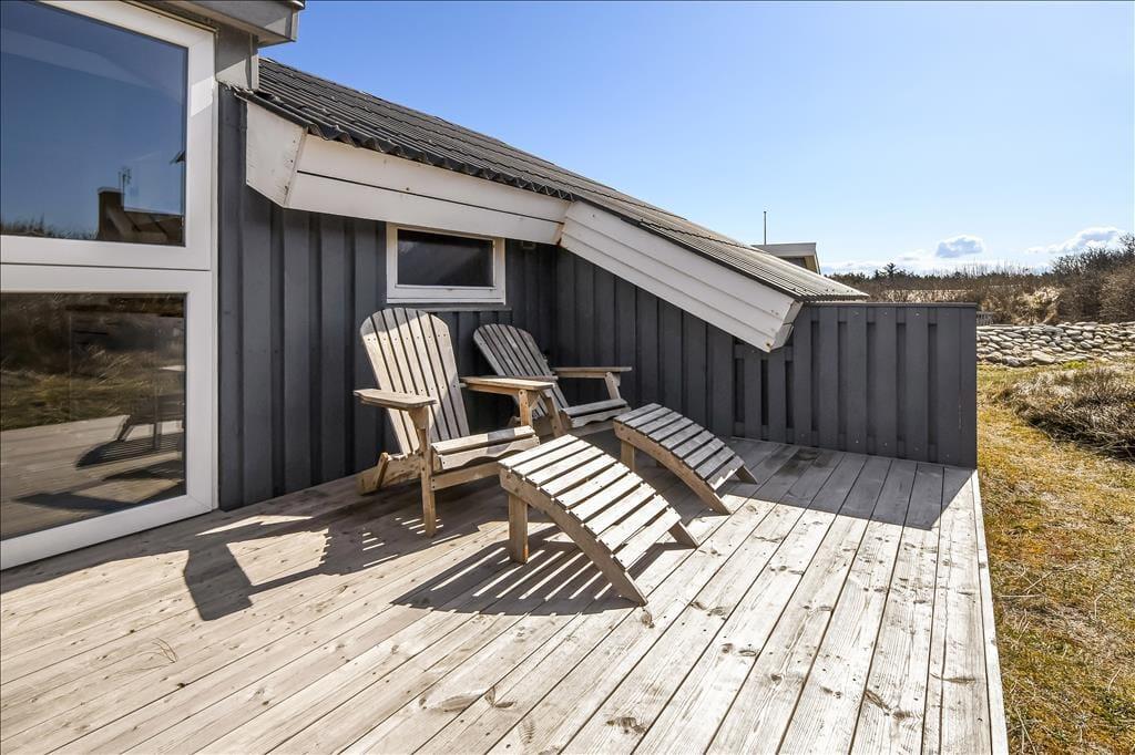 Udelivet får helt optimale rammer takket være de fire forskellige terrasser, der er placeret rundt om huset. Her kan du nyde både morgensol og aftenglød, hvad enten du foretrækker en kop kaffe i det stille, en frokost under åben himmel eller et glas vin i solnedgangens skær. Hver terrasse har sin egen karakter og tilbyder forskellige oplevelser af udelivet – læ, sol og privatliv. Den omkringliggende grund er fredelig og grøn, og herfra kan du høre bølgernes brusen og fuglene i klitterne. Sommerhuset er en tryg oase, hvor du kan nyde naturens lyde og dufte, mens du lader op til nye eventyr.