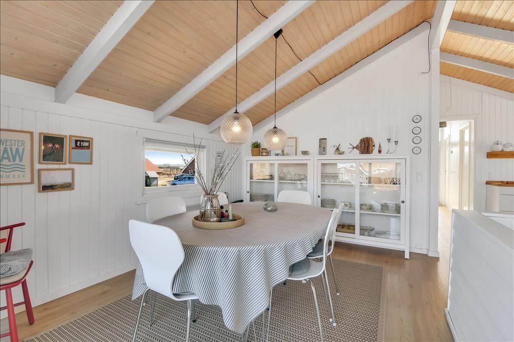 På Doblervej 25 i Vejlby Klit Strand finder du dette hyggelige sommerhus, der emmer af feriestemning fra det øjeblik, du træder ind ad døren. Her bor du midt i det naturskønne kystlandskab og med kun 200 meter til det brusende Vesterhav er det oplagt at lade hverdagens tempo blive hjemme og bare nyde de afslappende omgivelser. Det lyse og venlige sommerhus indbyder til samvær og afslapning – både inde og ude – og med hele fire terrasser får du rig mulighed for at finde den perfekte solplet i løbet af dagen.