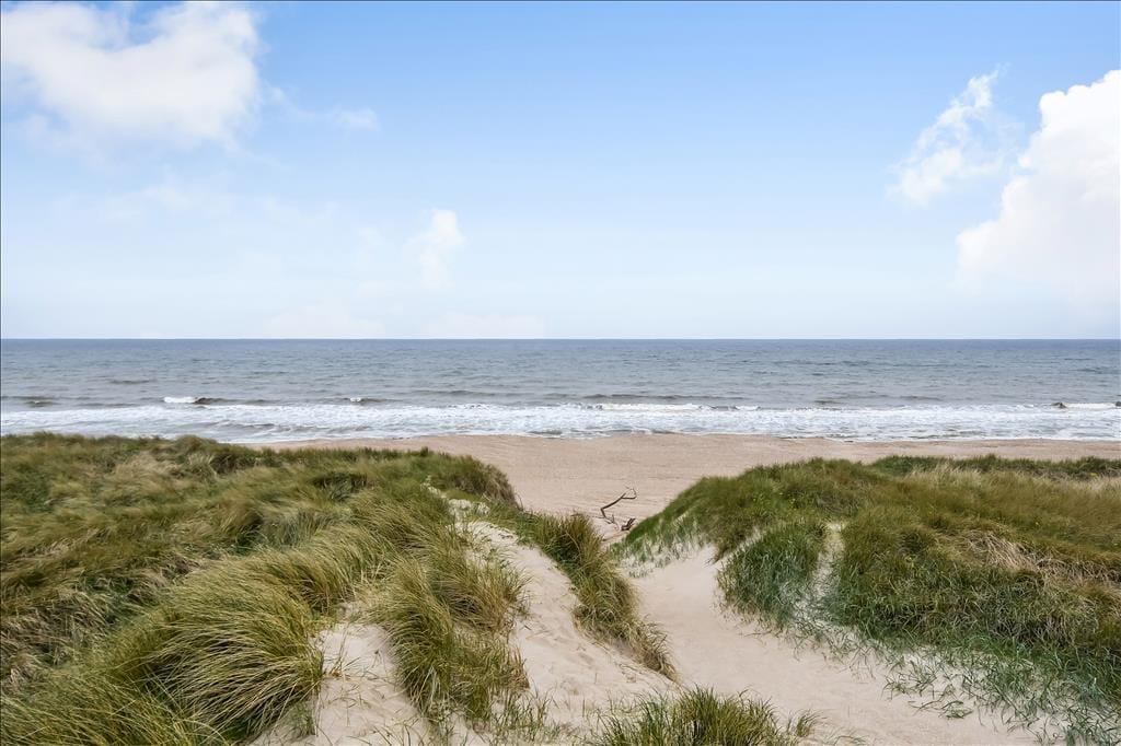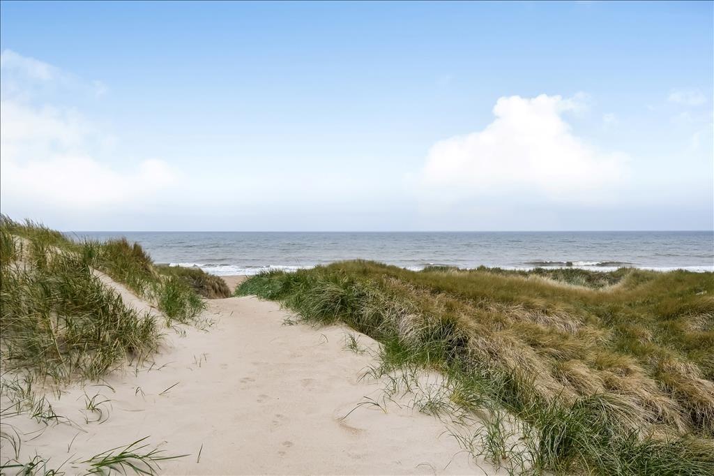 Med kun 50 meter til stranden bliver det næppe mere oplagt at tilbringe så meget tid som muligt i det fri. Den korte gåtur over klitterne bringer dig direkte ned til havet, hvor sandet knaser under fødderne, og bølgerne skyller ind mod bredden – perfekt til både morgenbadning og lange gåture i vandkanten. Hjemme ved sommerhuset kan du slå dig ned på en af terrasserne med en god kop kaffe og bare nyde stilheden, solen og duften af saltvand i luften. Der er rig mulighed for at finde læ og sol hele dagen, og de rolige omgivelser gør det let at koble helt af. Måske bliver det til en god bog i liggestolen, lidt boldspil på græsset eller aftenhygge med grill og tæpper, når solen går ned bag klitterne. Uanset hvordan du vælger at bruge dagene, er rammerne til stede for at skabe gode og mindeværdige ferieøjeblikke.