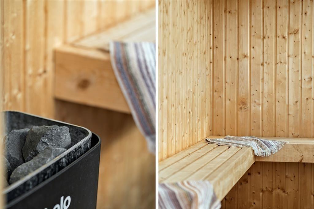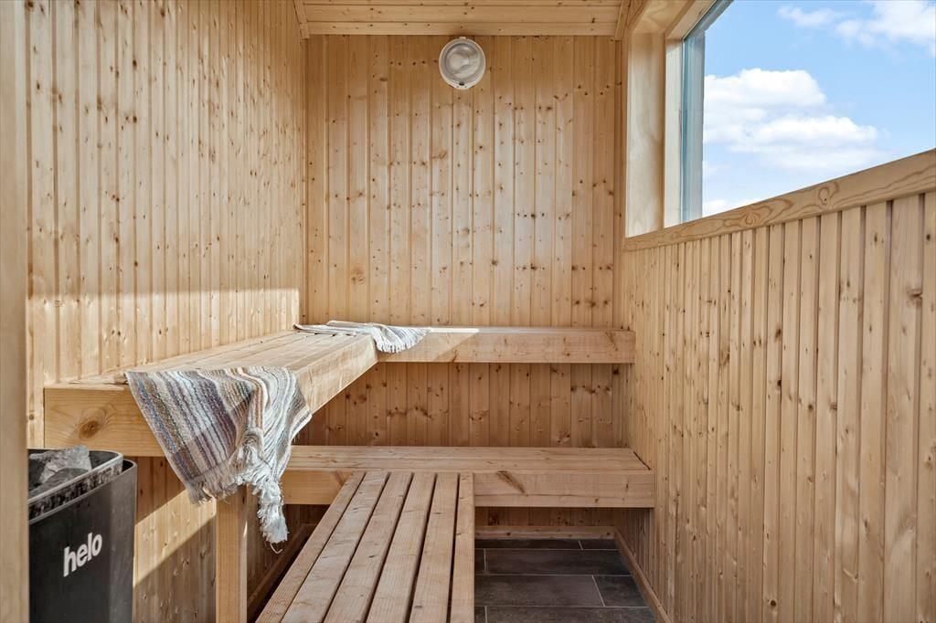 Den imponerende 100 m² store terrasse er som skabt til livsnydere. Her kan I lade jer synke ned i det varme vand i udespaen eller få varmen i saunaen, mens den friske havluft fylder jeres lunger. Terrassen er udstyret med komfortable havemøbler og en grill, så I kan tilberede og nyde jeres måltider under åben himmel. Efter middagen er det oplagt at slappe af i liggestolene og lade dagens indtryk bundfælde sig, mens solen går ned over klitterne.