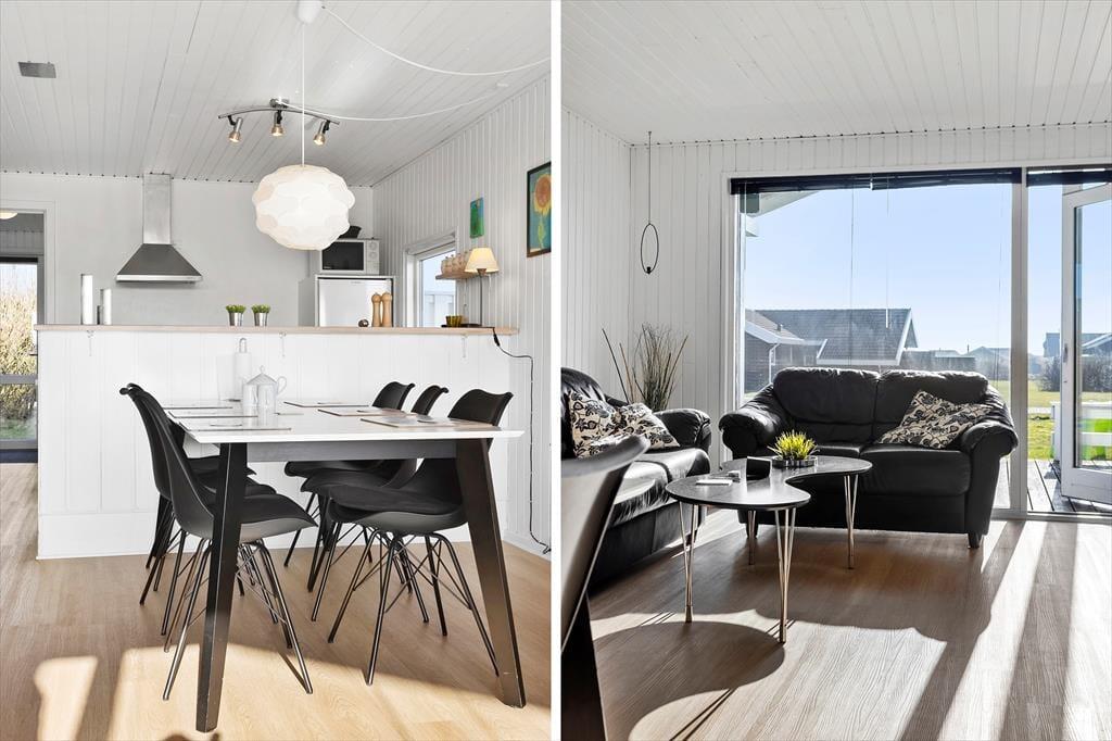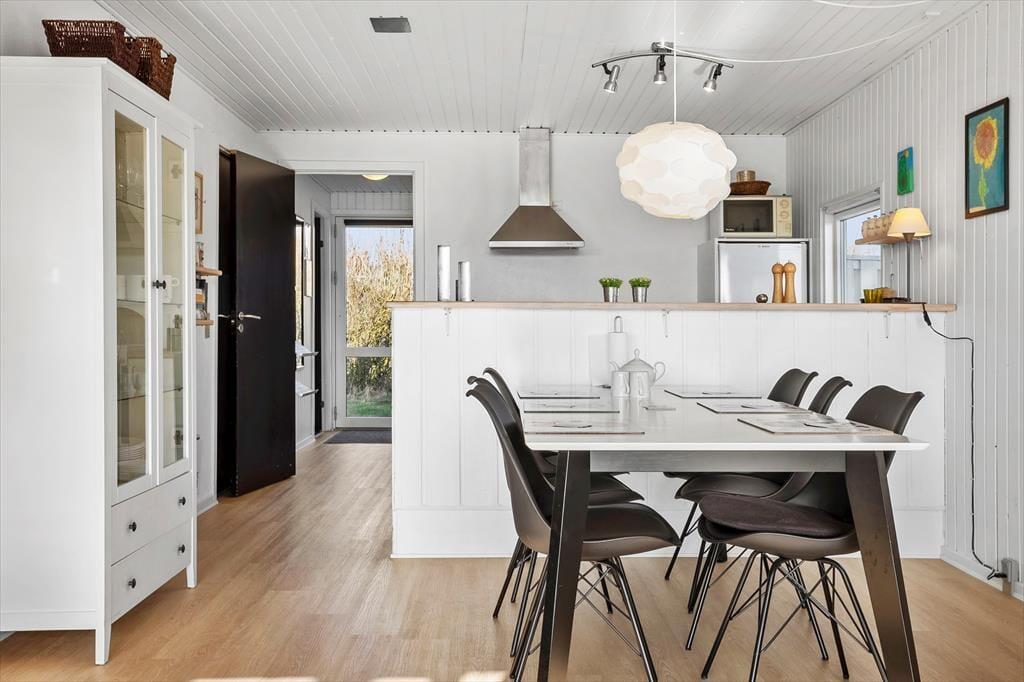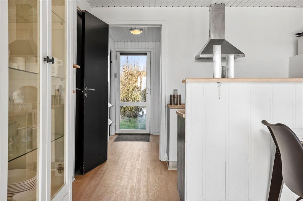 Der blev tænkt på både praktiske og hyggelige detaljer, da sommerhuset blev opført i 1986 og senere renoveret i 2019. På det praktiske plan kan planløsningen nævnes, for med tre gode soveværelser, et badeværelse og en stor stue med integreret køkken fungerer sommerhuset som en glimrende base for seks feriegæster. Det er for øvrigt rart, at der står en vaskemaskine på badeværelset, og det åbne køkken med opvaskemaskine og andre gode hvidevarer er dejligt funktionelt.