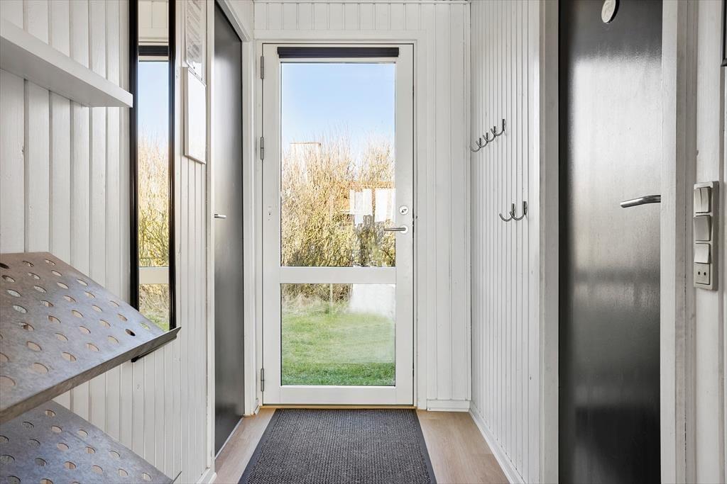 Sommerhuset ligger på en lille sidevej, der ender blindt, så trafikken er begrænset. Samtidig ligger huset centralt i Vejlby Klit, nemlig bare 200 meter fra købmanden samt den lokale café og isbar, og cirka lige så tæt på den nærmeste af sommerhusområdets gode legepladser. Stranden har I også inden for bekvem rækkevidde, for det tager ikke meget mere end fem minutter, før I står med fødderne i sandet og udsigt ud over det mægtige Vesterhav. Har I medbragt løbesko eller cykler, kan I få pulsen op ved at tage en tur rundt om Ferring Sø, der ligger lige syd for Vejlby Klit, og hvis I får lyst til en eftermiddag i kunstens tegn, kan I køre længere ned langs kysten for at besøge Bovbjerg Fyr og Jens Søndergaards Museum i den lille kystby Ferring.