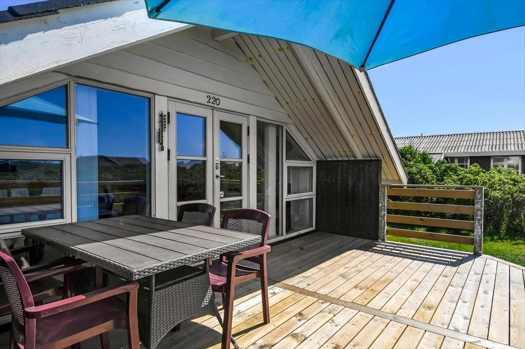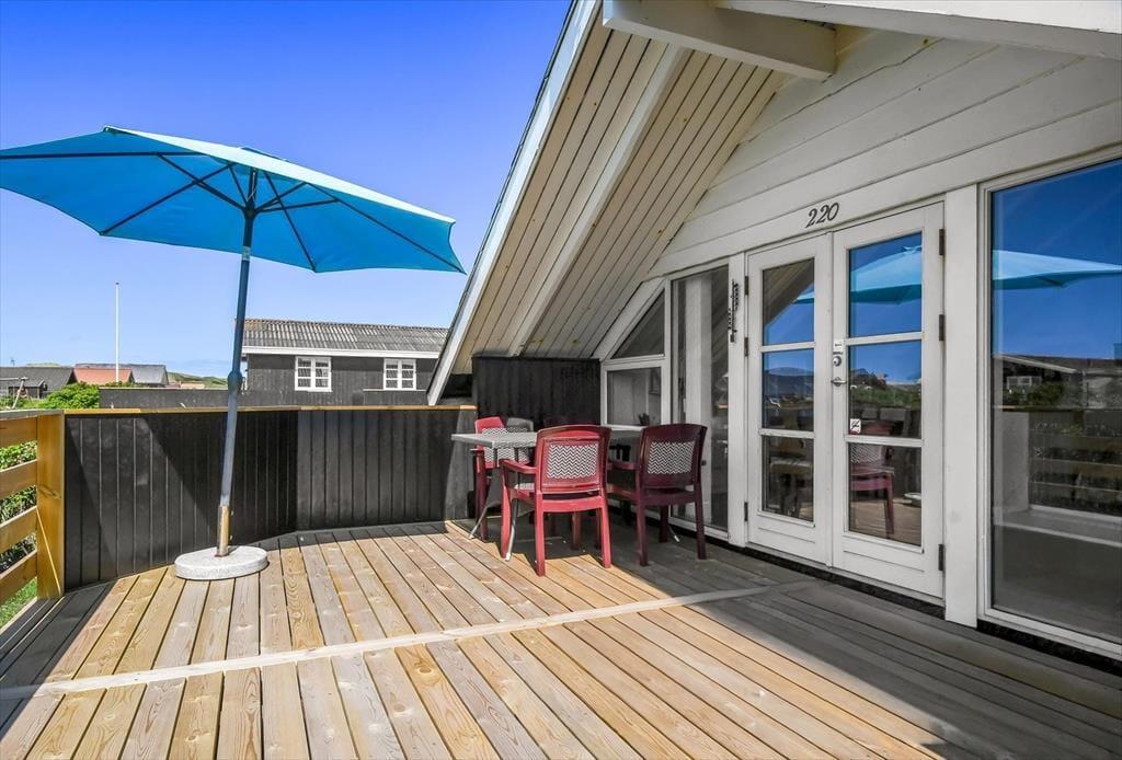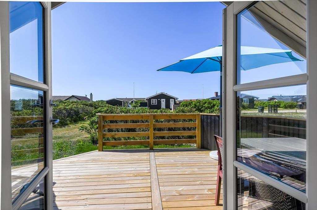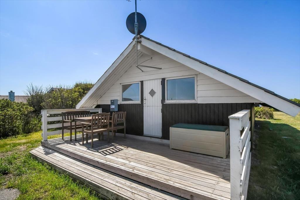 Fra stuen kan du træde direkte ud på terrassen, hvor du nemt finder en god siddeplads til sol, frokost eller et glas vin i aftengløden. Udenfor byder den omkringliggende grund på grønne omgivelser og mulighed for at nyde naturen helt tæt på – måske med lyden af fuglesang i baggrunden og den friske havluft i næsen. Her er det nemt at finde feriefølelsen frem, uanset om du nyder stilheden alene, har børnene med ude at lege eller bare vil læne dig tilbage og nyde udsigten til den vestjyske himmel, der hele tiden skifter karakter.