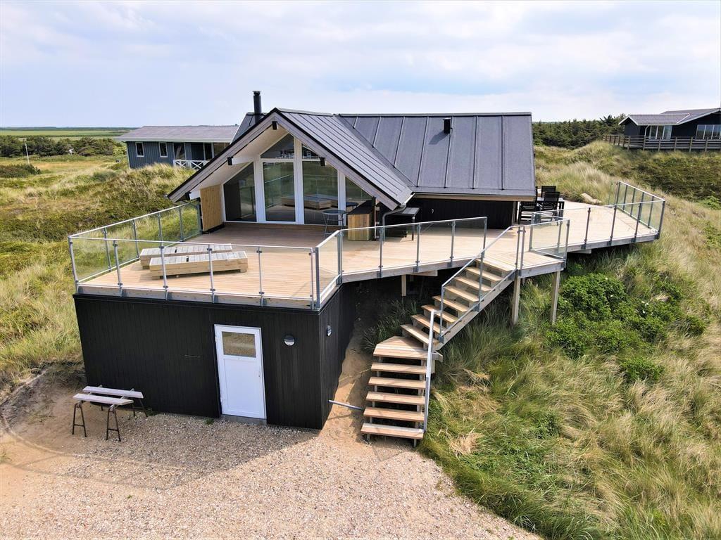Når du holder ferie på Dalevej 8 i Vejlby Klit Strand, vågner du op midt i naturen – med udsigt over klitlandskabet og kun en kort gåtur til det brusende Vesterhav. Sommerhuset ligger højt placeret på en stor klitgrund og er omgivet af vestjysk natur, så langt øjet rækker. Her er der masser af plads til at trække vejret dybt og mærke freden sænke sig. Det stilfulde og moderne hus med store vinduespartier og en stor træterrasse på 100 m² danner den perfekte ramme om en afslappende ferie, hvor både mennesker og hunde er velkomne.