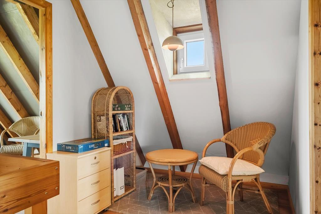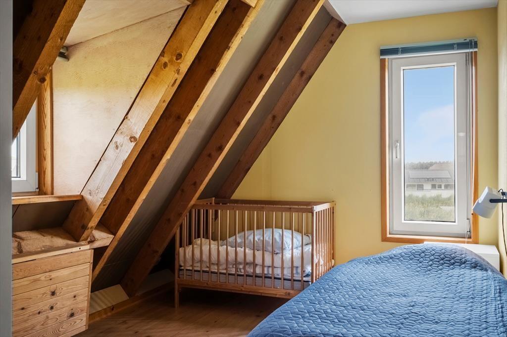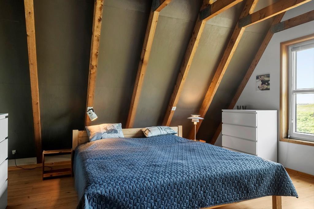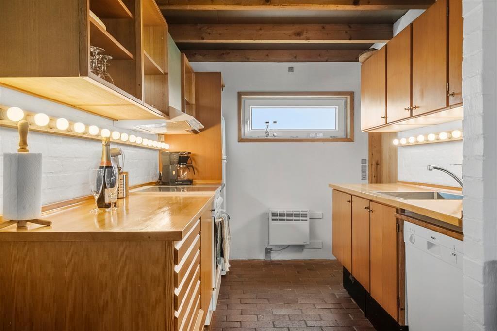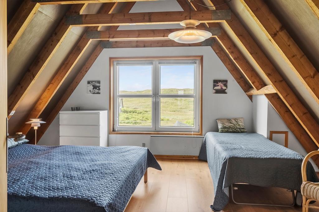 Sommerhuset er opført i mursten og strækker sig over 100 m² fordelt på to etager. Efter en renovering i 2022 fremstår det lyst og indbydende. I stueetagen finder du en hyggelig stue med store vinduer, der giver et smukt lysindfald og udsigt til klitlandskabet. Her kan du slappe af foran brændeovnen på kølige aftener eller nyde en film på TV'et med Chromecast. Køkkenet er åbent og veludstyret, hvilket gør det nemt at tilberede lækre feriemåltider. På første sal er der tre soveværelser, der tilbyder komfortable rammer for en god nats søvn efter en dag fuld af oplevelser.