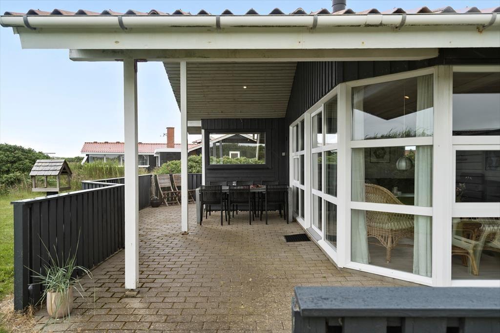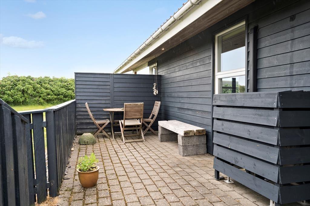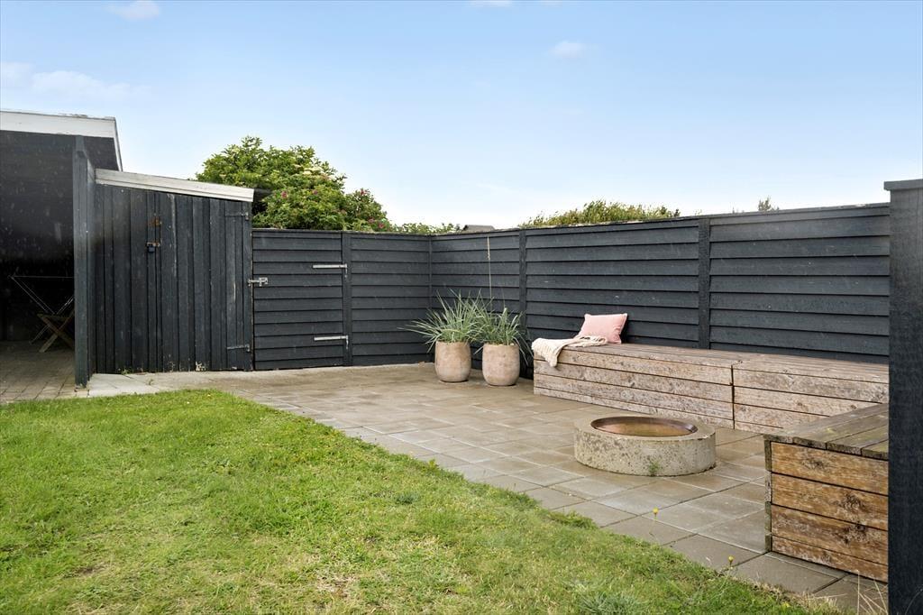 Udendørslivet omkring sommerhuset er præget af fred og privatliv. Du har to skønne terrasser at vælge imellem: en lukket terrasse mod øst, hvor du kan nyde morgensolen i læ og ro – og en delvist overdækket terrasse mod syd, som er oplagt til aftensmad under åben himmel eller en stille stund med en god bog. Foran huset breder et stort græsareal sig ud, perfekt til boldspil, picnic eller bare at lade børnene boltre sig, mens de voksne nyder tilbagelænet feriestemning. Her er det nemt at finde sin yndlingsplads i solen og bare nyde ferien, som den bør være.