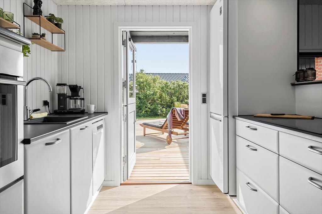 Det første, du lægger mærke til, når du træder ind i sommerhuset på Neerlandiavej 49, er den lyse og hyggelige atmosfære. Huset er indrettet i en afslappet og imødekommende stil, hvor det er nemt at finde ro og føle sig hjemme – uanset om du er her med familien, vennerne eller bare din firbenede ven. Det kombinerede køkken og stueområde fungerer som samlingspunktet, hvor du kan lave mad, spille spil, slappe af i sofaen eller måske bare læne dig tilbage med en god bog og nyde det fredelige ferietempo. Store vinduer lukker lyset ind og giver et dejligt kig til udelivet, så naturen altid føles tæt på – selv når du er indenfor.