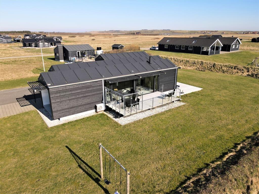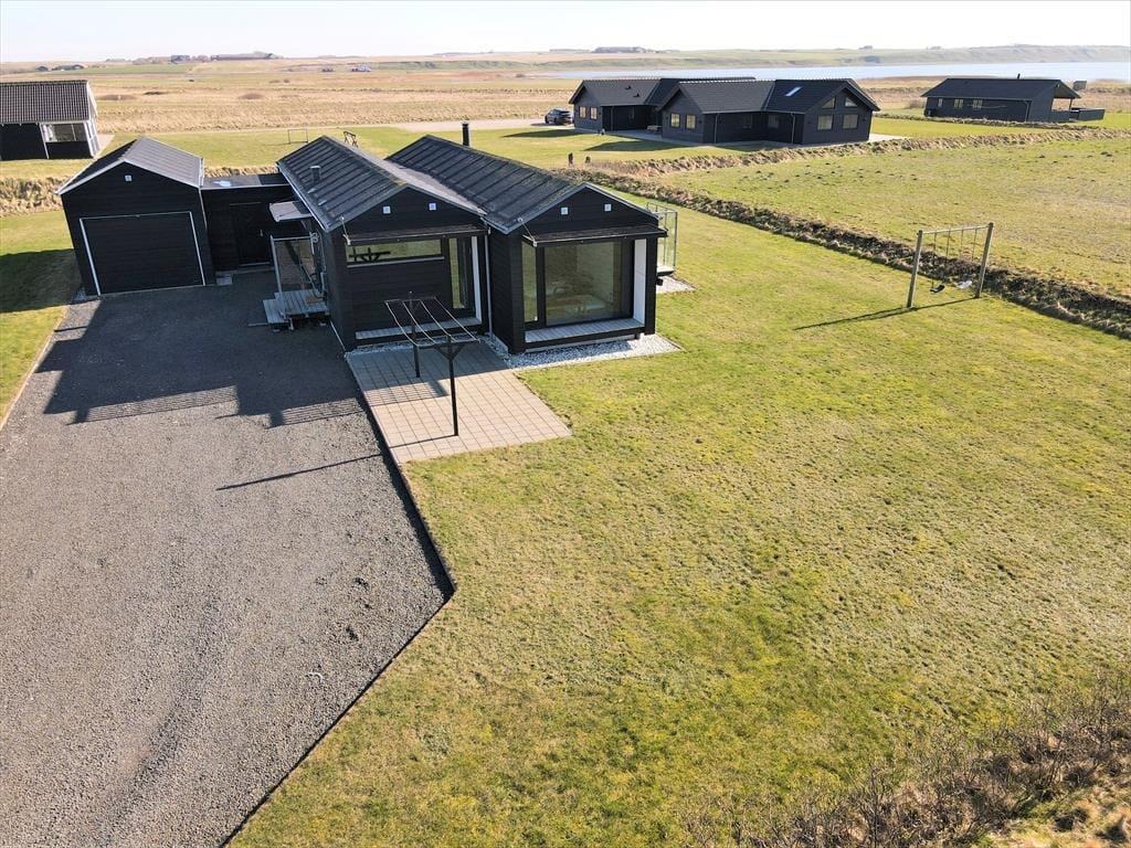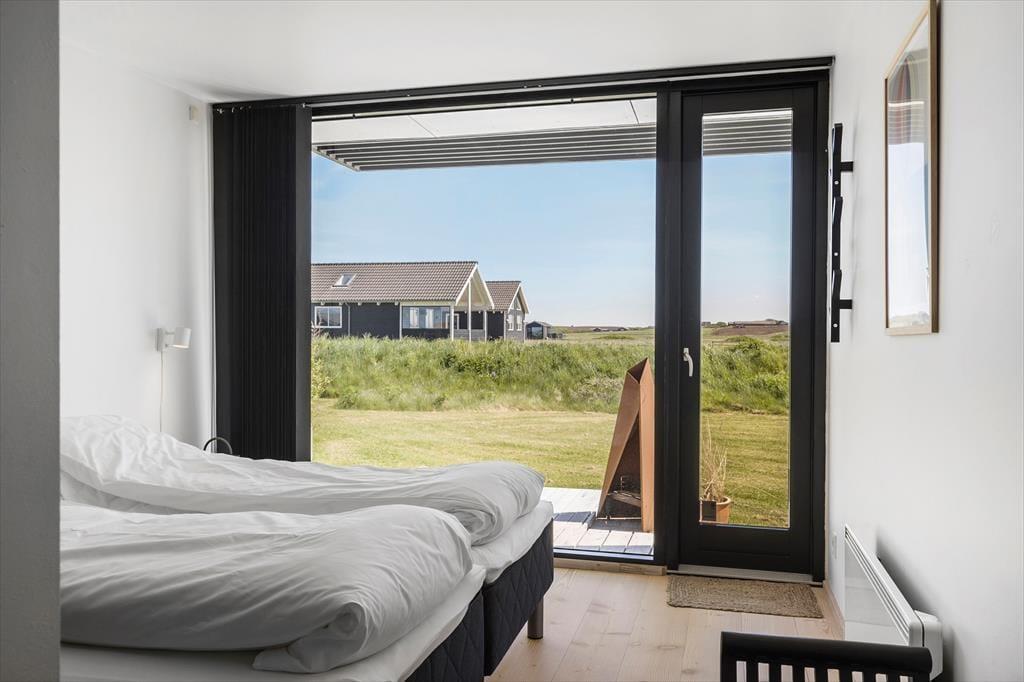 Beliggenheden er grund nok til at vælge dette skønne sommerhus som base for din næste ferie. Huset ligger nemlig dejligt roligt på den lukkede Bjergehusvej i udkanten af Vejlby Klit, og både fra stuen og terrassen har du den mest fantastiske udsigt over det åbne landskab med Ferring Sø, klitterne og endda Bovbjerg Fyr i det fjerne.