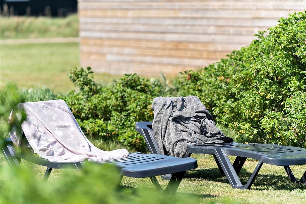 Med en solrig terrasse på hele 113 m² er der rig mulighed for at nyde ferielivet under åben himmel. På de lune dage kan du slå dig ned med en god bog i solen, samle familien omkring et dejligt måltid eller lade børn og hunde lege frit i de trygge omgivelser. Terrassen giver dig også mulighed for at finde læ, hvis vinden en sjælden gang tager til – og på de lange, lyse sommeraftener kan grillen nemt blive samlingspunktet for endnu flere hyggelige timer. Her kan du virkelig mærke, hvordan freden og naturen omkring Vejlby Klit indbyder til nærvær og afslapning.
