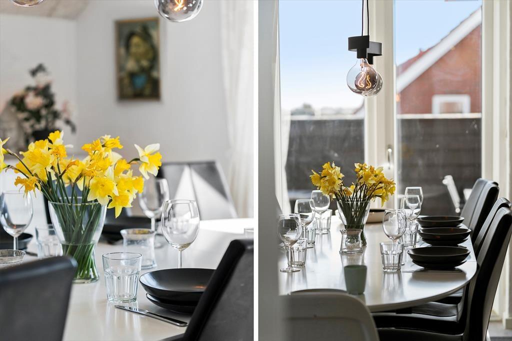 Terrassemiljøets dejlige spabad er med til at udvide rammerne for, hvornår du kan slappe af udenfor – der er nemlig ikke noget som et varmt bad på en ellers kølig dag, og på en sommeraften, når området emmer af fred og ro, kan det også være velgørende at sidde her under stjernehimlen. Rundt om huset får du nemt ved at finde en god og ugeneret siddeplads i solen, for der er flere terrasseområder at vælge imellem. Der er også taget højde for, at børnene skal have noget at lege med – inklusiv et gyngestativ, der tilmed står med fin udsigt til det naturskønne sommerhusområde.