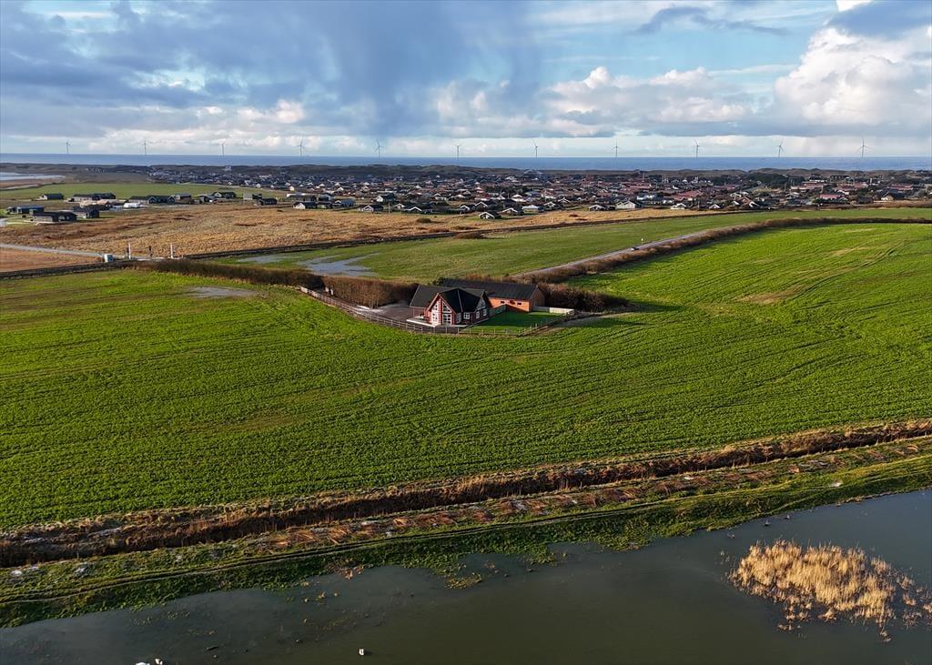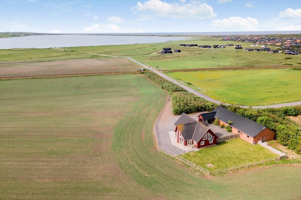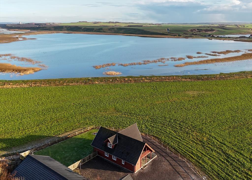 Rundt om huset finder du gode terrasseområder og grønne omgivelser, hvor du kan slå dig ned med en kop kaffe eller nyde et måltid i det fri. Fra terrassen mod søen har du frit udsyn over det smukke landskab, og det er oplagt at tilbringe sommeraftenerne her, mens solen går ned over vandet. Huset ligger på en rolig strækning af Strandvejen, og du får derfor både fred og skøn udsigt – og samtidig er der masser af muligheder for leg og udeliv lige ved hånden. Uanset om du nyder stilheden eller samværet, er det nemt at lade feriestemningen brede sig her, hvor træhusets varme møder den friske vestjyske luft.