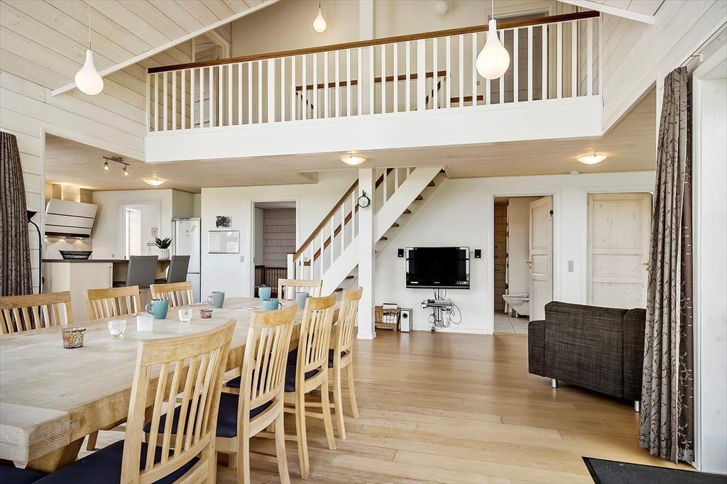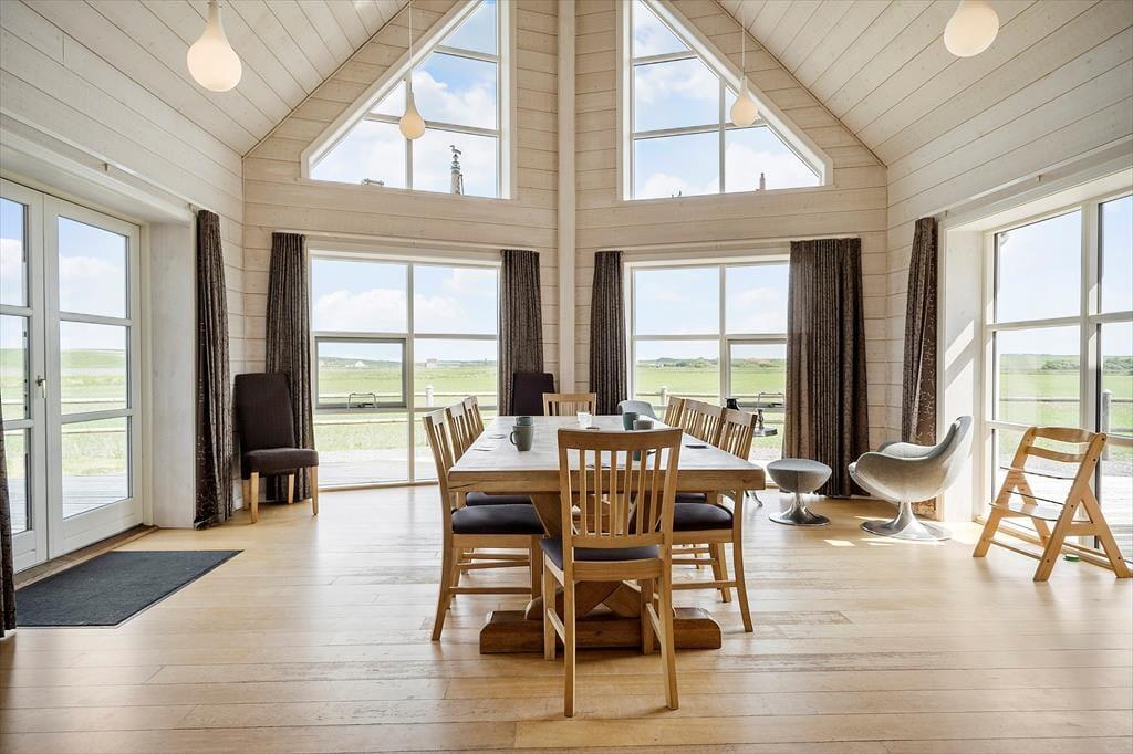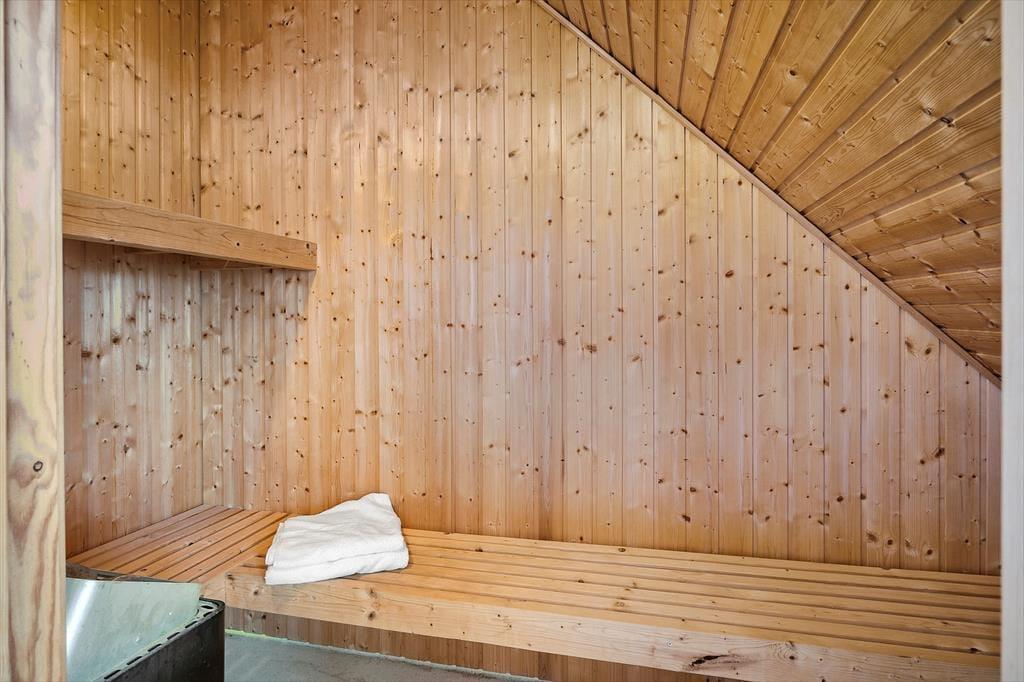 Indendørs venter et hyggeligt og rummeligt sommerhus, hvor det solide træværk skaber en varm og autentisk atmosfære. Det store opholdsrum binder stue, spisestue og køkken sammen i ét, og fra de store vinduespartier kan du nyde den imponerende udsigt over Ferring Sø, som giver en særlig ro og fornemmelse af at være tæt på naturen – selv når du er indendørs. Efter en dag fyldt med aktiviteter er det skønt at kunne koble af i det indendørs spabad, mens børnene leger videre eller hviler sig. Og for dig, der trænger til endnu mere afslapning, står saunaen klar til at lune kroppen efter en lang gåtur ved havet. Sommerhuset egner sig rigtig godt til to familier eller en stor vennegruppe, og har du hund, er den også mere end velkommen her.