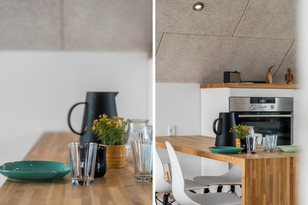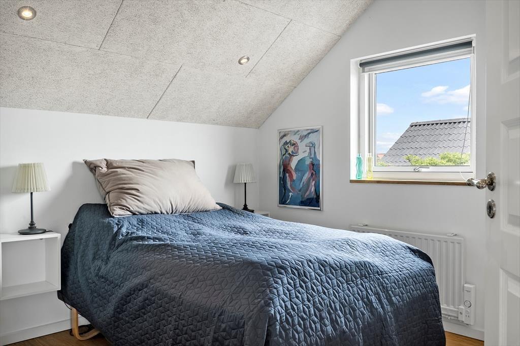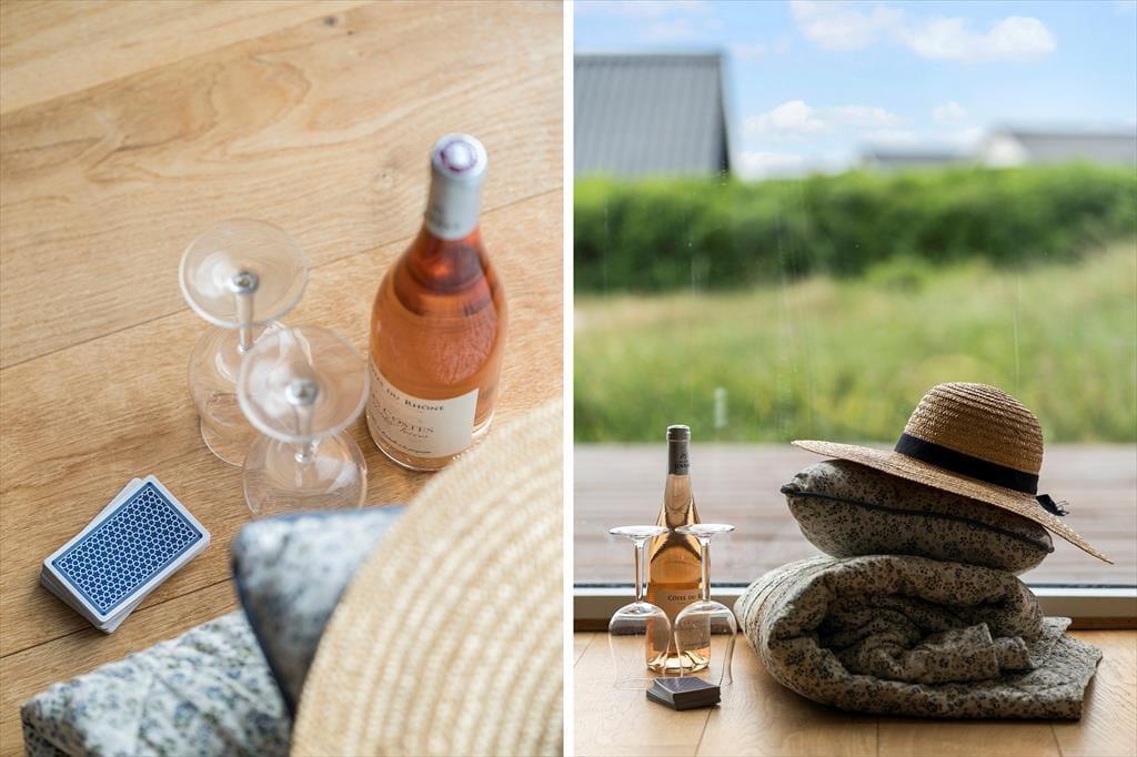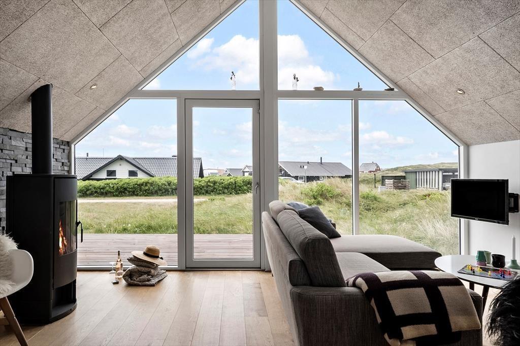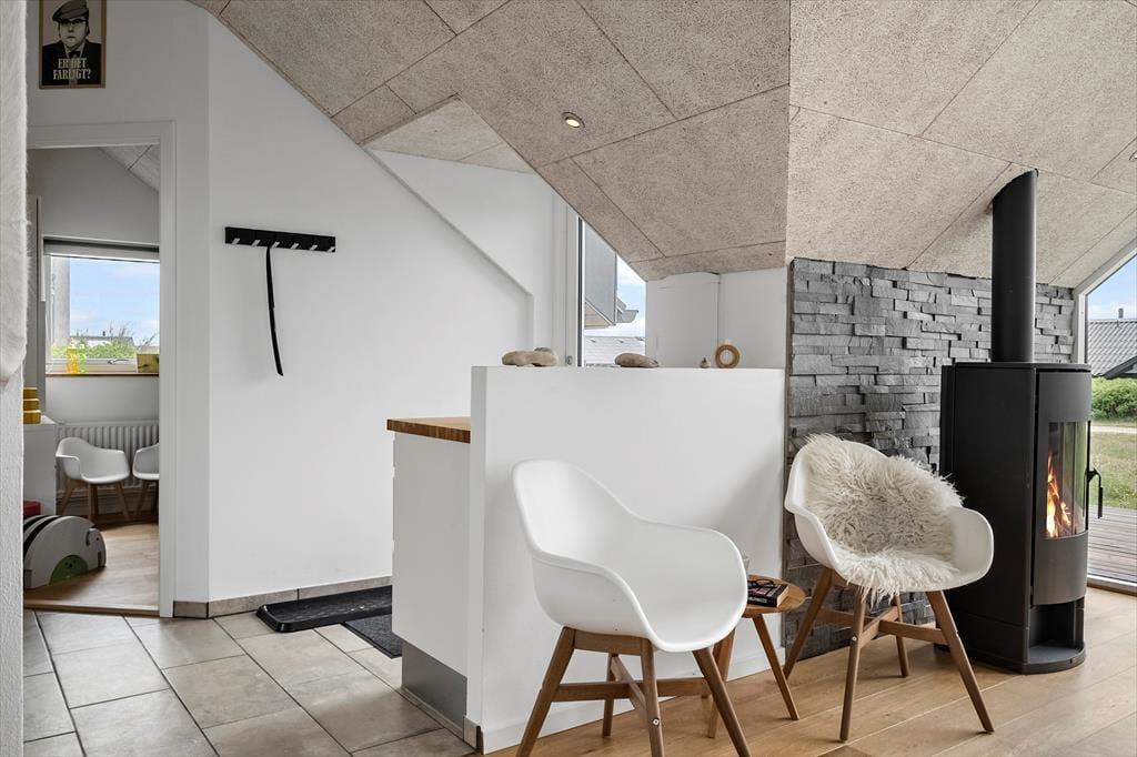 Indendørs venter en lys og hyggelig atmosfære, hvor det moderne udtryk møder klassisk sommerhusstemning. Indretningen er gennemtænkt og skabt til ro og nærvær, og især den rummelige opholdsafdeling er et naturligt samlingspunkt. Her kan du slå dig ned med en god bog i sofaen, mens gasbrændeovnen spreder varme og hyggestemning på kølige aftener – eller måske nyde en god film med familien efter en dag ved havet. Det store badeværelse giver god komfort, og med plads til to voksne og to børn er sommerhuset ideelt for den lille familie, der ønsker både kvalitet og hygge på ferien. Har du hund, kan du roligt tage den med – her er der nemlig plads og hjerterum til familiens firbenede medlemmer også.