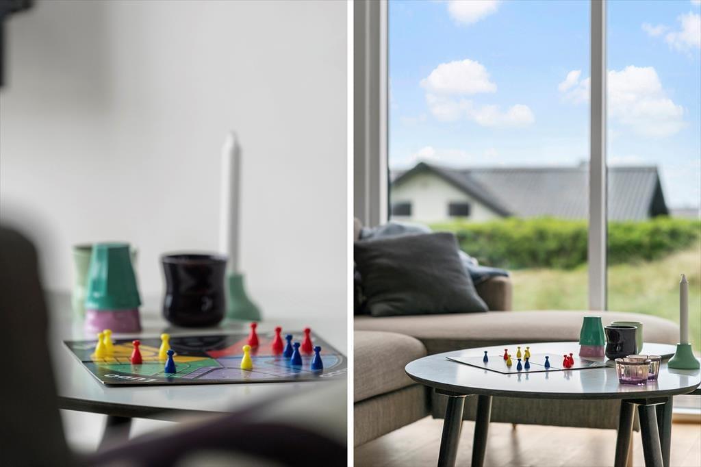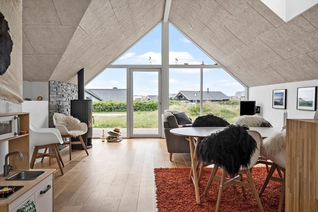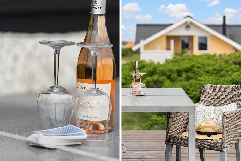 Rundt om huset finder du to dejlige terrasser, som er orienteret mod henholdsvis øst og sydvest. Det betyder, at du både kan nyde din morgenkaffe i solopgangen og læne dig tilbage i aftensolen med et glas vin i hånden. Uanset tidspunkt på dagen er der altid et lunt hjørne eller en god lækrog at finde – og herfra kan du nyde udsigten til det karakteristiske klitlandskab, der omkranser sommerhusområdet. For børnene er der rigeligt med plads til leg, mens hundene kan nyde friheden i de trygge rammer. Udelivet her byder på masser af muligheder for at slappe af, mærke vinden i håret og bare være til stede midt i naturen.