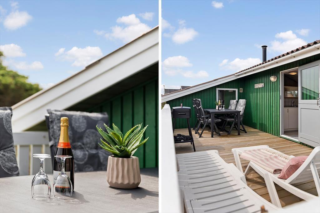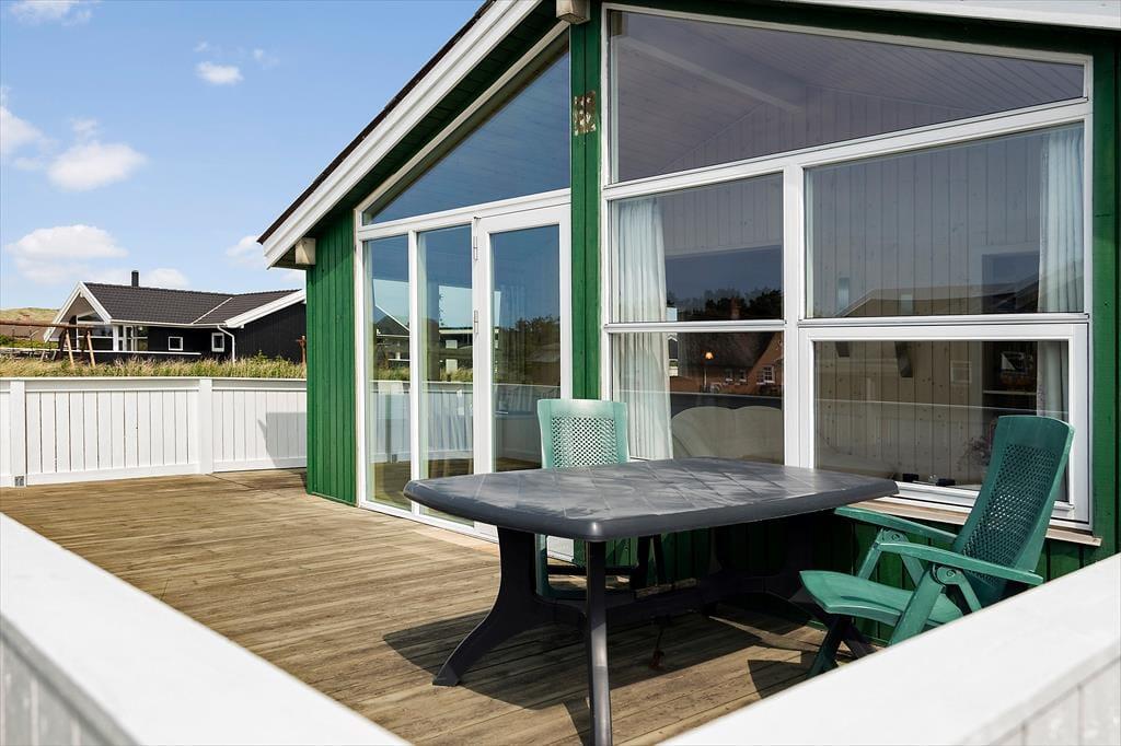 Sommerhusets store naturgrund er en af dets absolutte perler. De to terrasser – en sydvendt og en østvendt – giver mulighed for at nyde solen hele dagen. Den lukkede terrasse er ideel, hvis du har små børn eller hunde med, da den giver trygge rammer for leg og ophold. Fra terrasserne kan du nyde den betagende udsigt til klitterne, mens du lytter til fuglenes kvidren og mærker den friske havluft. Om aftenen kan du tænde op i grillen og nyde et lækkert måltid under åben himmel.