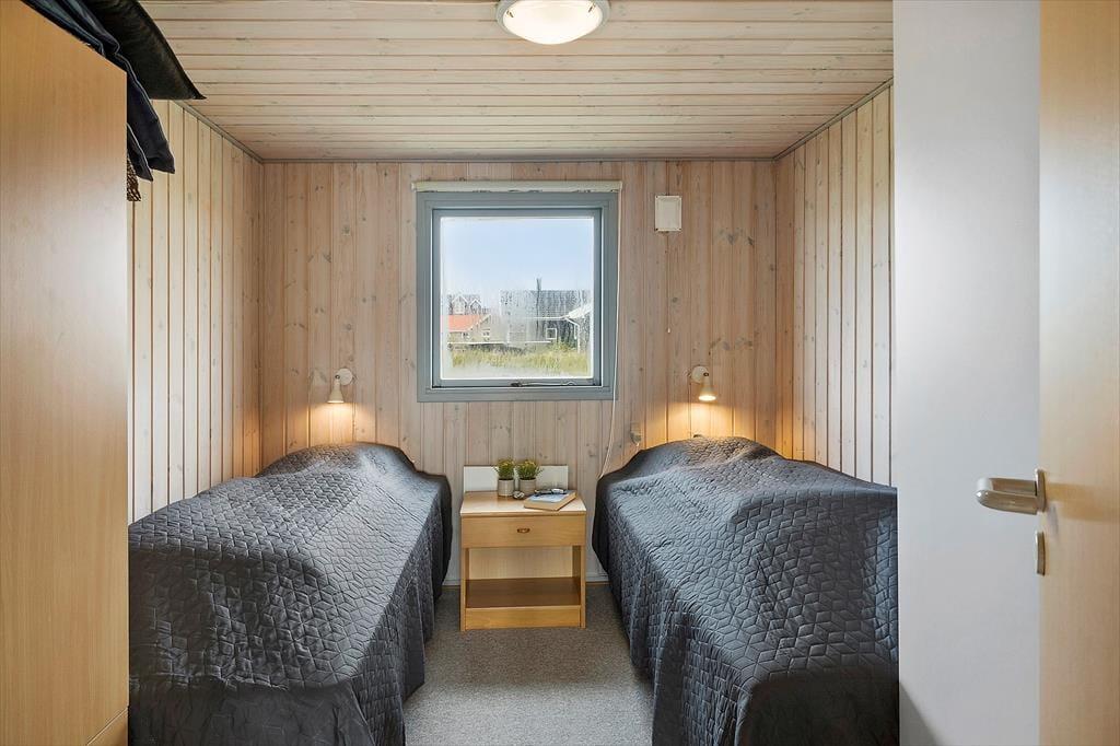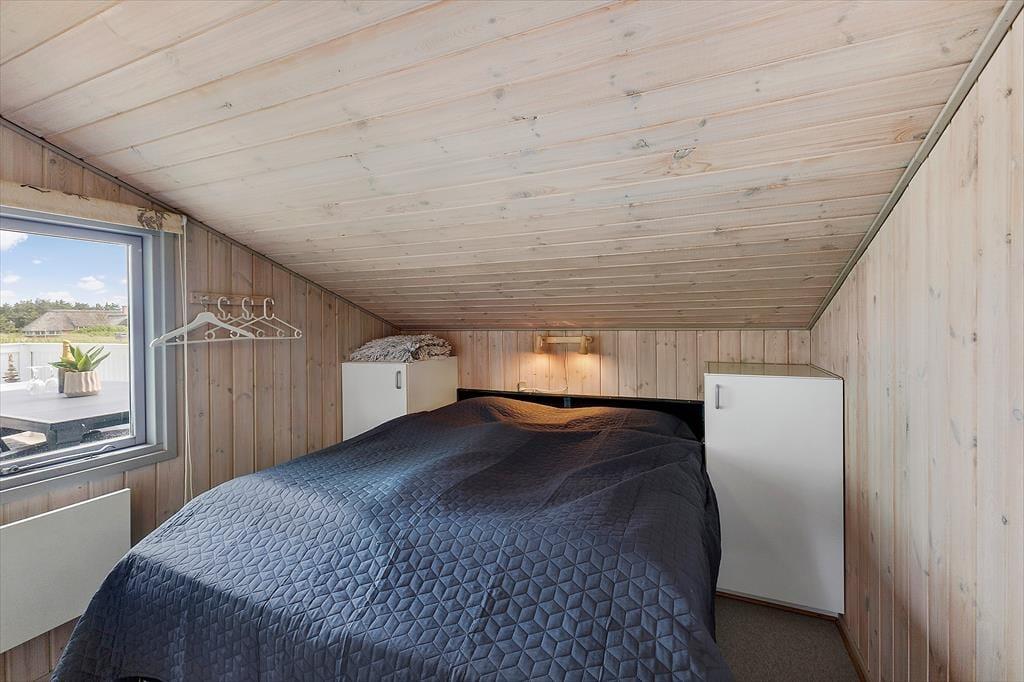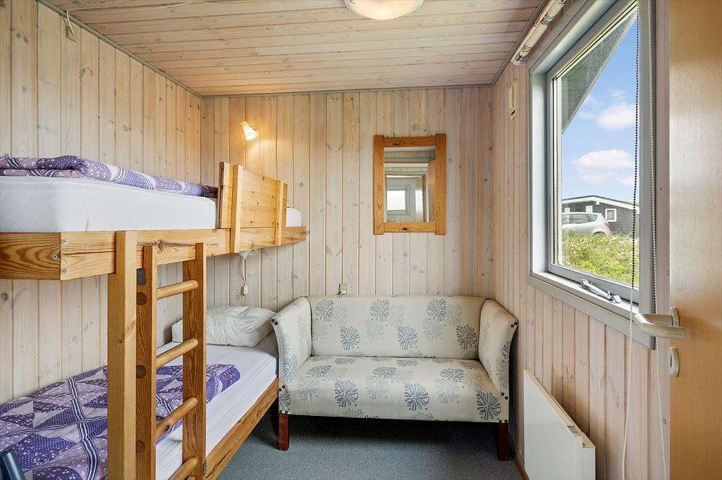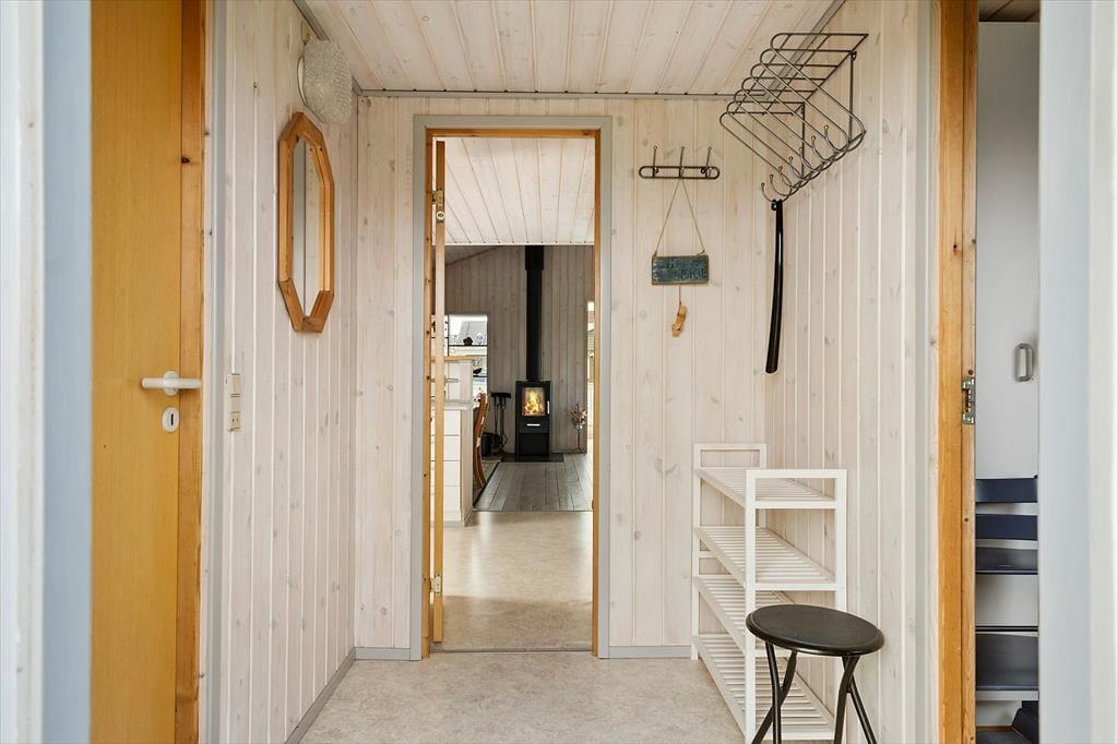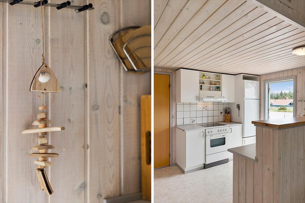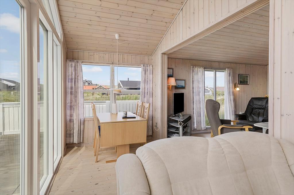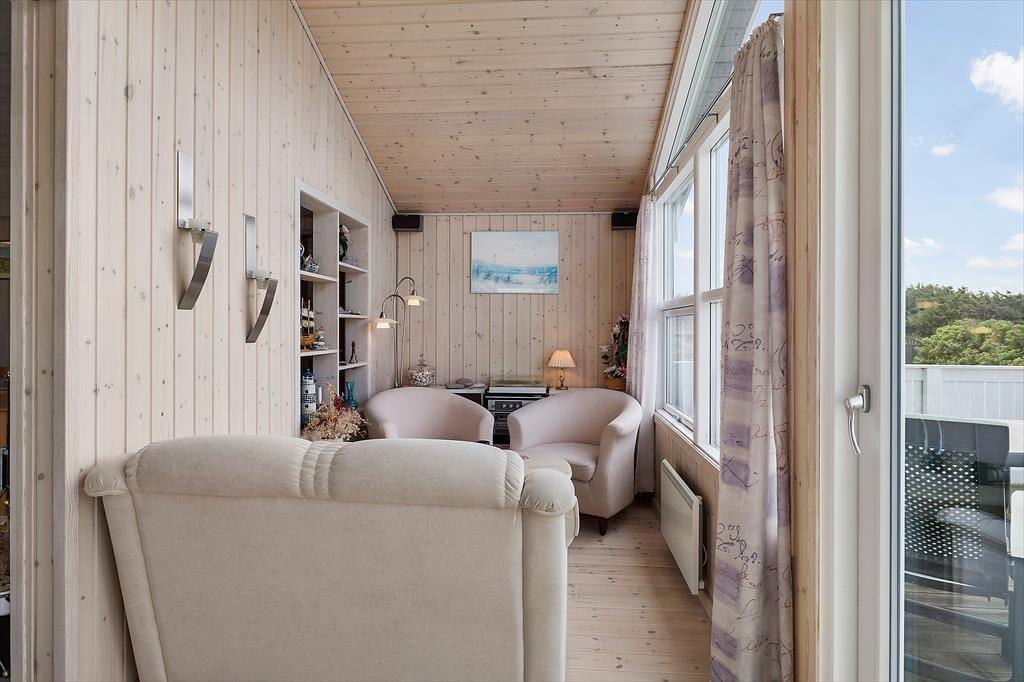 Når du træder ind i dette hyggelige sommerhus, mødes du af en lys og indbydende atmosfære. Huset er velindrettet med tre soveværelser, hvilket giver god plads til op til seks personer. Derudover er der en hems, som børnene vil elske at bruge som deres egen lille hule. Stuen og køkkenet er i åben forbindelse, hvilket skaber et naturligt samlingspunkt for hele familien. Her kan I nyde hyggelige aftener foran brændeovnen eller samles om et spil kort ved spisebordet. De store vinduer i stuen giver et fantastisk lysindfald og en smuk udsigt til klitterne, der omkranser huset.