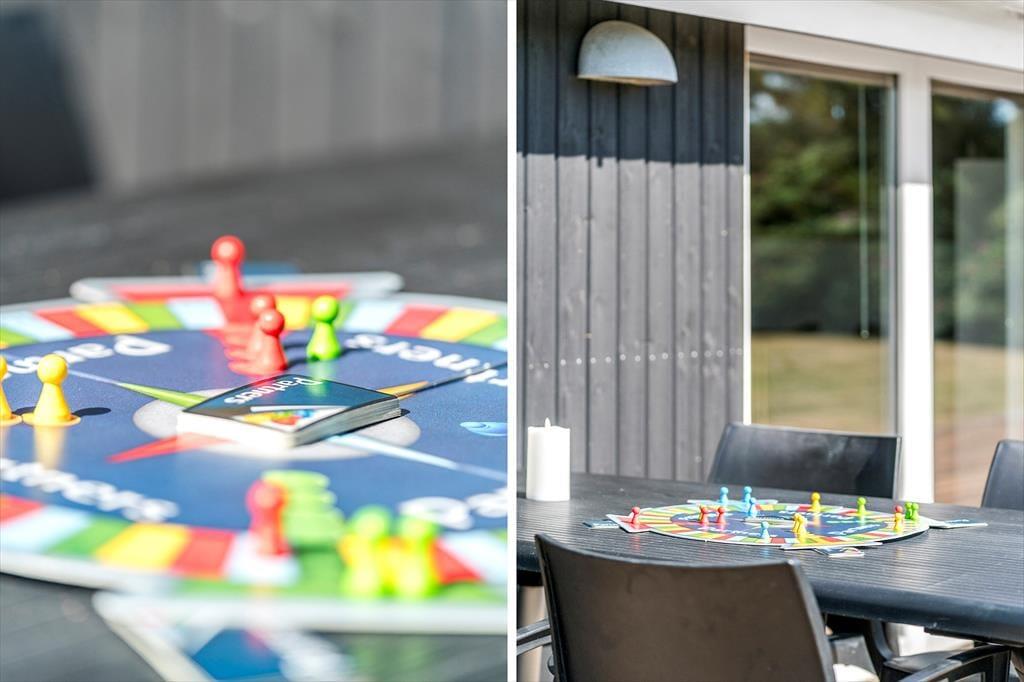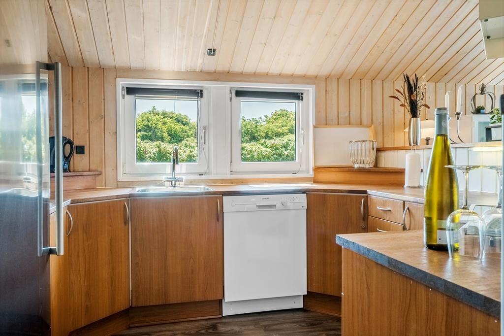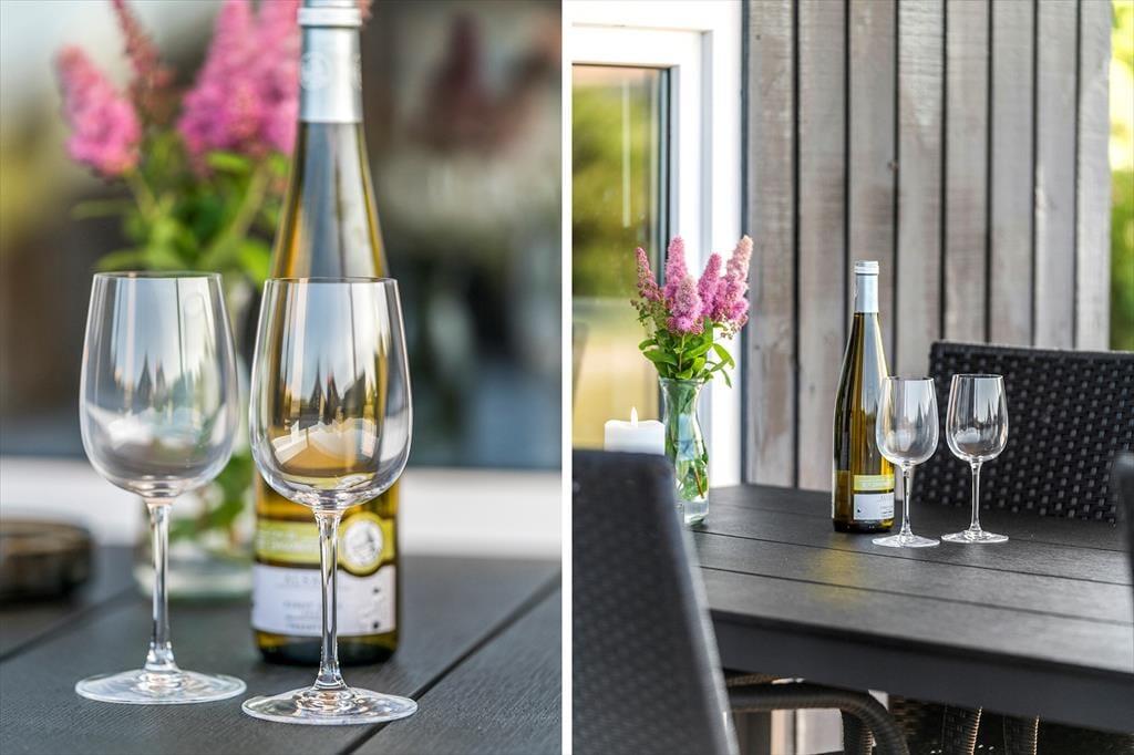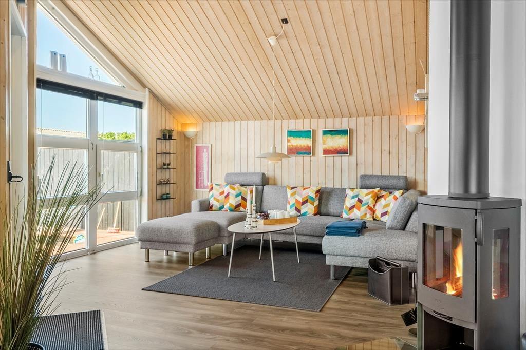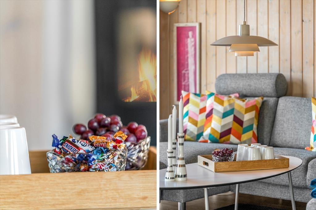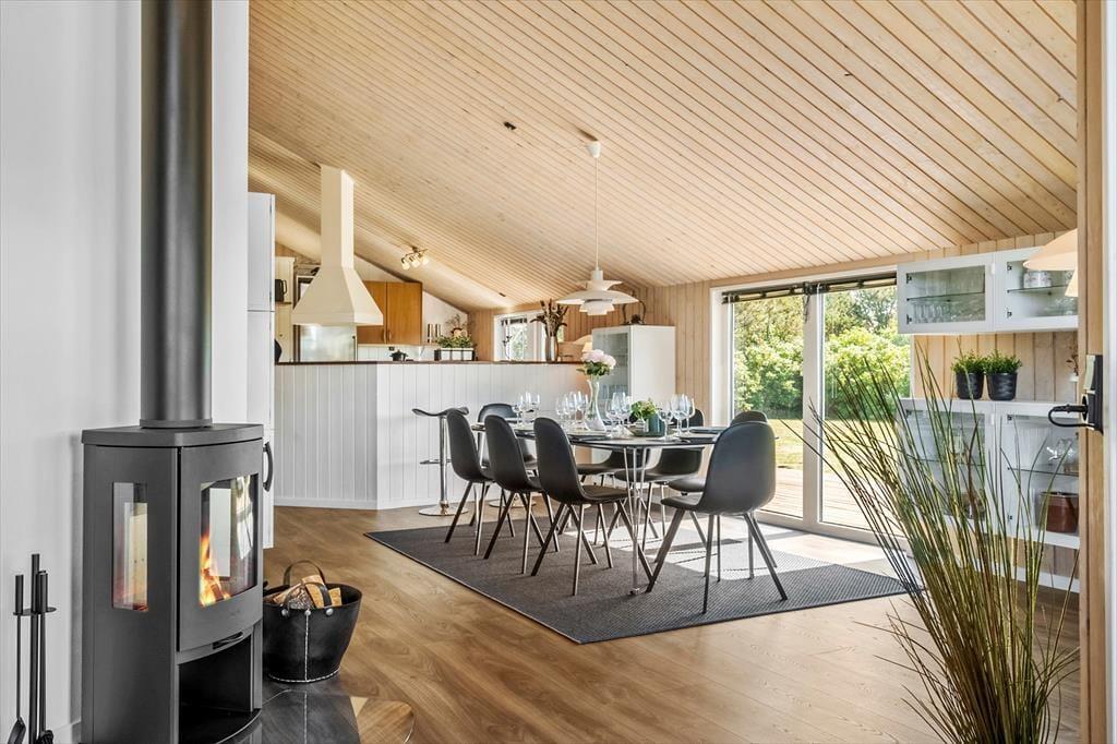 Når du træder ind i huset, mærker du straks den lyse atmosfære og den venlige stemning, som præger rummene. Den store fælles opholdsafdeling fungerer som husets hjerte og samlingspunkt, hvor stue og køkken er forbundet i åben planløsning. Her er det oplagt at samles om fælles madlavning, brætspil og afslapning foran brændeovnen, som spreder varme og hyggestemning – især på en kølig efterårsdag eller en regnvejrsformiddag. De store vinduespartier trækker naturen med ind i stuen, og det bløde lys skaber en fredfyldt stemning. Efter en lang dag i naturen kan I forkæle jer selv med en tur i saunaen eller et afslappende bad i husets indendørs spa. Alt er indrettet med blik for både komfort og kvalitetstid, så I kan få det meste ud af jeres ferie sammen.