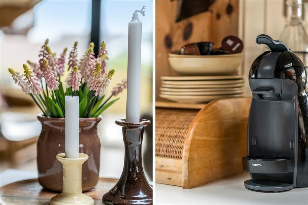 Indenfor byder sommerhuset på en varm og afslappet atmosfære, der emmer af feriestemning og samvær. De lyse rum og den hjemlige stil gør det nemt at finde ro og nærvær. Stuen er indrettet med bløde møbler, alkove og et hyggeligt spilområde med både spillekonsol og bordfodbold – et oplagt sted at samle hele familien til en omgang brætspil eller en god film. Det er let at forestille sig børnene fordybet i et spil, mens de voksne nyder en stille stund med en bog i alkoven. Køkkenet ligger i åben forbindelse med stuen, hvilket gør det nemt at snakke sammen og være nærværende – også når der skal laves mad. Små, personlige detaljer og indbydende kroge gør huset til et sted, hvor man har lyst til at være.