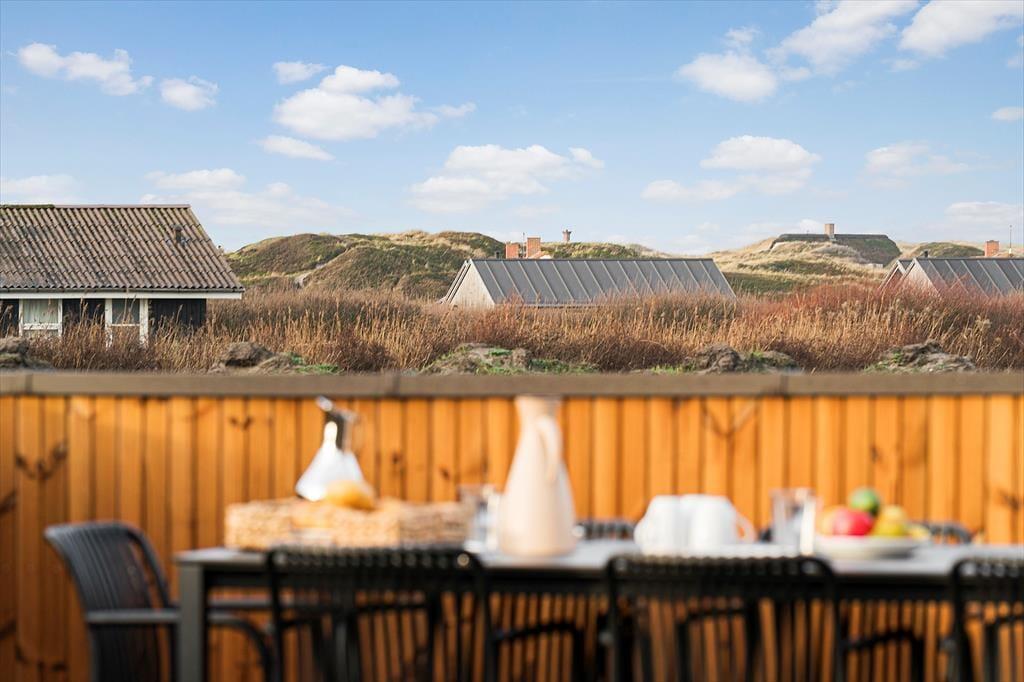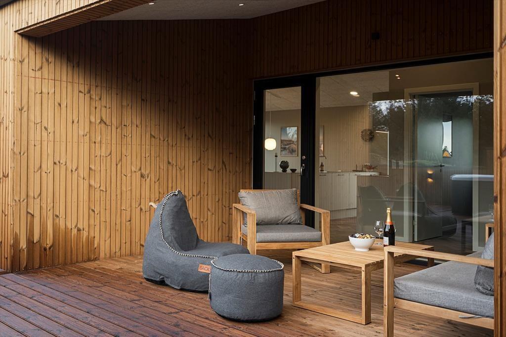 På terrassen kan du sætte tempoet helt ned. Den lukkede terrasse giver trygge rammer, hvor børn kan lege frit, mens de voksne nyder en stille stund i solen. Den overdækkede del indbyder til lange sommeraftener med grill og hyggelige samtaler, selv hvis duggen falder. Skal afslapningen have et ekstra strejf af luksus, er det oplagt at hoppe i det varme udespa under åben himmel eller tage en tur i saunaen. Efter en frisk dukkert i Vesterhavet kan du skylle sandet af under udebruseren og lade feriefølelsen brede sig for alvor. Det er rammer, der gør udelivet til noget helt særligt – uanset årstiden.