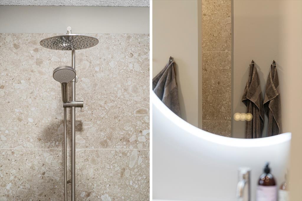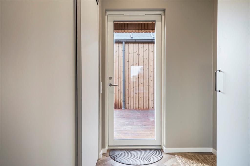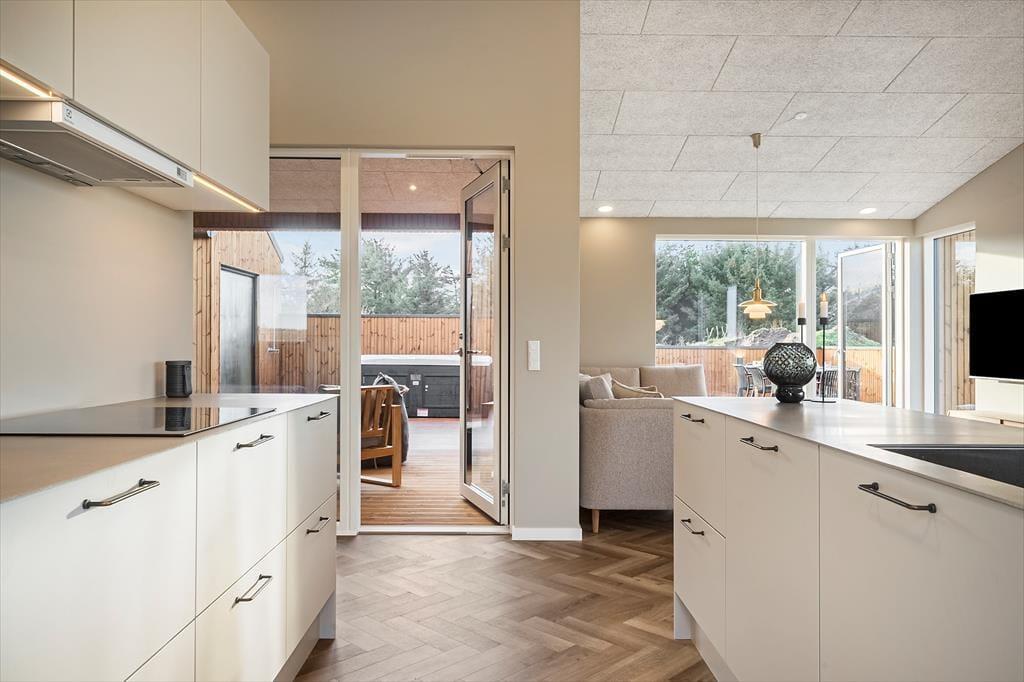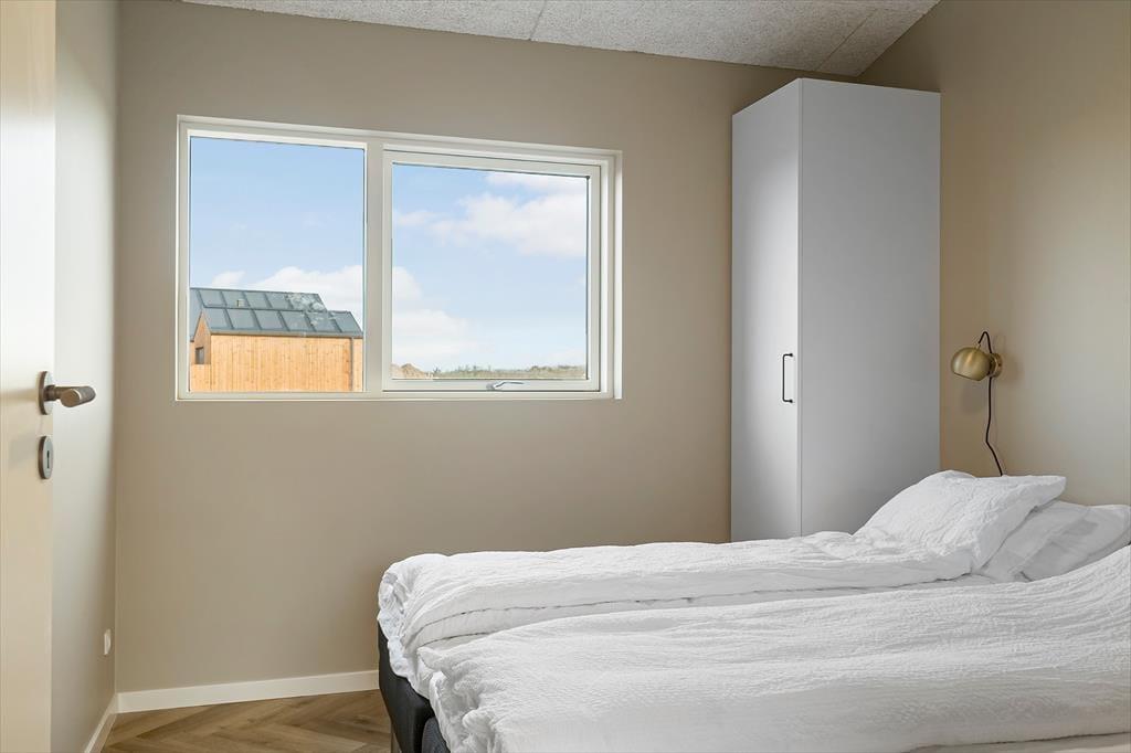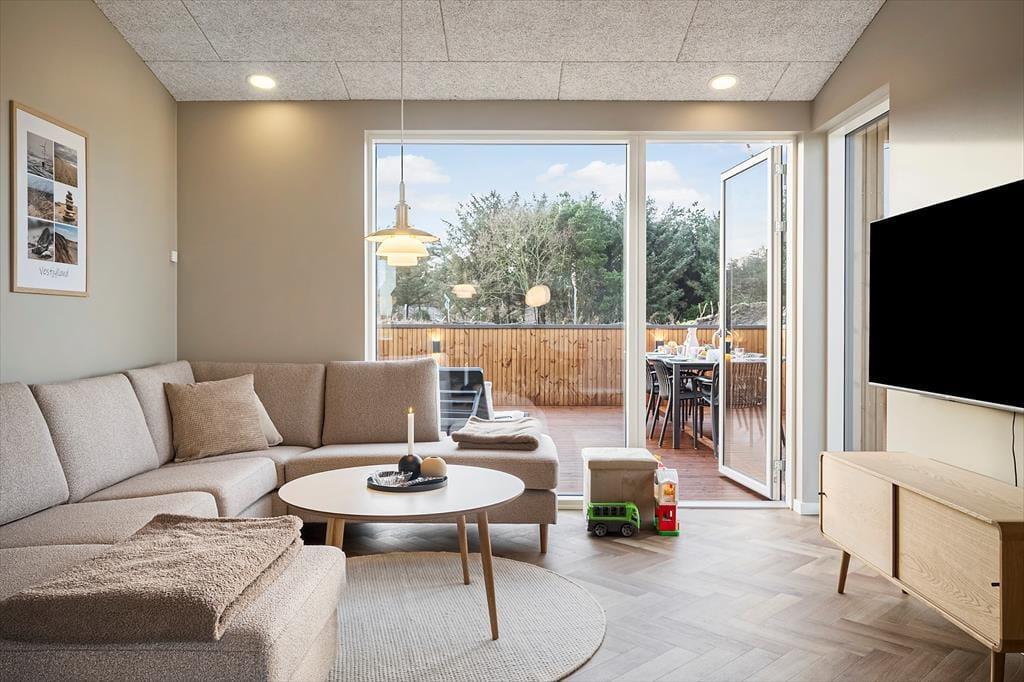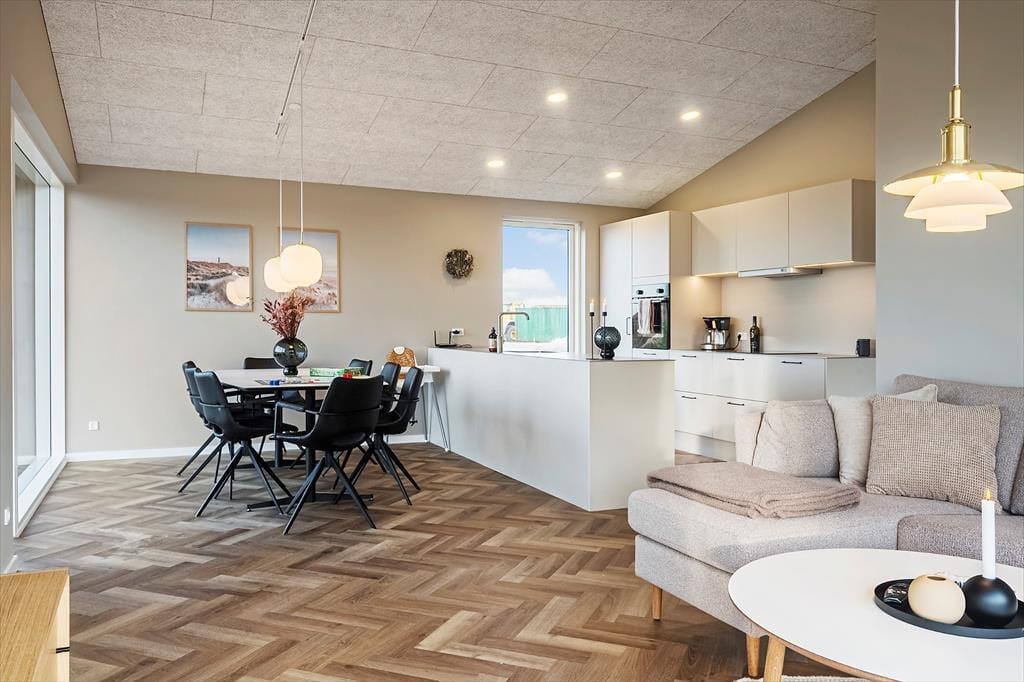 Så snart du træder ind, bliver du mødt af en lys og hyggelig atmosfære. Indretningen er enkel og indbydende, og store glaspartier sørger for, at dagslyset strømmer ind i stuen. Køkkenet ligger i åben forbindelse med opholdsrummet, så det bliver nemt at samles omkring madlavningen, mens resten af familien hygger sig med et spil kort eller en god film i sofaen. Det er et rigtigt samlingspunkt, hvor I kan finde roen og være sammen om de små ferieøjeblikke. Sommerhuset giver plads til, at både børn og voksne kan finde sig til rette.