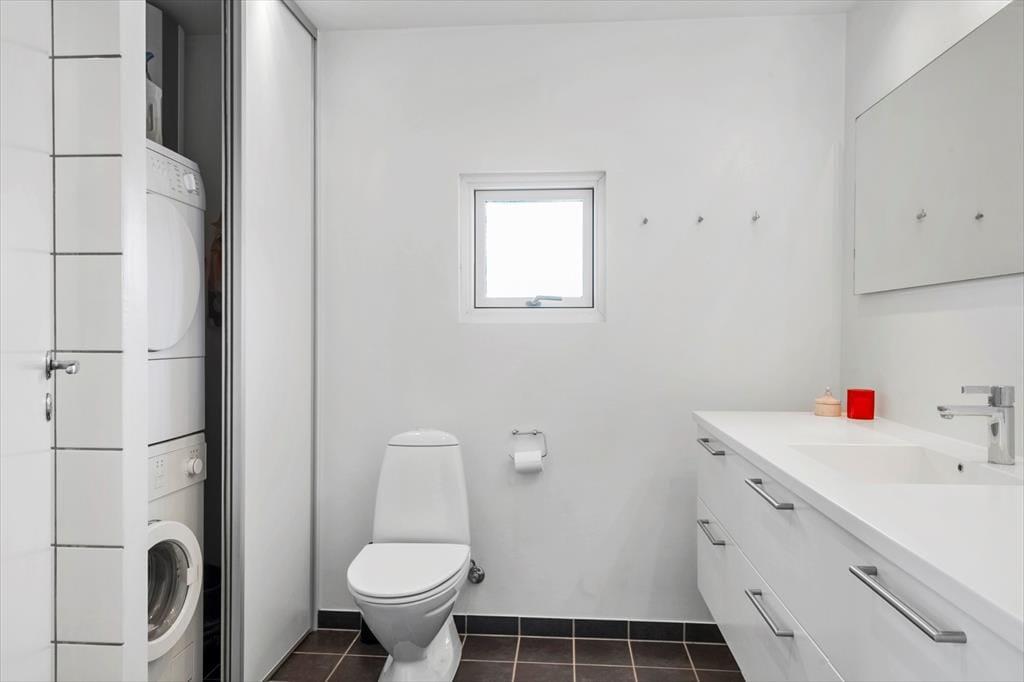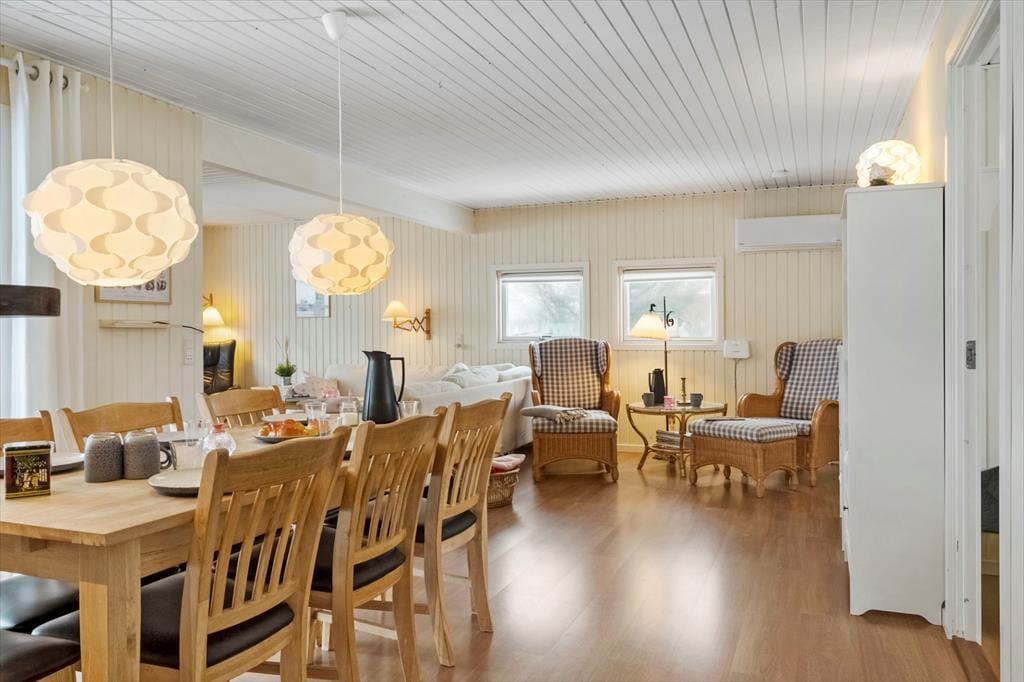 Indenfor mødes du af en lys og hyggelig atmosfære, hvor det er let at finde ro og feriestemning. Indretningen er venlig og indbydende, og de lyse overflader understreger fornemmelsen af luft og plads. Brændeovnen står klar til de køligere dage, hvor flammernes knitren hurtigt samler familien til hyggelige stunder med varme drikke, brætspil og gode samtaler. Badeværelset er nyrenoveret og fremstår moderne og indbydende – et rart sted at starte dagen efter en frisk morgentur ved havet eller afslutte den med et varmt bad. Sommerhuset egner sig perfekt til en ferie med familie eller venner, hvor der er fokus på nærvær, komfort og afslapning. Her kan du trække stikket, sænke skuldrene og nyde ferien i dit eget tempo.