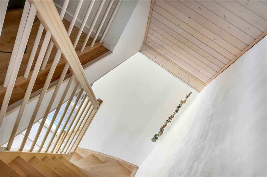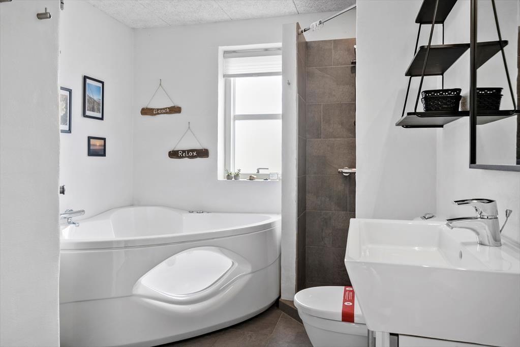 Sommerhuset er indrettet i to plan, og allerede når du træder indenfor, fornemmer du den varme og velgennemtænkte atmosfære. I stueplan finder du opholdsstuen med brændeovn og store vinduer, som inviterer dagslyset indenfor og skaber en rolig ramme om familiens feriestunder. Herfra er der direkte udgang til terrassen, så inde- og udeliv let smelter sammen. Spaen og saunaen ligger i stueetagen og er oplagte til en stund med selvforkælelse – især efter en blæsende tur ved havet. På første sal finder du et lyst og hyggeligt fællesrum med både sofagruppe og bordfodbold, som indbyder til leg, grin og hyggelige timer sammen. Indretningen emmer af kvalitet, og uanset årstid er det let at finde roen og komme ned i gear her.