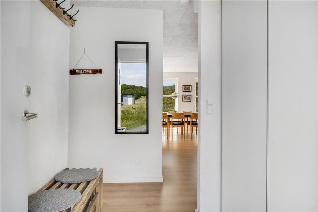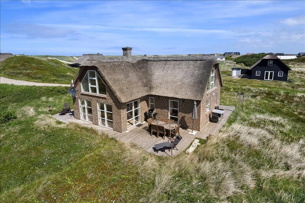 Den store klitgrund på hele 1500 m² gør, at sommerhuset ligger smukt og naturligt indrammet i landskabet – og med første parket til Vesterhavets dramatiske natur. På terrassen, som ligger i læ ved huset, kan du nyde dine måltider, mens solen varmer, og vinden leger i klittoppene. Her er rig mulighed for at sidde ugeneret og slappe af med en god bog eller nyde lyden af fuglesang og det fjerne brus fra havet. Børnene har god plads til at lege i det kuperede terræn, og når dagen går på hæld, kan I tænde op i grillen og lade stemningen sænke sig, mens himlen farves i varme nuancer over klitterne. Feriehusets beliggenhed gør det nemt at være helt tæt på naturen, uden at give afkald på komfort.