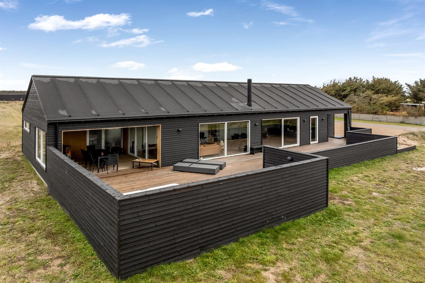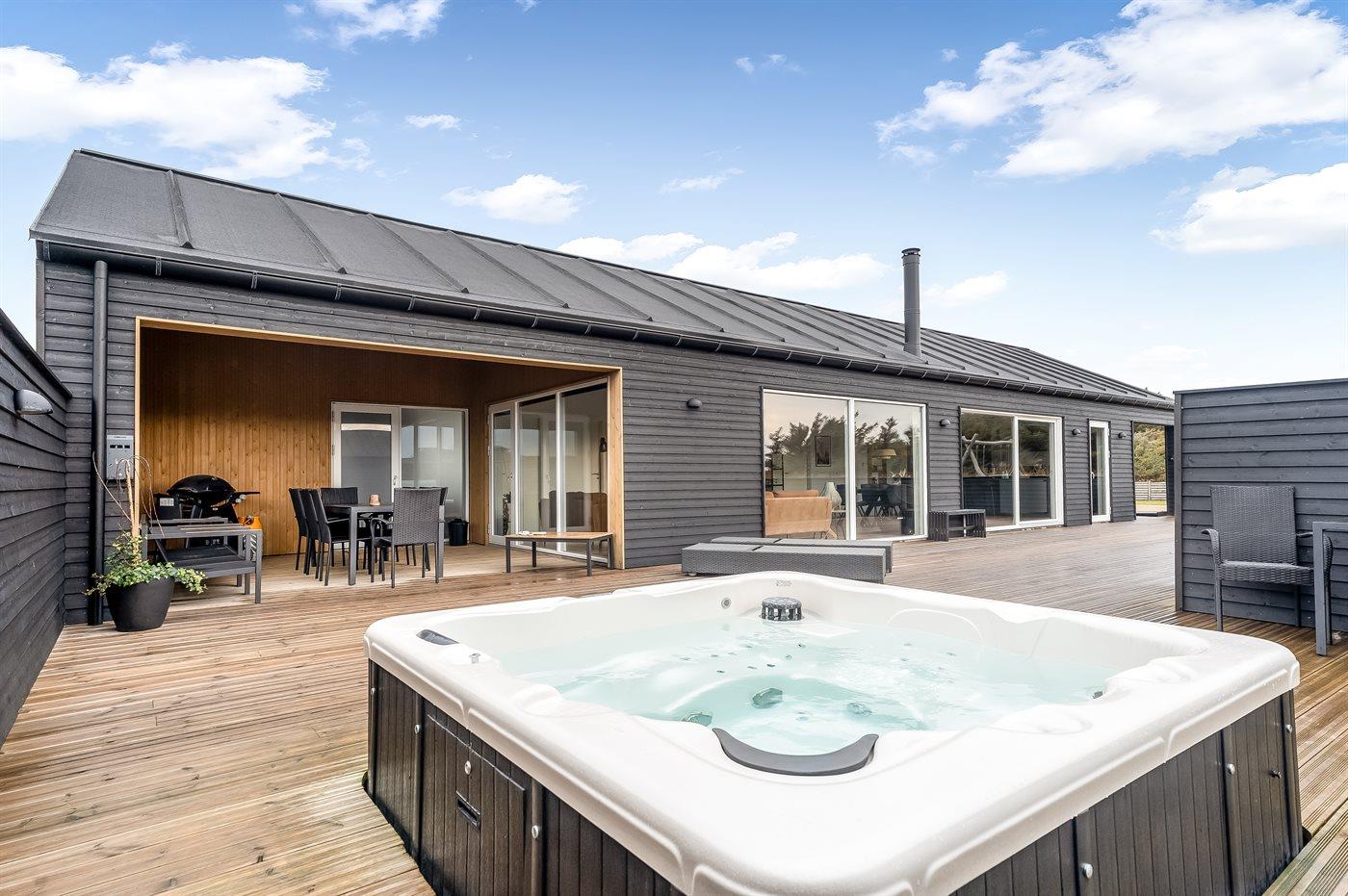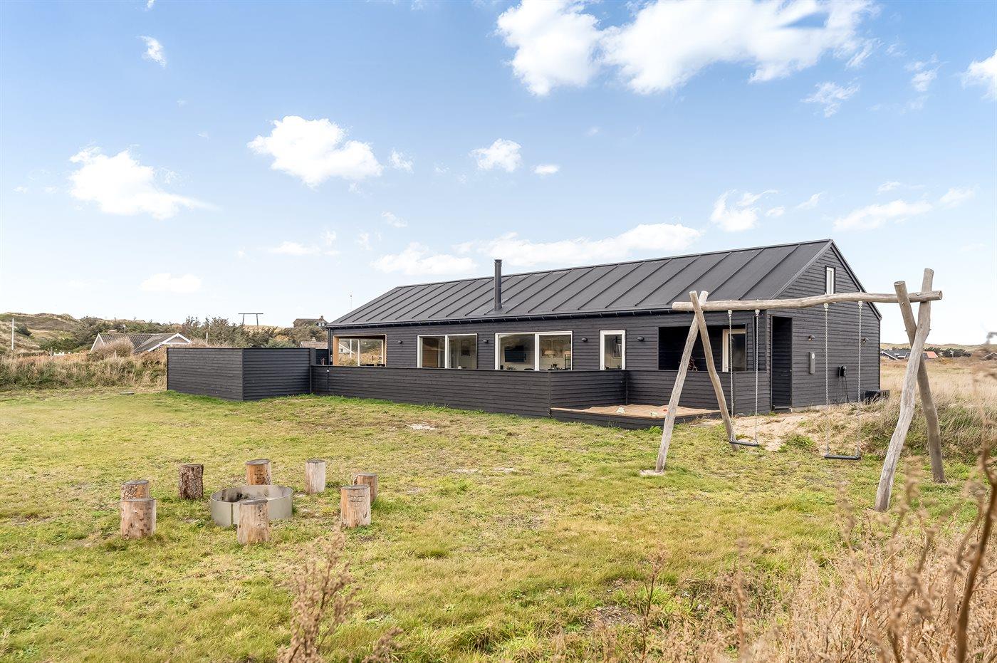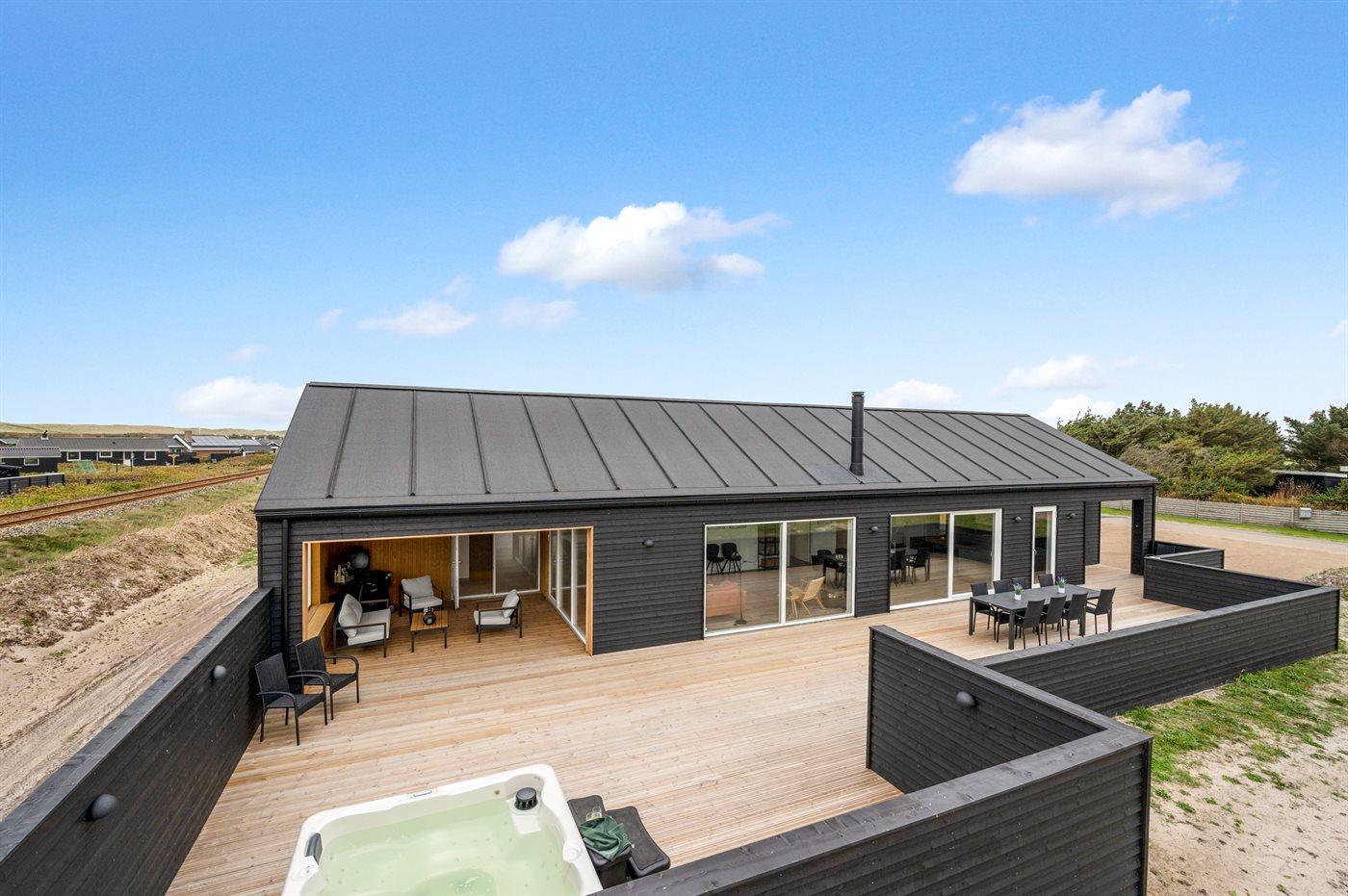 I dette feriehus får du et moderne og funktionelt hus, hvor der er fokus på rummelighed og æstetik. Med de store vinduespartier kommer der masser af lys ind i huset, og den overdækkede terrasse er en fantastisk oase selvom Vesterhavets susen kan mærkes. I dette hus har du nok også Vejlby Klits største sauna og i kombination med den lækre udendørs spa byder huset også på masser af wellness.