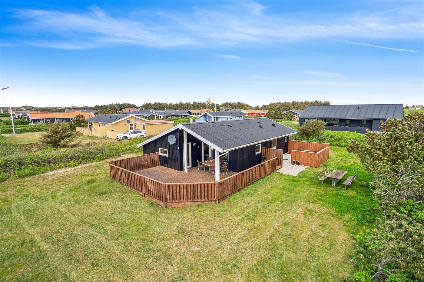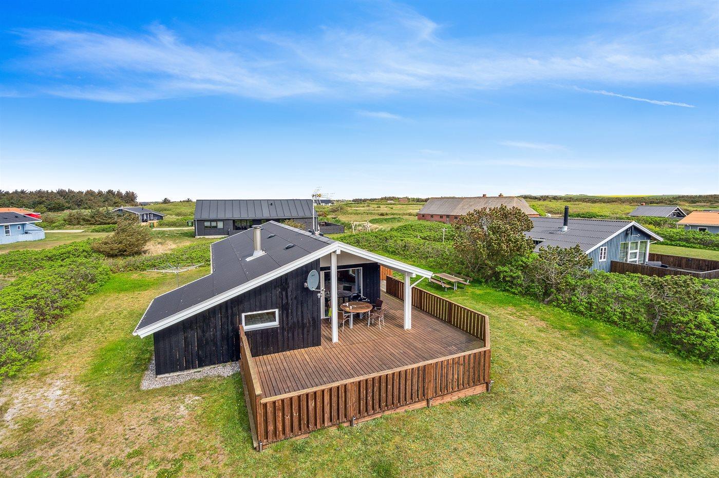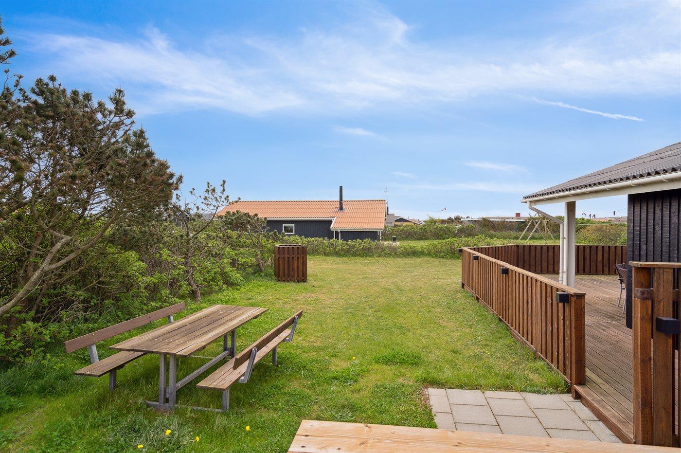 Ferieboligen er beliggende på en 845 m² stor klitgrund. Der er 700 m til havet. Nærmeste forretning er beliggende i en afstand af 300 m. Til ferieboligen hører 36 m² terrasseareal. Desuden er der 6 m² overdækket terrasse. Der er redskabsrum. Der ligger en legeplads i en afstand af 100 m. Grill til rådighed. Parkering ved ferieboligen.