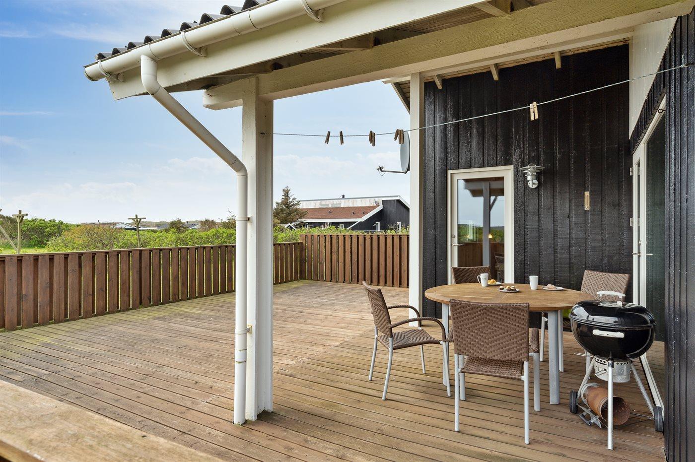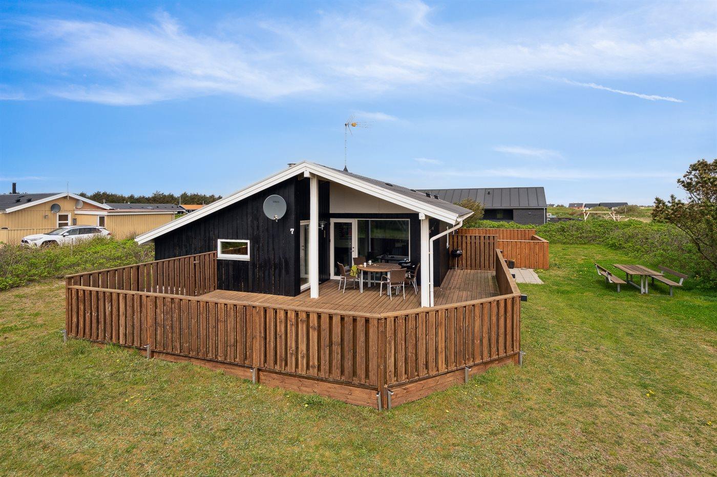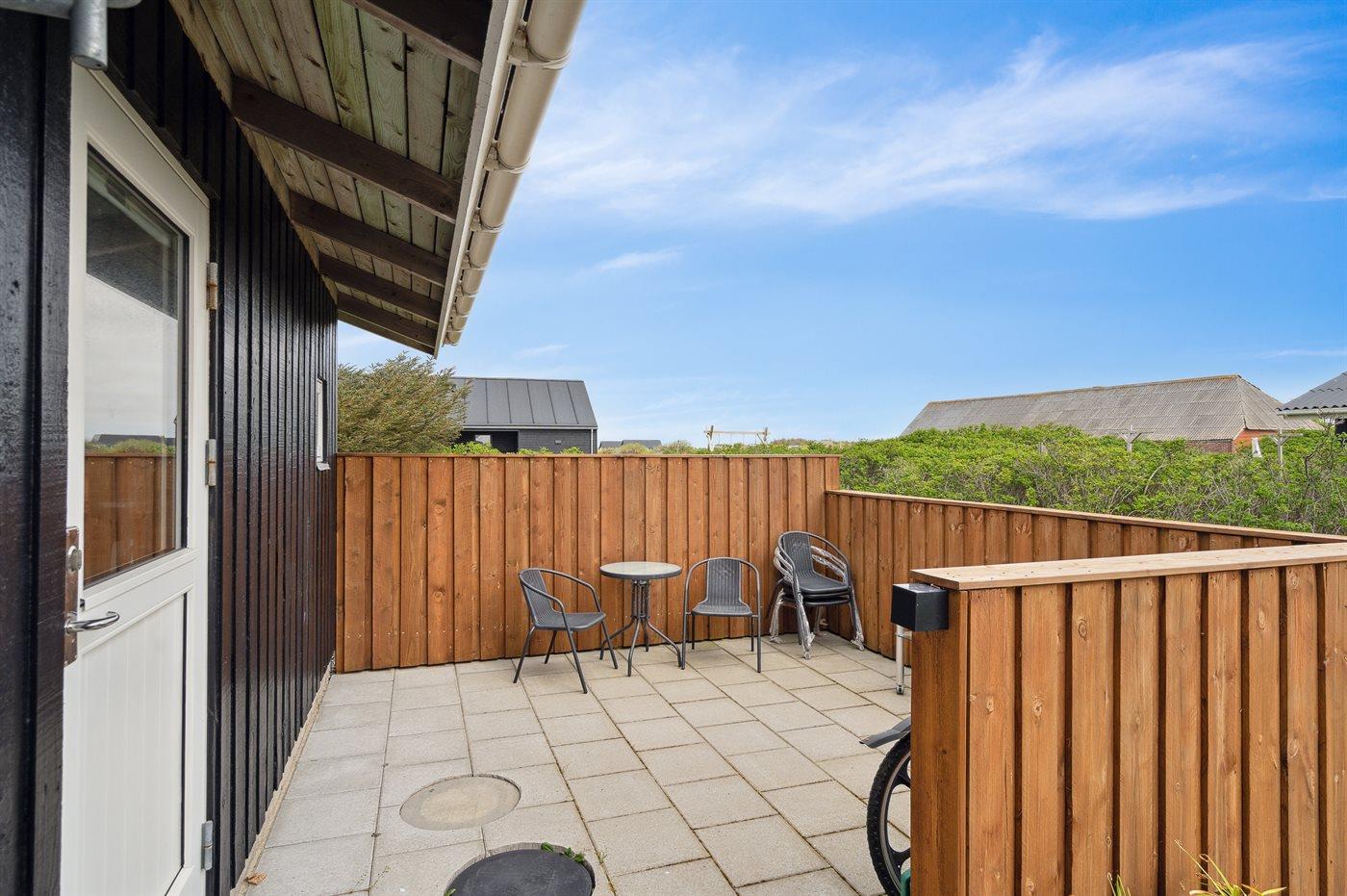 Ferieboligen er beliggende på en 845 m² stor klitgrund. Der er 700 m til havet. Nærmeste forretning er beliggende i en afstand af 300 m. Til ferieboligen hører 36 m² terrasseareal. Desuden er der 6 m² overdækket terrasse. Der er redskabsrum. Der ligger en legeplads i en afstand af 100 m. Grill til rådighed. Parkering ved ferieboligen.
