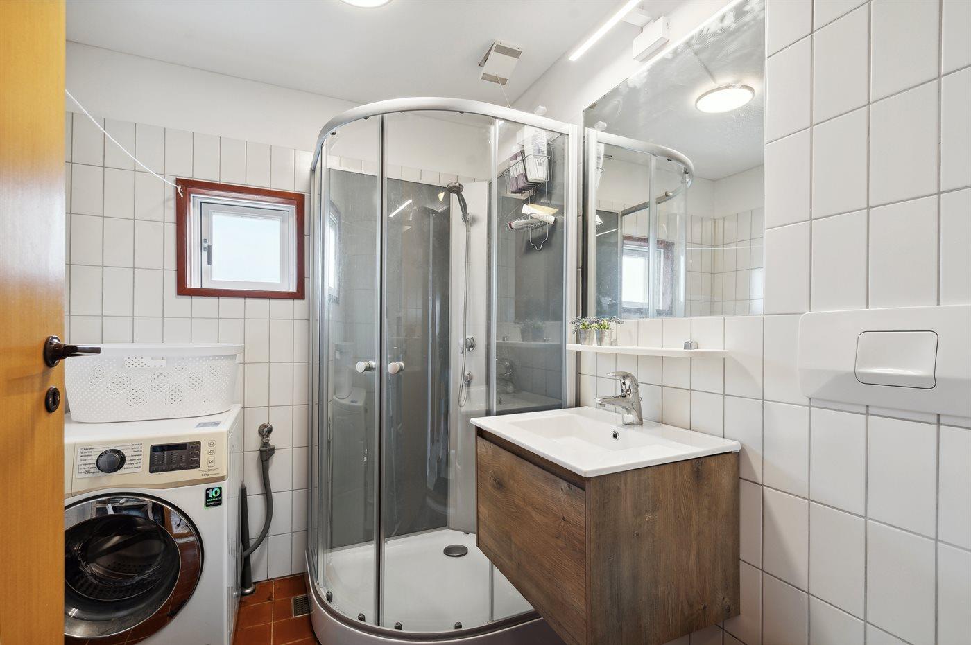 Der er 1 badeværelse med bruseniche og 1 toilet.. Der er gulvvarme på 1 badeværelse.