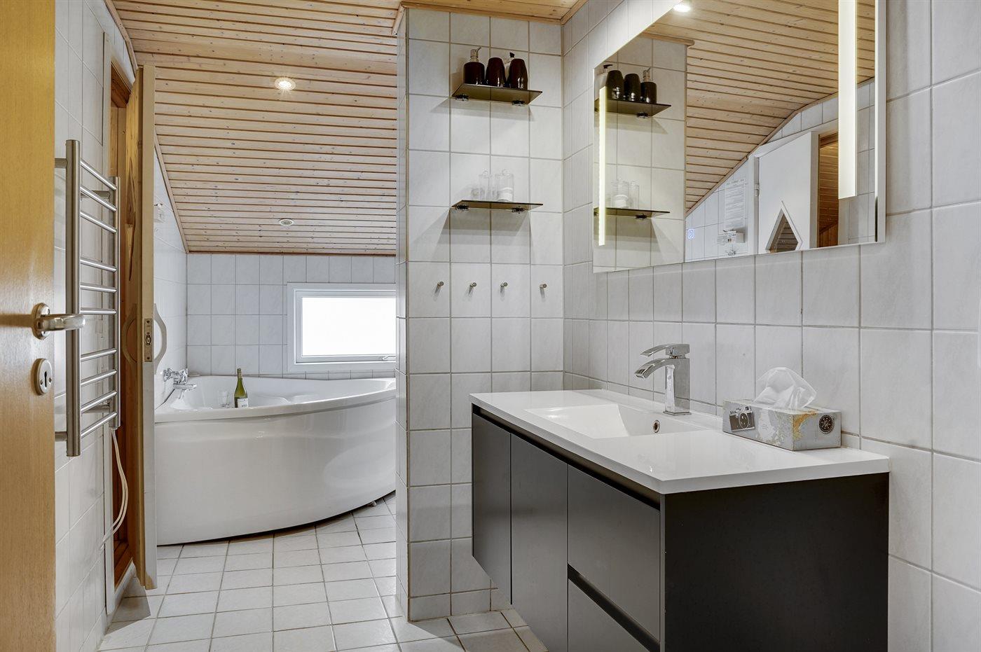 Der er 1 badeværelse med bruseniche og 2 toiletter, heraf 1 gæstetoilet. Der er gulvvarme på 1 badeværelse. I saunaen er der mulighed for afslapning.