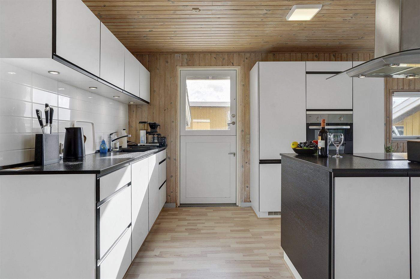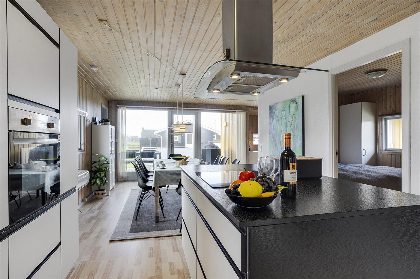 Køkkenet er udstyret med 1 køleskab. Der er 4 keramiske kogeplader. Der er 4 induktionskogeplader, varmluftovn, mikrobølgeovn samt opvaskemaskine.