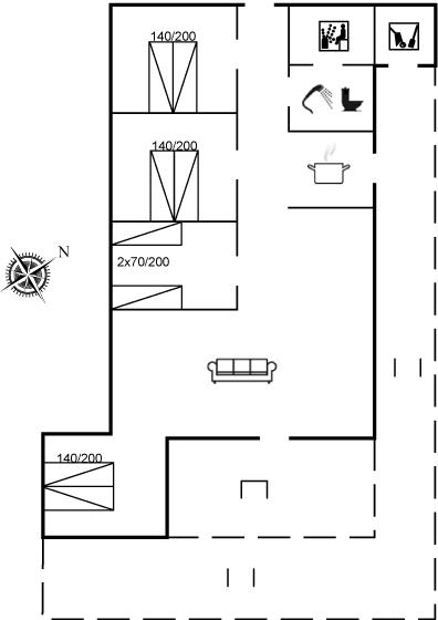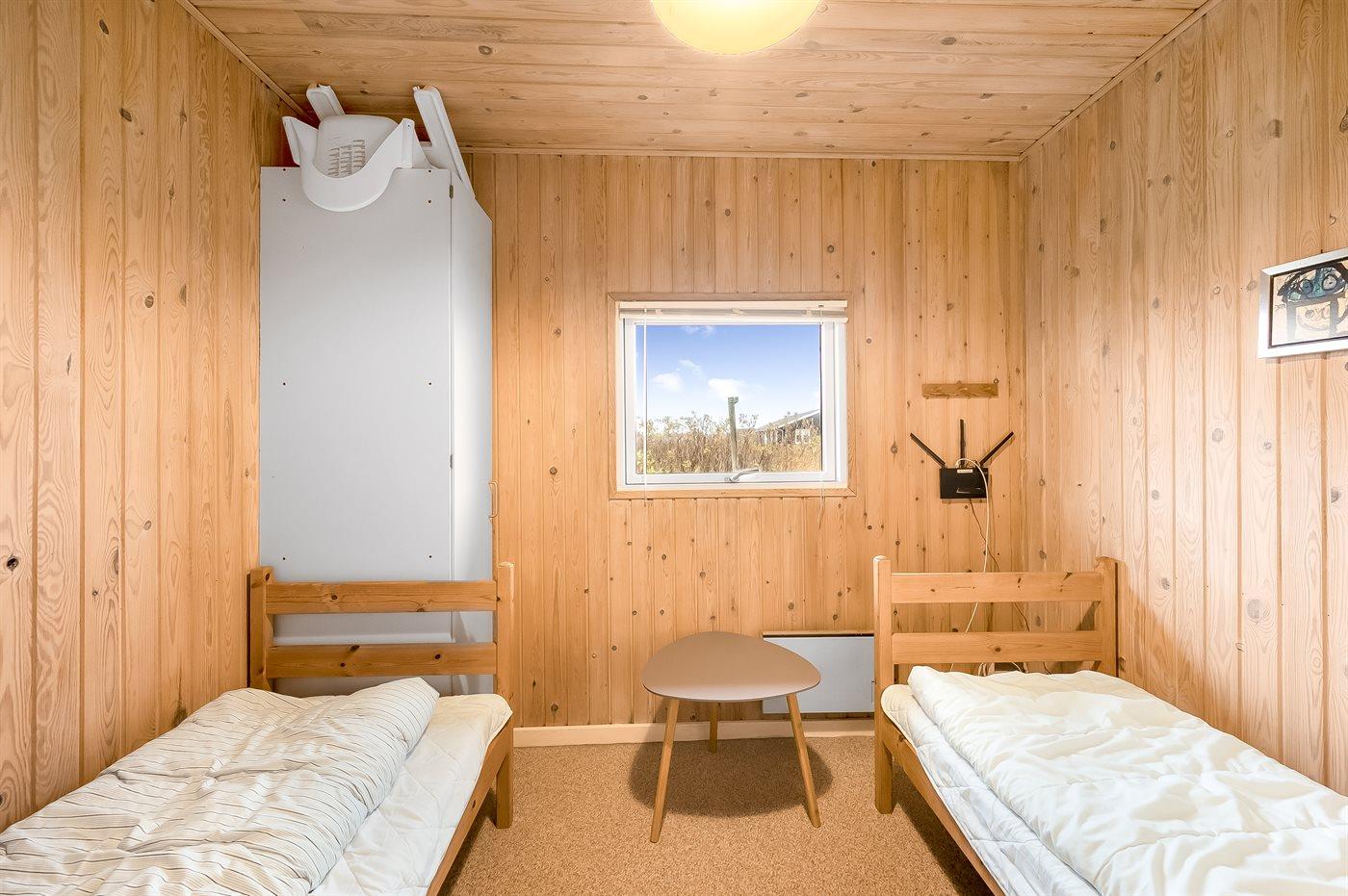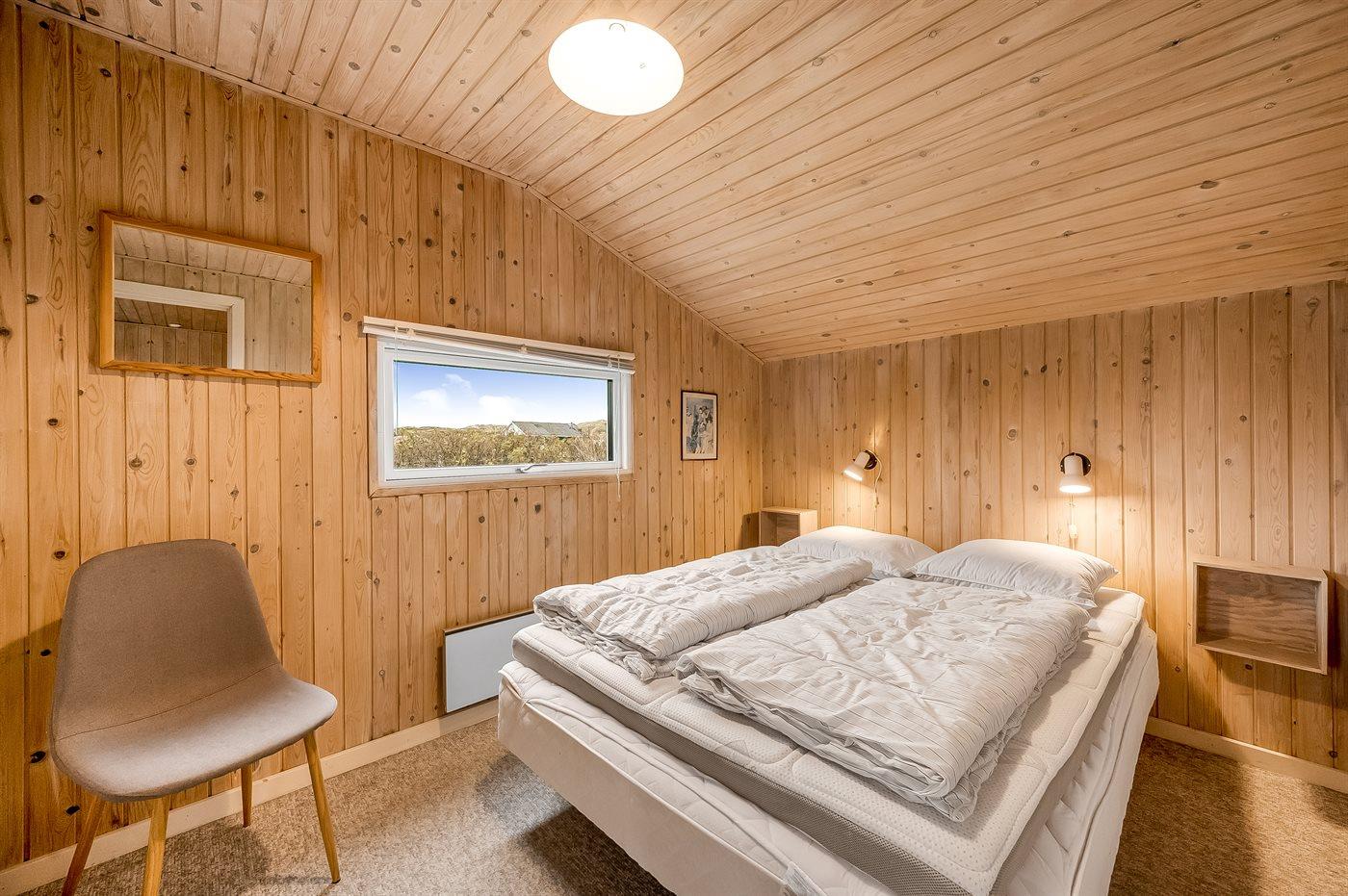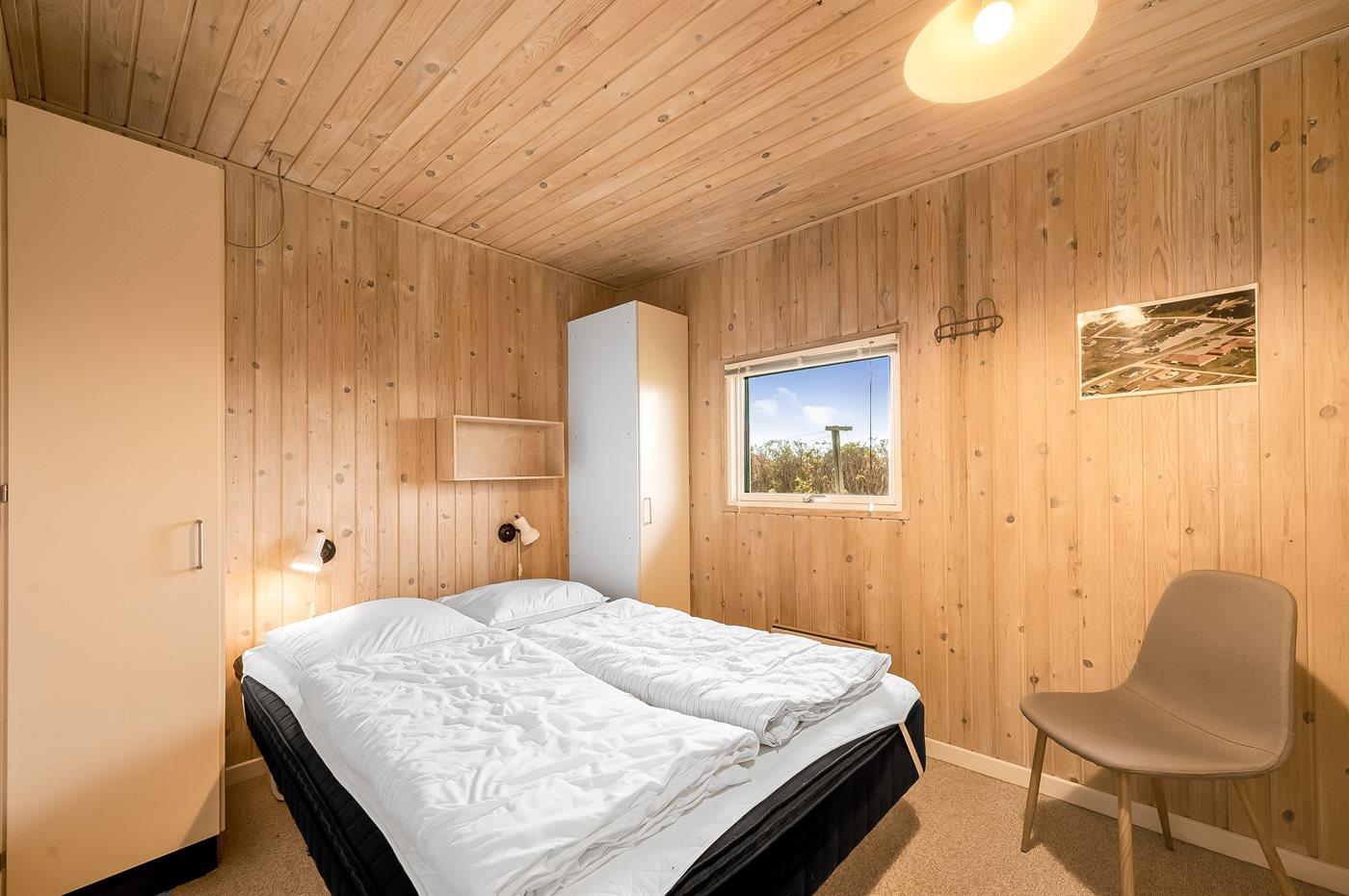 Der er i alt 4 soveværelser. Sovepladserne fordeler sig på: 6 sovepladser i dobbeltsenge. 2 sovepladser i enkeltsenge. Derudover er der 1 stk. barneseng.