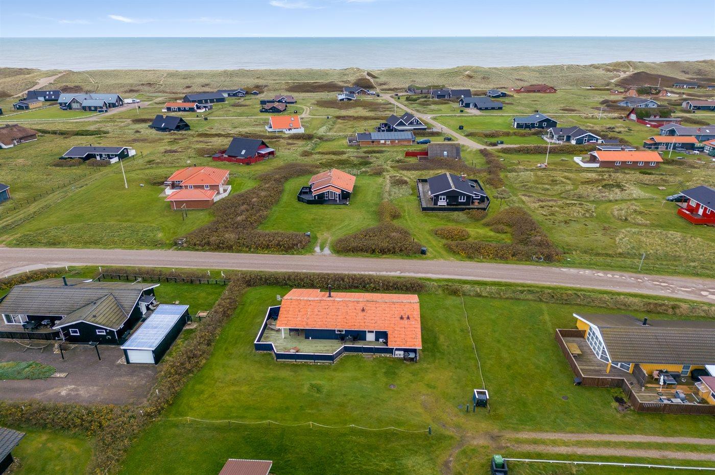 Ferieboligen er beliggende på en 885 m² stor naturgrund. Der er 300 m til havet. Nærmeste forretning er beliggende i en afstand af 150 m. Til ferieboligen hører 60 m² terrasseareal. Desuden er der 15 m² overdækket terrasse. Heraf i alt 60 m² lukket terrasse. Der er redskabsrum. Grill til rådighed. Der er installeret stik til opladning af elbil. Parkering ved ferieboligen.
