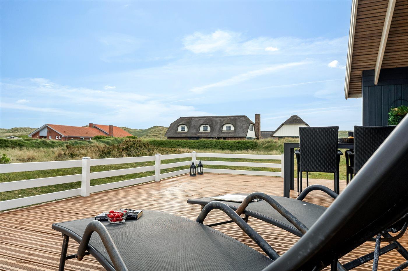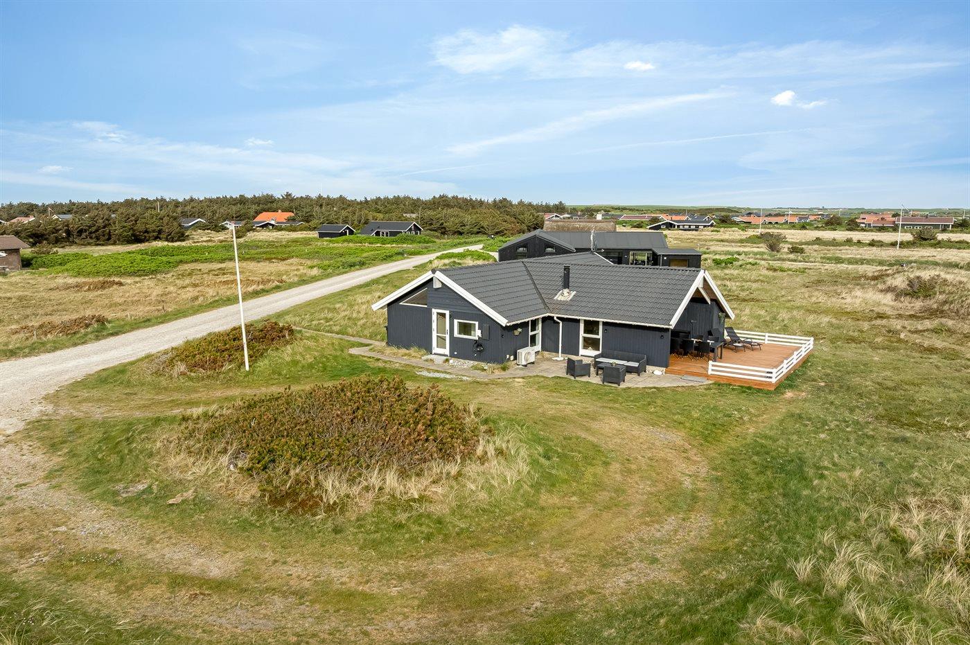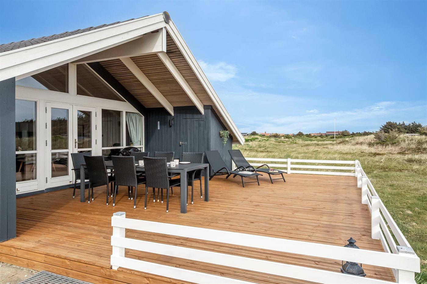 Et virkelig skønt sommerhus i træ - beliggende på en meget stor natur-/klitgrund kun ca. 100 m fra Vesterhavet. Til huset hører åbent og overdækket terrasseareal med gode havemøbler.