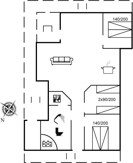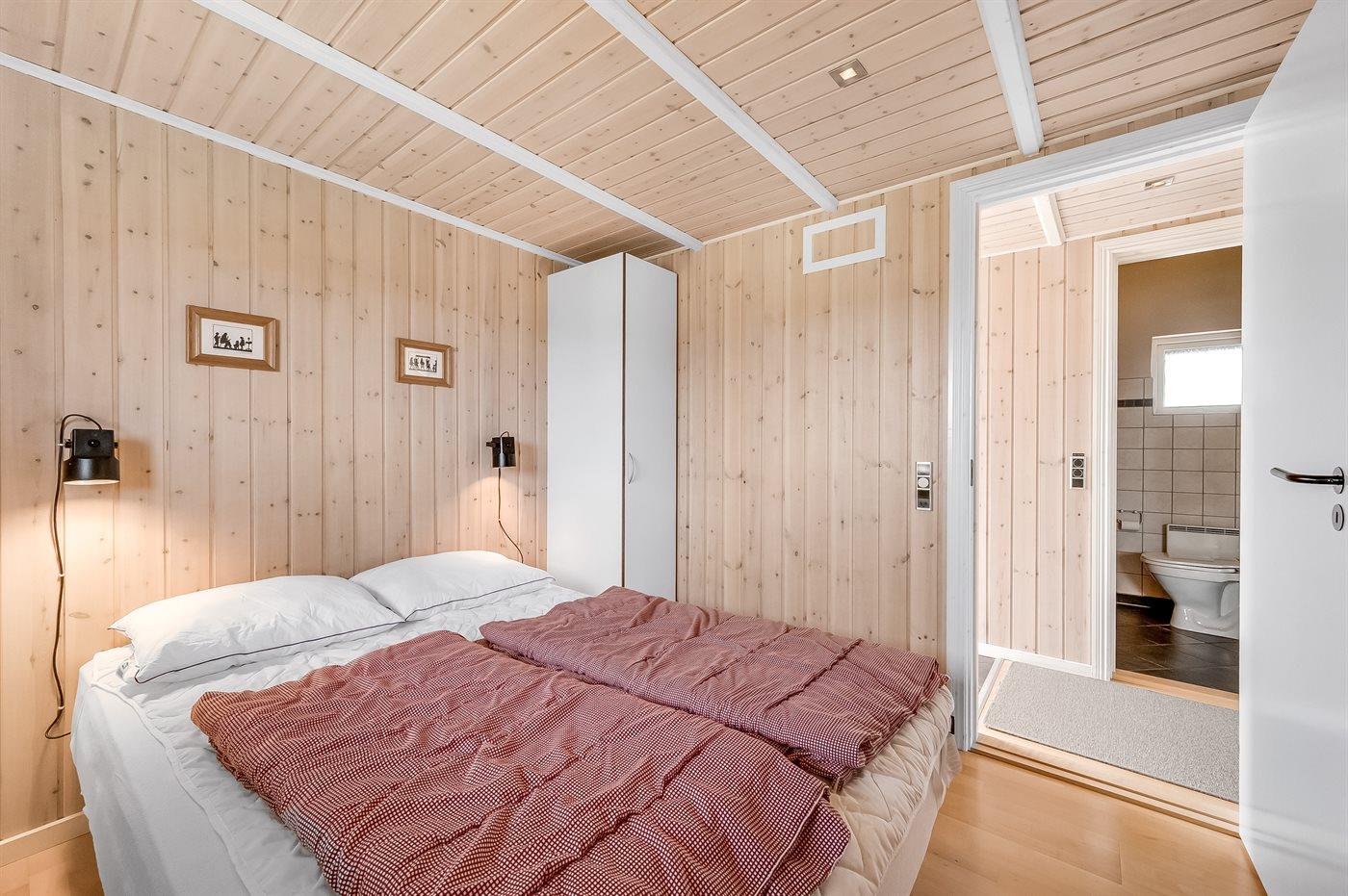 Kun 5 min. gang fra Vesterhavet, med dejlig sandstrand, ligger dette højisolerede og smagfuldt indrettede sommerhus i træ, bygget i 2004. Til huset hører dejlige, såvel åbne som overdækkede terrasser med havemøbler. Nyd morgensolen og udsigten over bl.a. klitterne og Ferring Sø fra den 28 m2 store hems med delvis ståhøjde. Hele huset er smagfuldt og funktionelt indrettet. Badeværelse med gulvvarme, bruseniche, adgang til 4 pers. sauna samt 3 pers. spa - dæmp lyset, tænd for massagedyserne og højtalerne på badeværelset, hvorefter stemningen fuldendes når stjernehimlen tændes efter et tryk på stikkontakten. Køkkenet er kombineret med opholdsstuen og bl.a. udstyret med opvaskemaskine, mikrobølgeovn, fryser, varmluftovn og komfur med keramiske kogeplader. I den rummelige opholds-/spisestue, med adgang til den overdækkede terrasse, finder I brændeovn, stereoanlæg med CD-afspiller, video, DVD-afspiller og TV med parabol (digital). Husets sovepladser fordeler sig på 3 værelser; 2 med dobbeltseng og 1 med 2 enkeltsenge. Af yderligere udstyr kan gratis, trådløs internetforbindelse (computer skal medbringes), vaskemaskine, solarium og høj barnestol nævnes. På grunden findes der gynge og legehus til børnene. Alt i alt et dejligt sommerhus til en velfortjent ferie ved Vesterhavet.