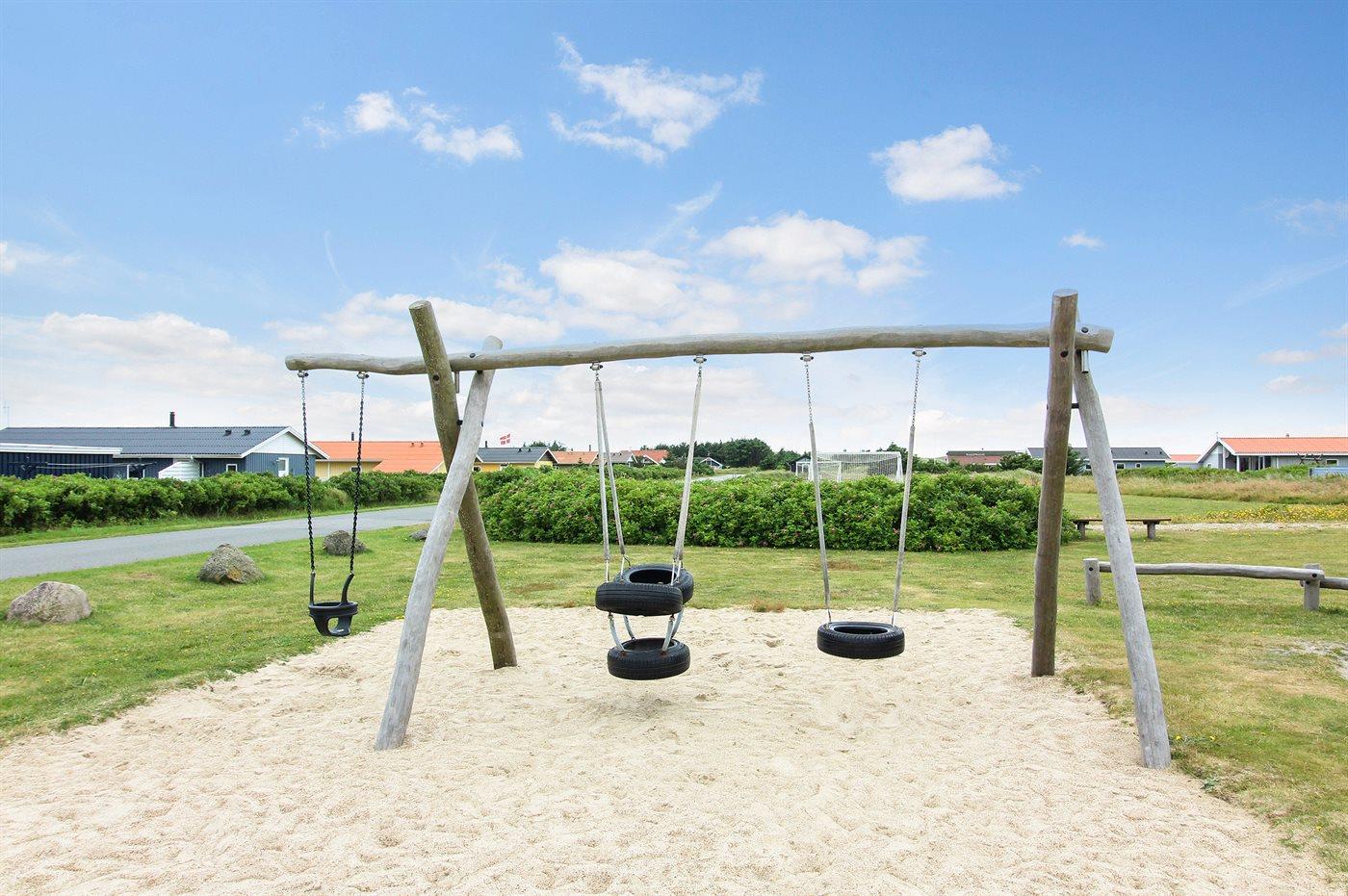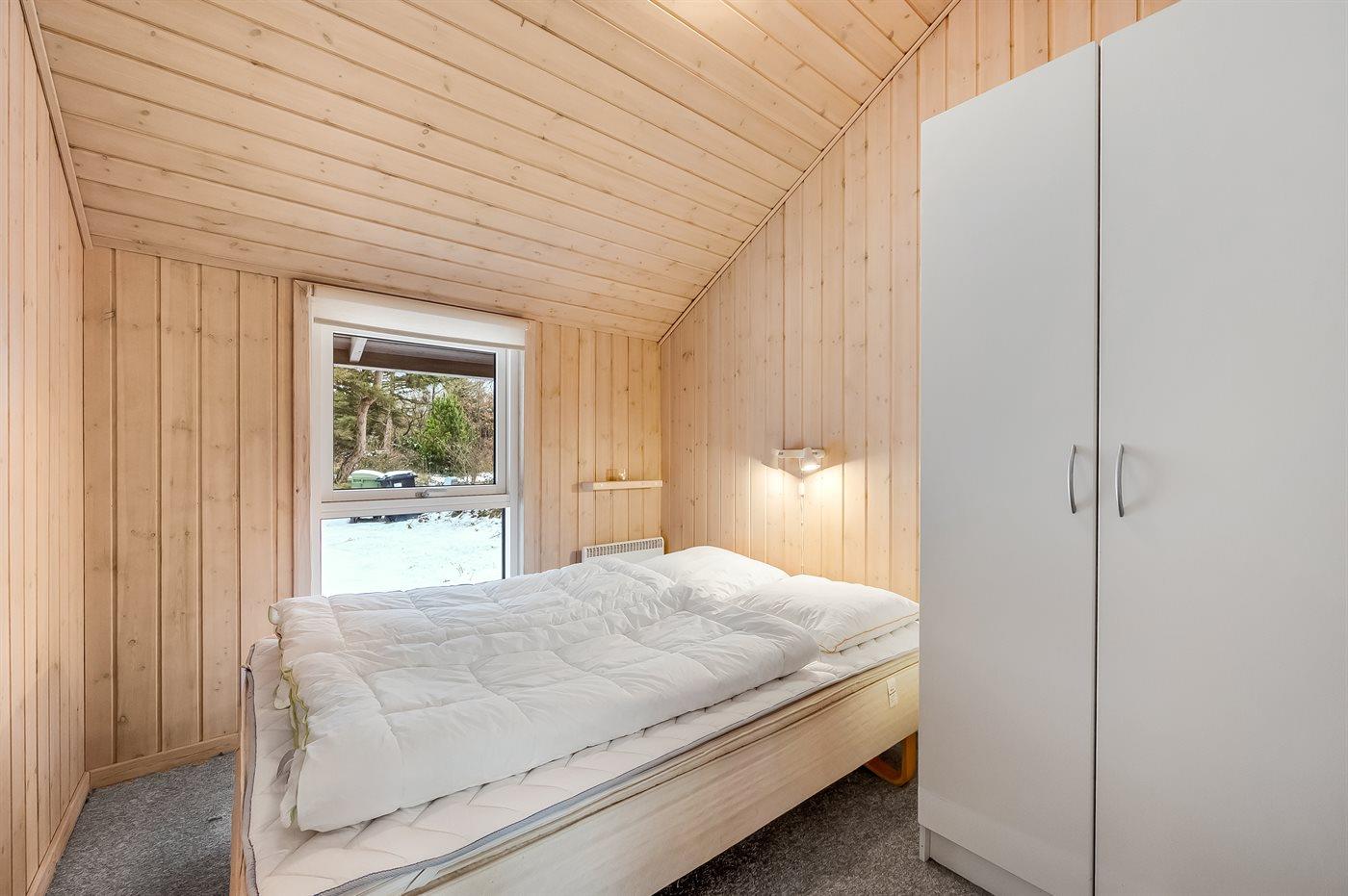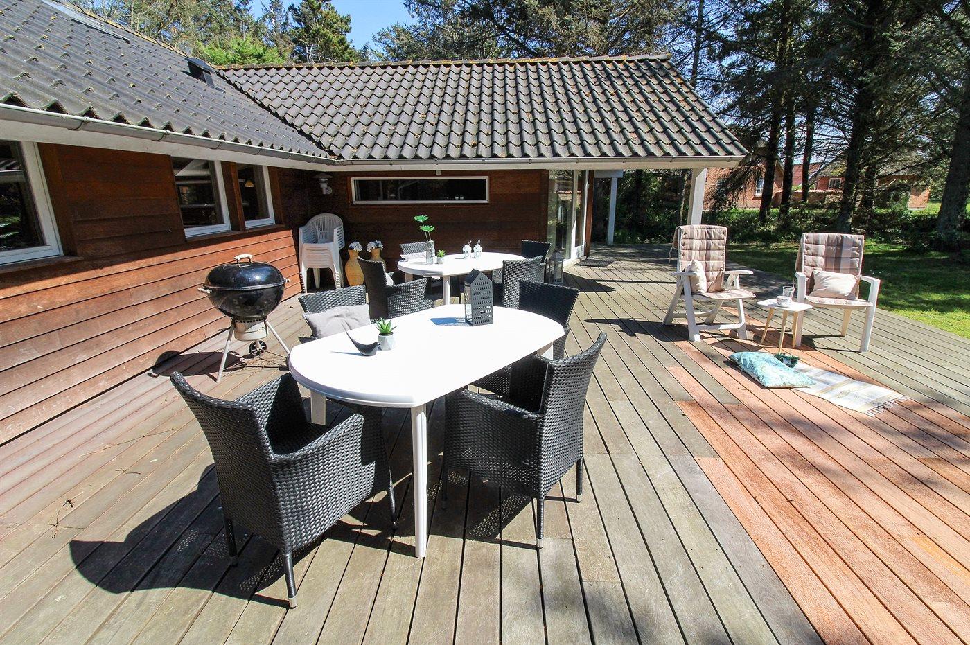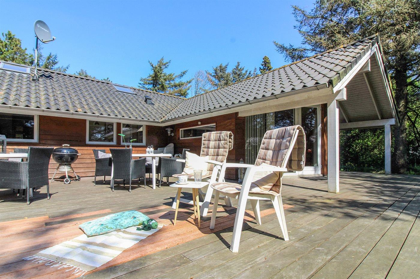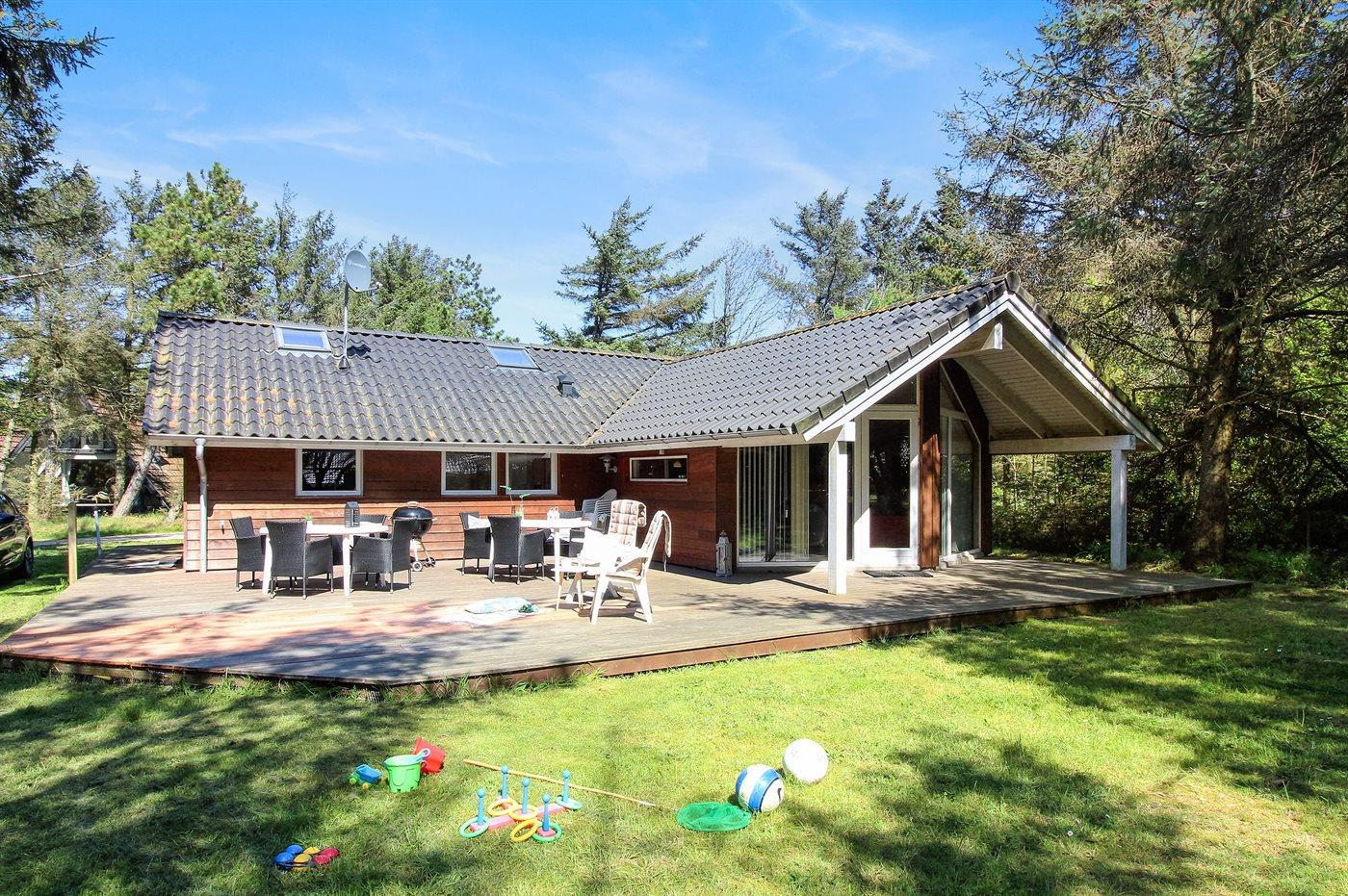 Dette skønne sommerhus i træ, bygget i 2006, er beliggende på en unik naturgrund mellem nåletræer, kun 250 meter fra Vesterhavet. Huset er smagfuldt og funktionelt indrettet og af høj kvalitet. Til huset hører såvel åbent som overdækket terrasseareal med havemøbler. Indvendig er der 2 badeværelser med gulvvarme og bruseniche (et i hver ende af huset). Fra det ene badeværelse er der direkte adgang til husets sauna. Veludstyret køkken med bl.a. varmluftovn, mikrobølgeovn, komfur med keramiske kogeplader, fryser og opvaskemaskine. Den hyggeligt indrettede opholdsstue indeholder gode møbler, brændeovn, TV med parabol (digital), DVD-afspiller, Playstation2, stereoanlæg og CD-afspiller. Fra opholdsstuen er der udgang til en dejlig terrasse. Husets sovepladser fordeler sig på 4 soveværelser, alle med dobbeltseng. Af yderligere udstyr kan gratis, trådløs internetforbindelse (computer skal medbringes), vaskemaskine, tørretumbler, barneseng samt høj barnestol nævnes. På grunden findes der gynge til de mindste feriegæster. Et skønt sommerhus til en dejlig, afslappende ferie i fred og ro. Huset er velegnet til 2 familier.