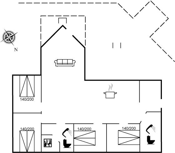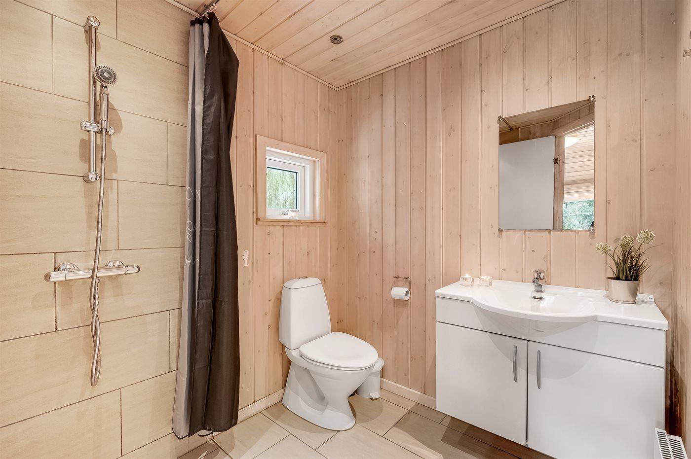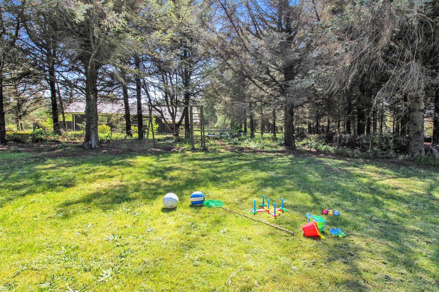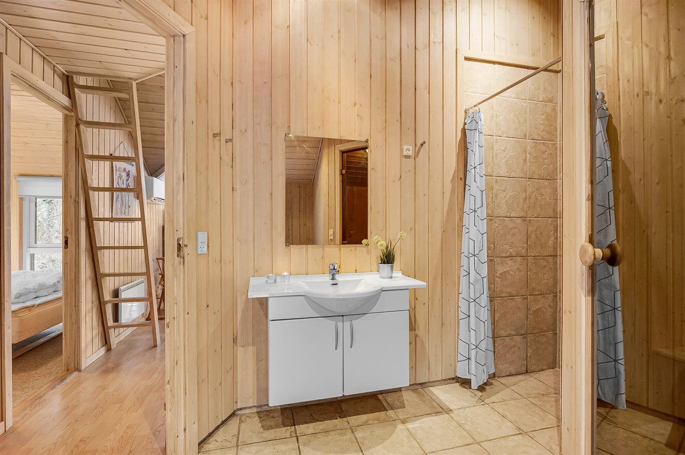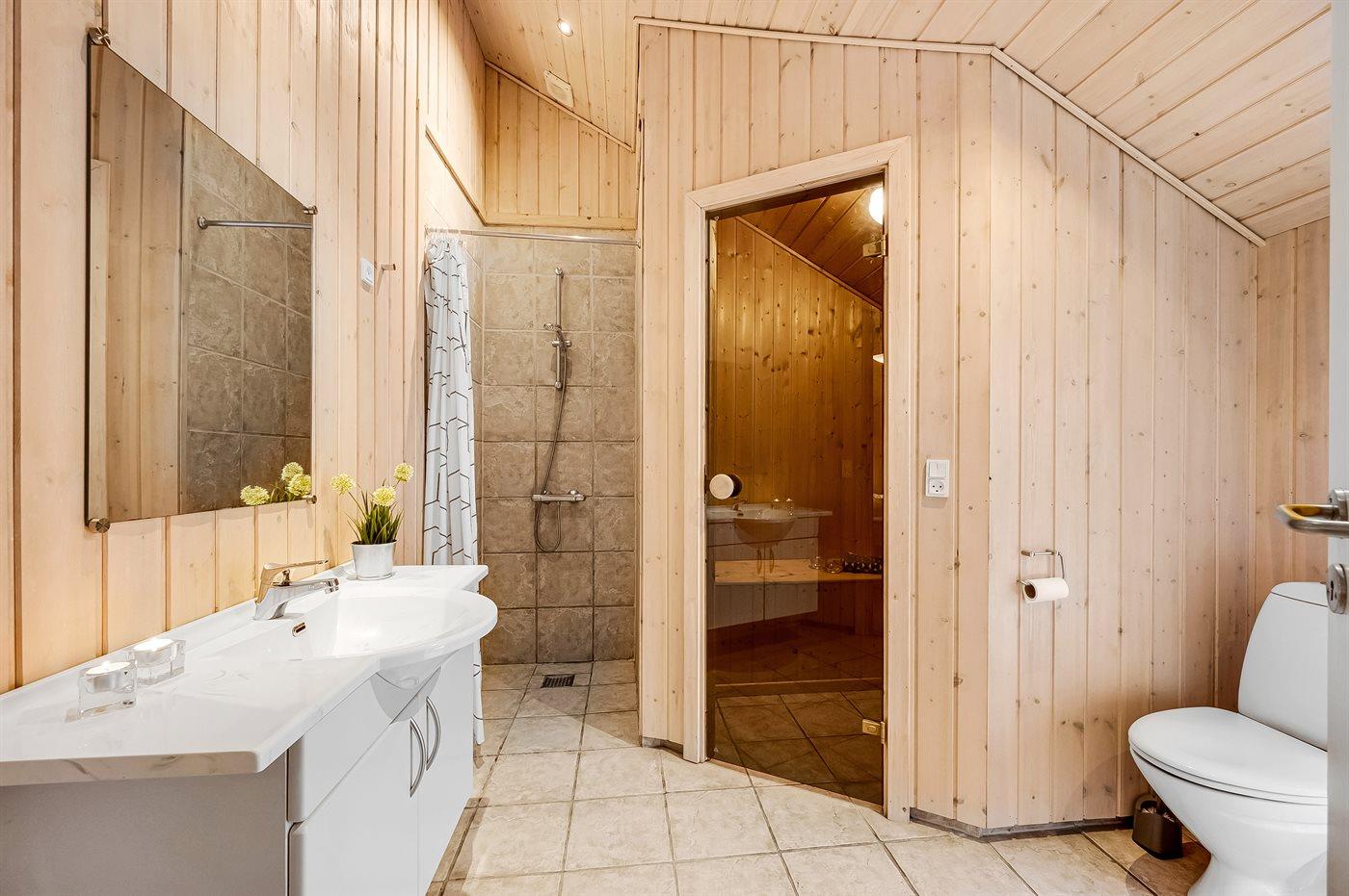 Dette skønne sommerhus i træ, bygget i 2006, er beliggende på en unik naturgrund mellem nåletræer, kun 250 meter fra Vesterhavet. Huset er smagfuldt og funktionelt indrettet og af høj kvalitet. Til huset hører såvel åbent som overdækket terrasseareal med havemøbler. Indvendig er der 2 badeværelser med gulvvarme og bruseniche (et i hver ende af huset). Fra det ene badeværelse er der direkte adgang til husets sauna. Veludstyret køkken med bl.a. varmluftovn, mikrobølgeovn, komfur med keramiske kogeplader, fryser og opvaskemaskine. Den hyggeligt indrettede opholdsstue indeholder gode møbler, brændeovn, TV med parabol (digital), DVD-afspiller, Playstation2, stereoanlæg og CD-afspiller. Fra opholdsstuen er der udgang til en dejlig terrasse. Husets sovepladser fordeler sig på 4 soveværelser, alle med dobbeltseng. Af yderligere udstyr kan gratis, trådløs internetforbindelse (computer skal medbringes), vaskemaskine, tørretumbler, barneseng samt høj barnestol nævnes. På grunden findes der gynge til de mindste feriegæster. Et skønt sommerhus til en dejlig, afslappende ferie i fred og ro. Huset er velegnet til 2 familier.