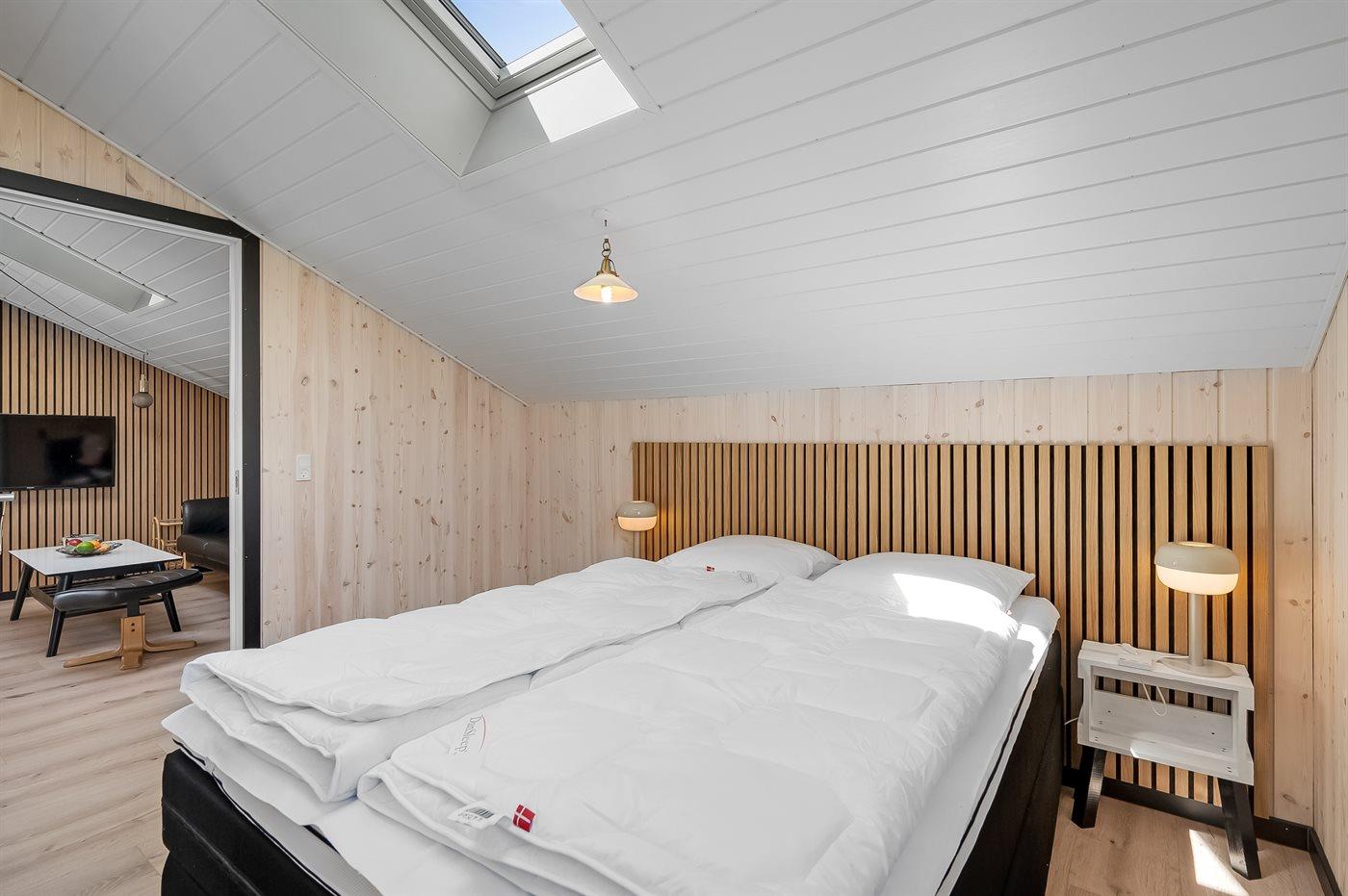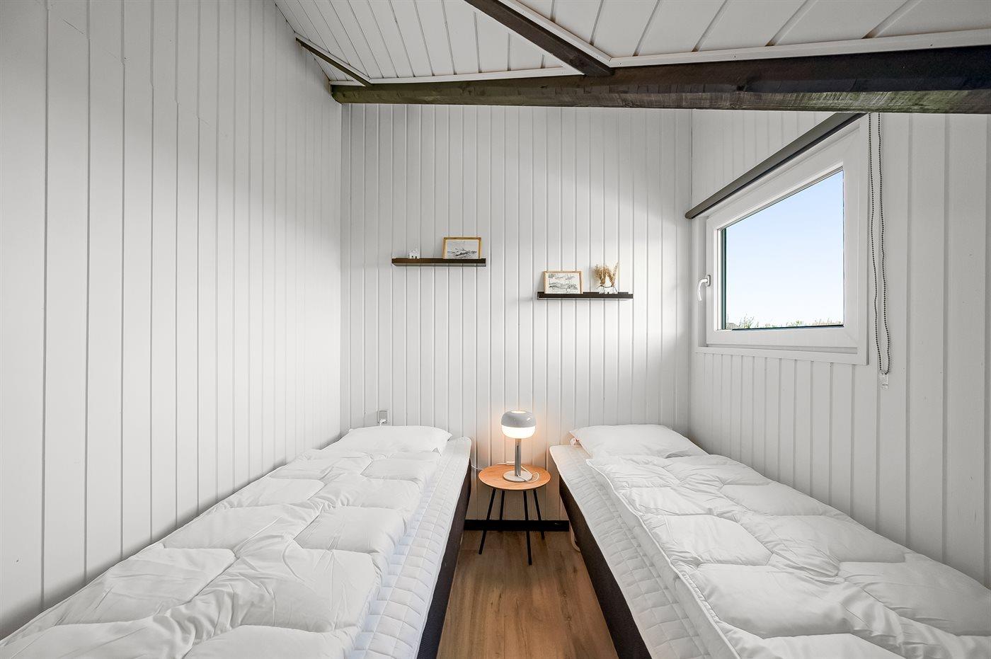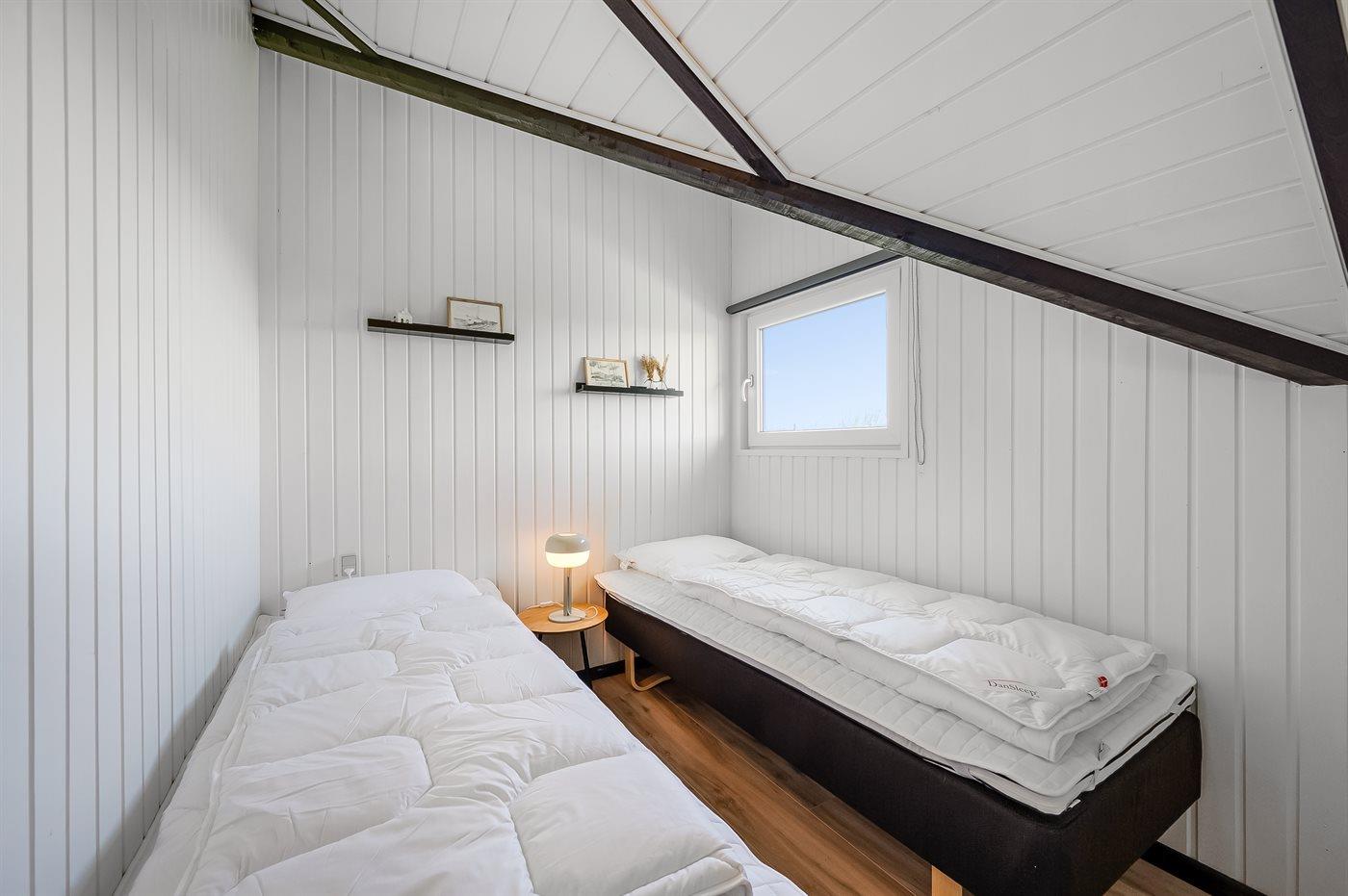 Der er i alt 3 soveværelser. Sovepladserne fordeler sig på: 2 sovepladser i dobbeltseng. 4 sovepladser i enkeltsenge. Derudover er der 1 stk. barneseng.