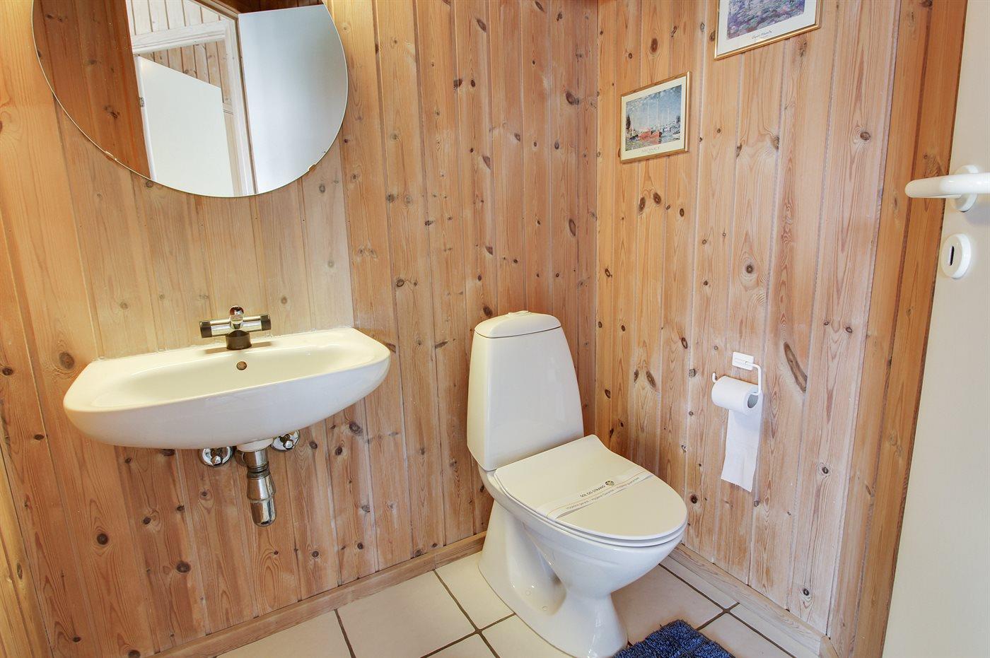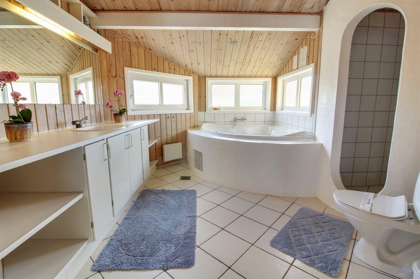 Der er 1 badeværelse med bruser og 2 toiletter. Der er gulvvarme på 1 badeværelse. I saunaen er der mulighed for afslapning.