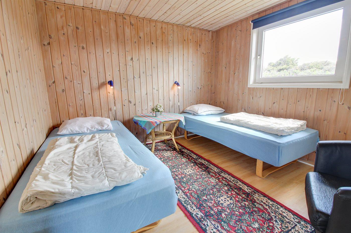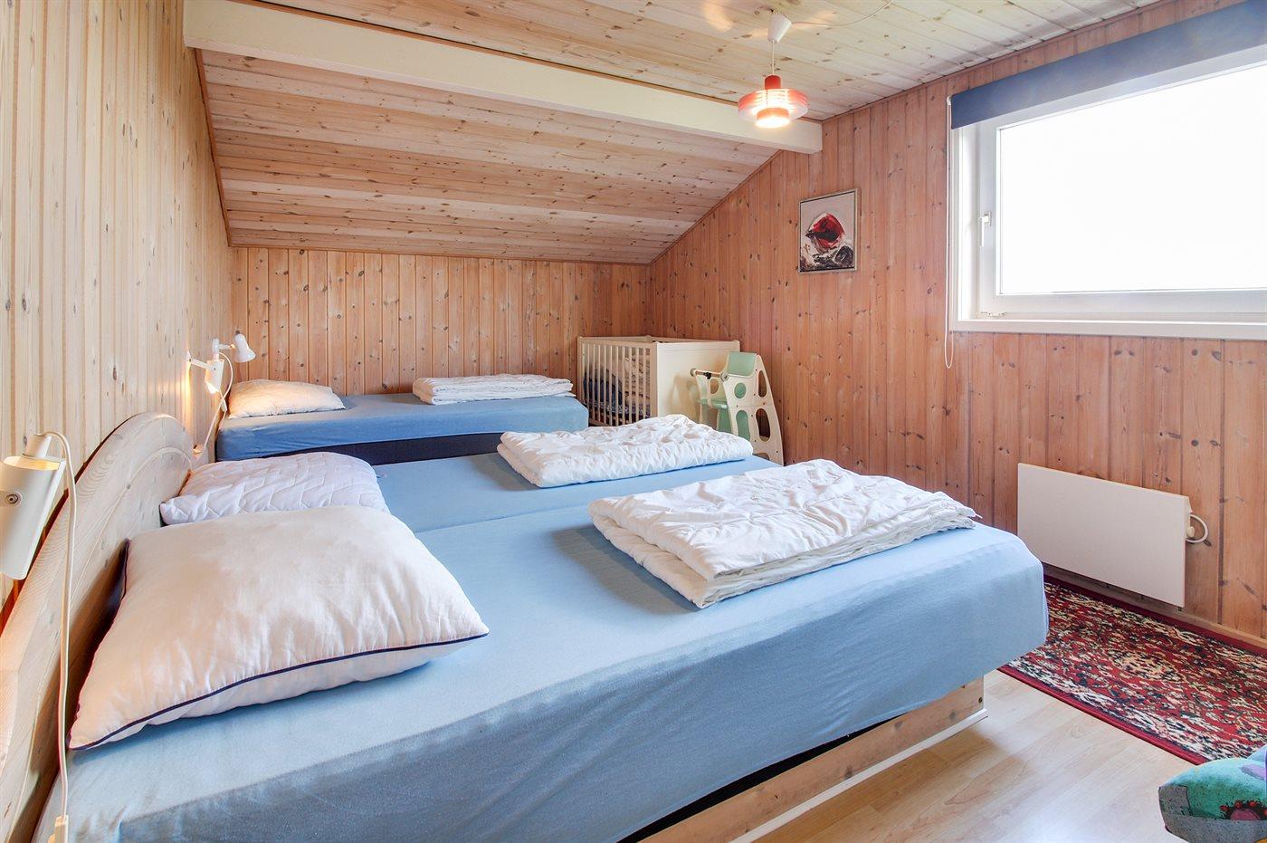 Der er i alt 4 soveværelser. Sovepladserne fordeler sig på: 6 sovepladser i dobbeltsenge. 3 sovepladser i enkeltsenge. Derudover er der 1 stk. barneseng.