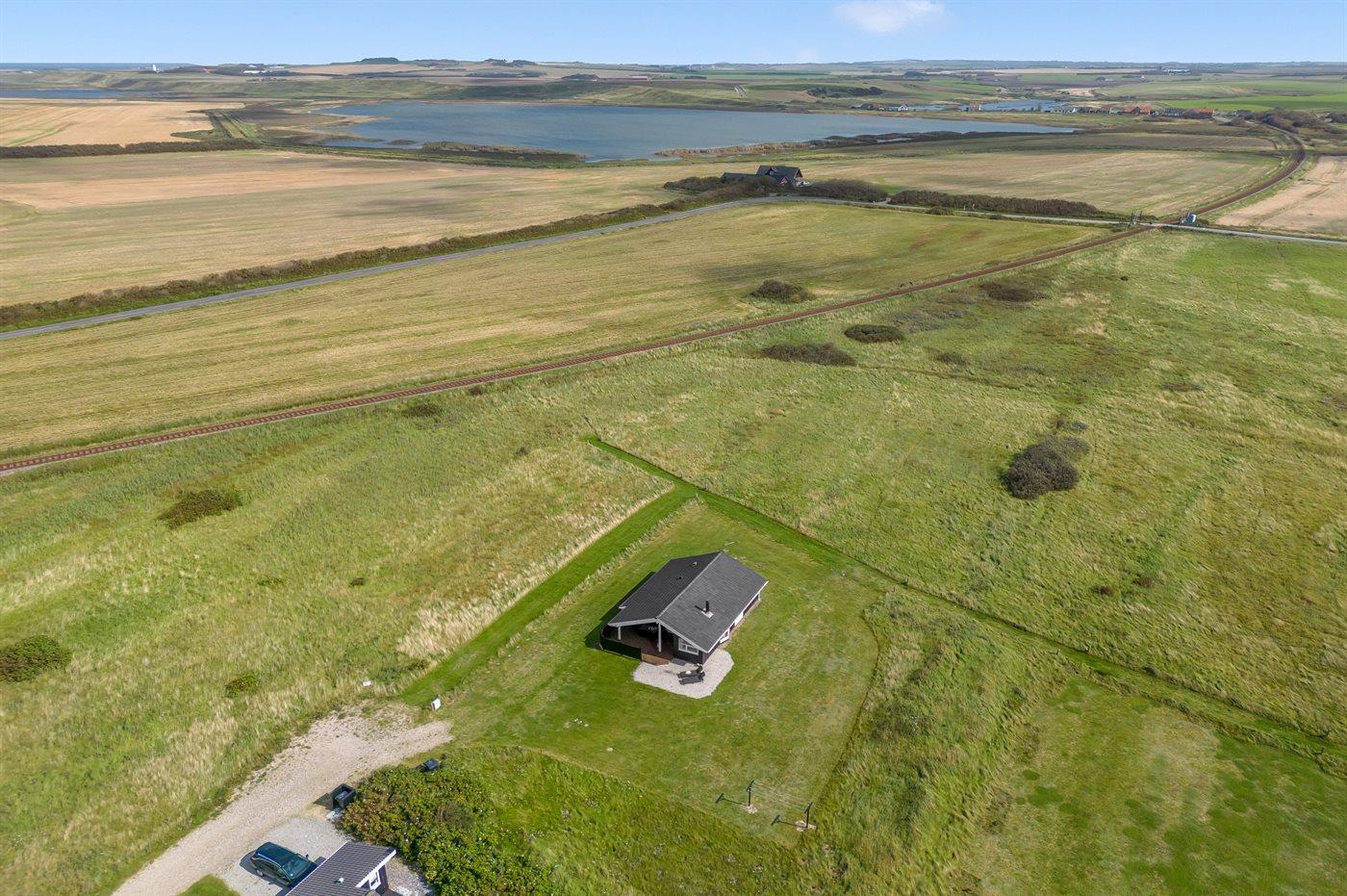 Ferieboligen er beliggende på en 1560 m² stor naturgrund. Der er 700 m til havet. Der er en sø i en afstand af 500 m. Nærmeste forretning er beliggende i en afstand af 500 m. Til ferieboligen hører 25 m² terrasseareal. Desuden er der 20 m² overdækket terrasse. Der er redskabsrum. Parkering ved ferieboligen.
