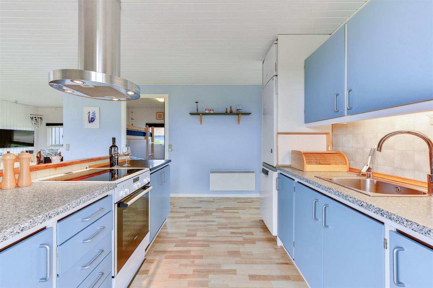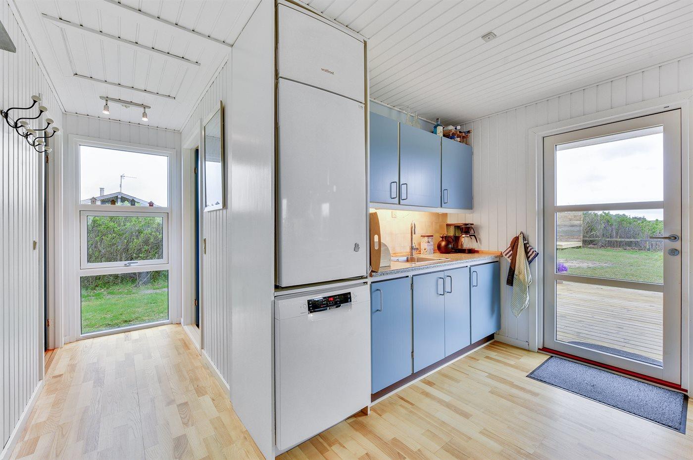 Køkkenet er udstyret med 1 køleskab. Der er 4 keramiske kogeplader, varmluftovn, mikrobølgeovn samt opvaskemaskine.