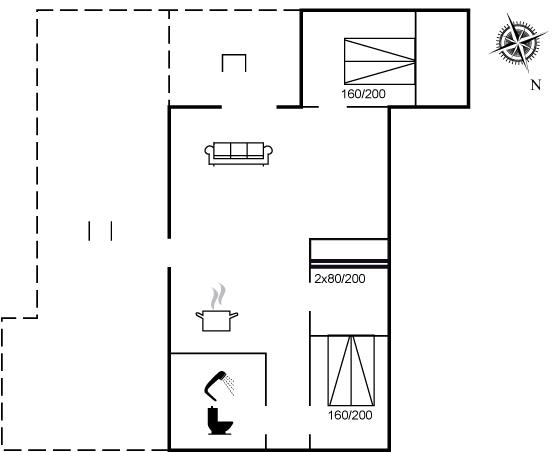 Der er i alt 3 soveværelser. Sovepladserne fordeler sig på: 4 sovepladser i dobbeltsenge. 2 sovepladser i køjeseng.