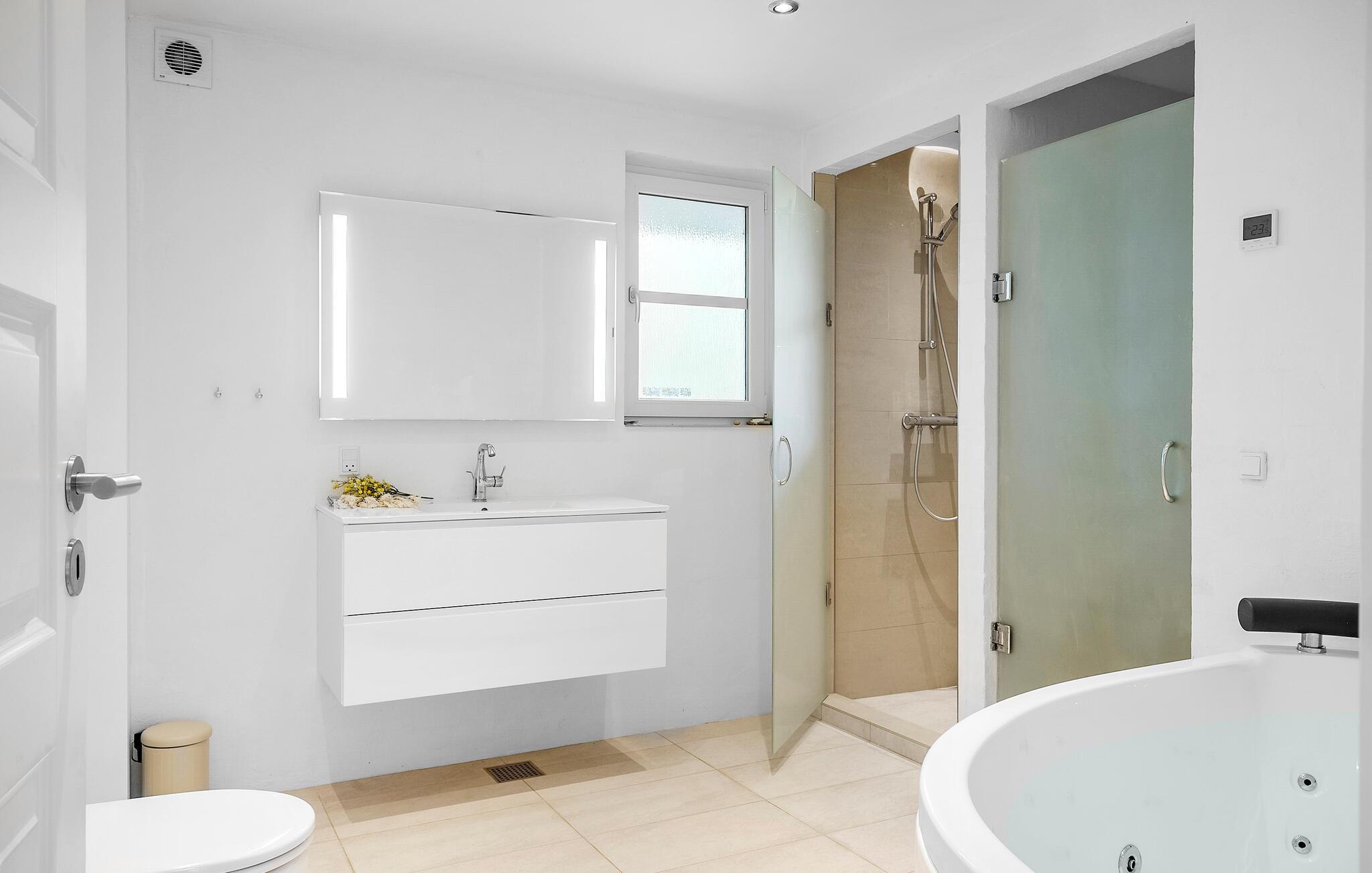 Badeværelse (nr. 1) - WC. Varmt og koldt vand. Bruser