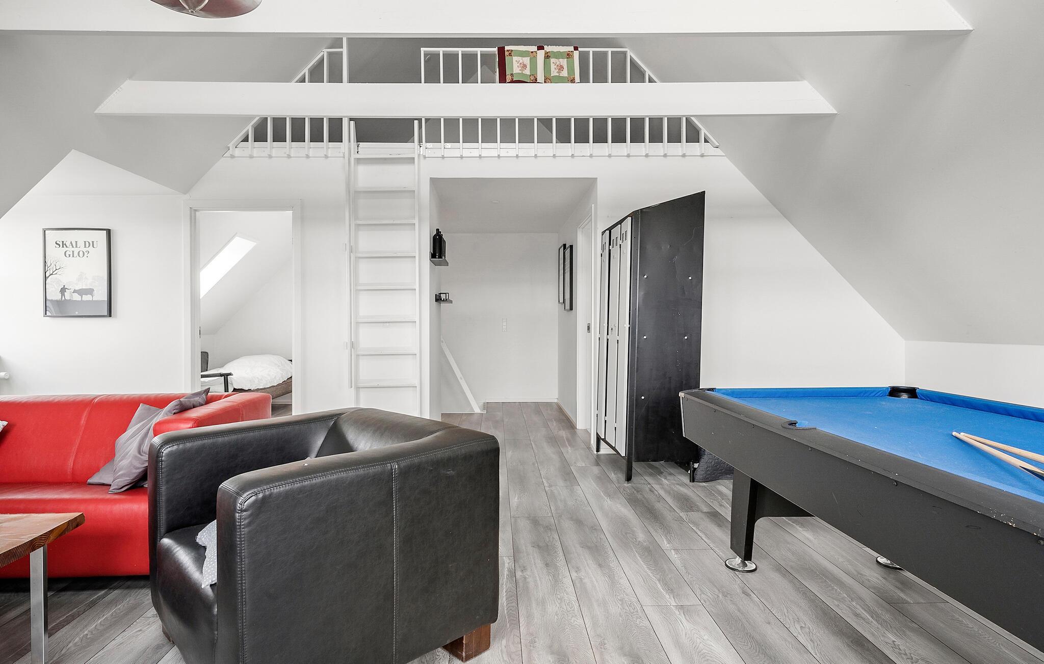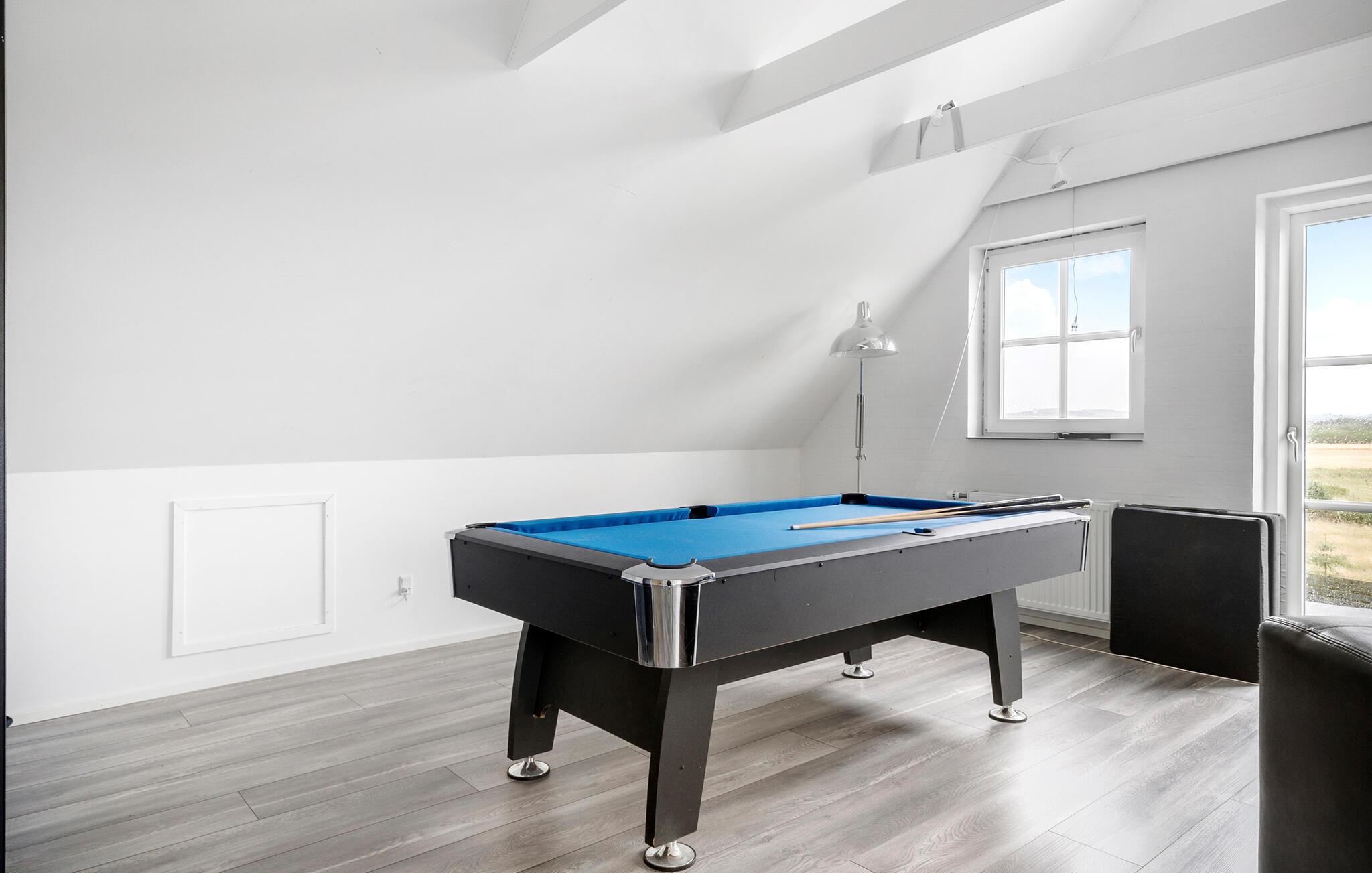 Hyggeligt og renoveret sommerhus nær Vejlby Klit Strand med spabad og aktivitetsrum.